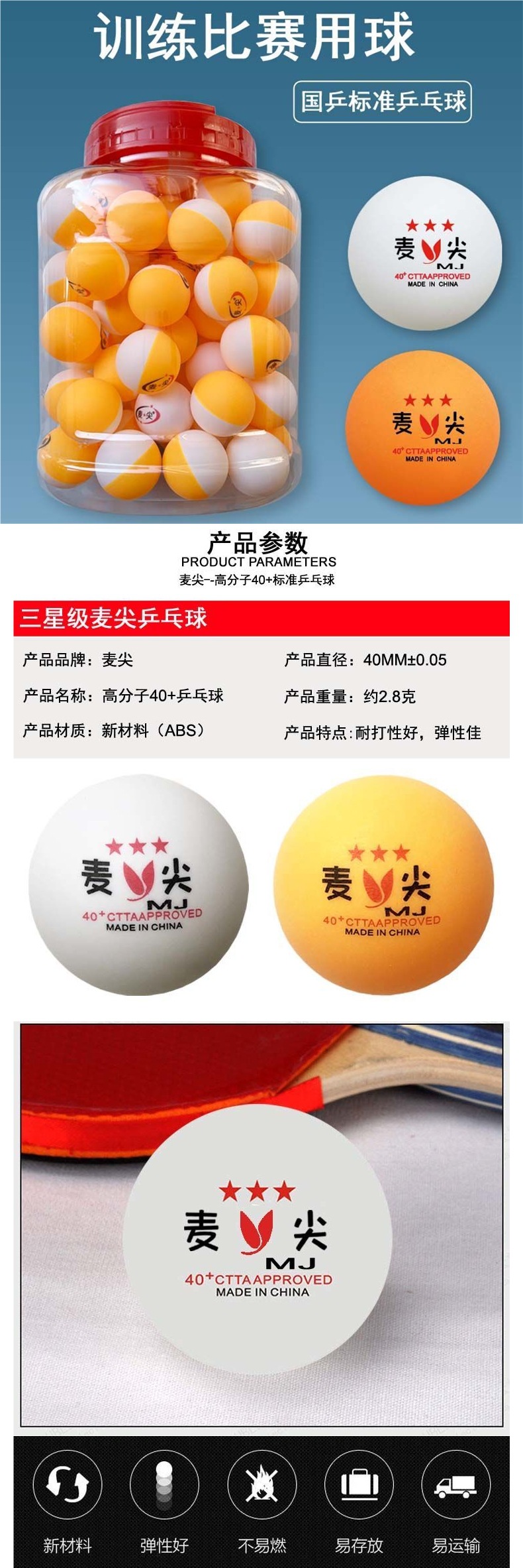 Аутентичный стандартный новый материал, устойчивый к теннису, трехзвездочный мяч, высокоэластичный мяч для любительских соревнований по настольному теннису, супер твердый