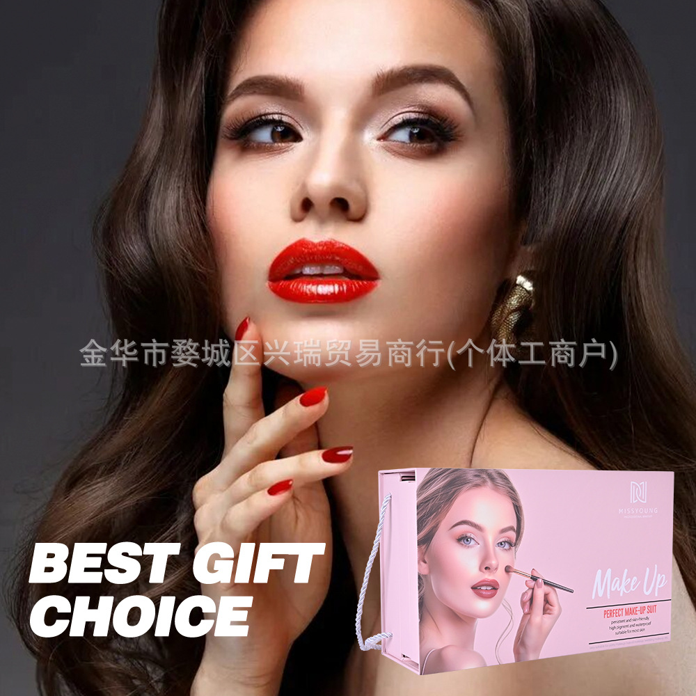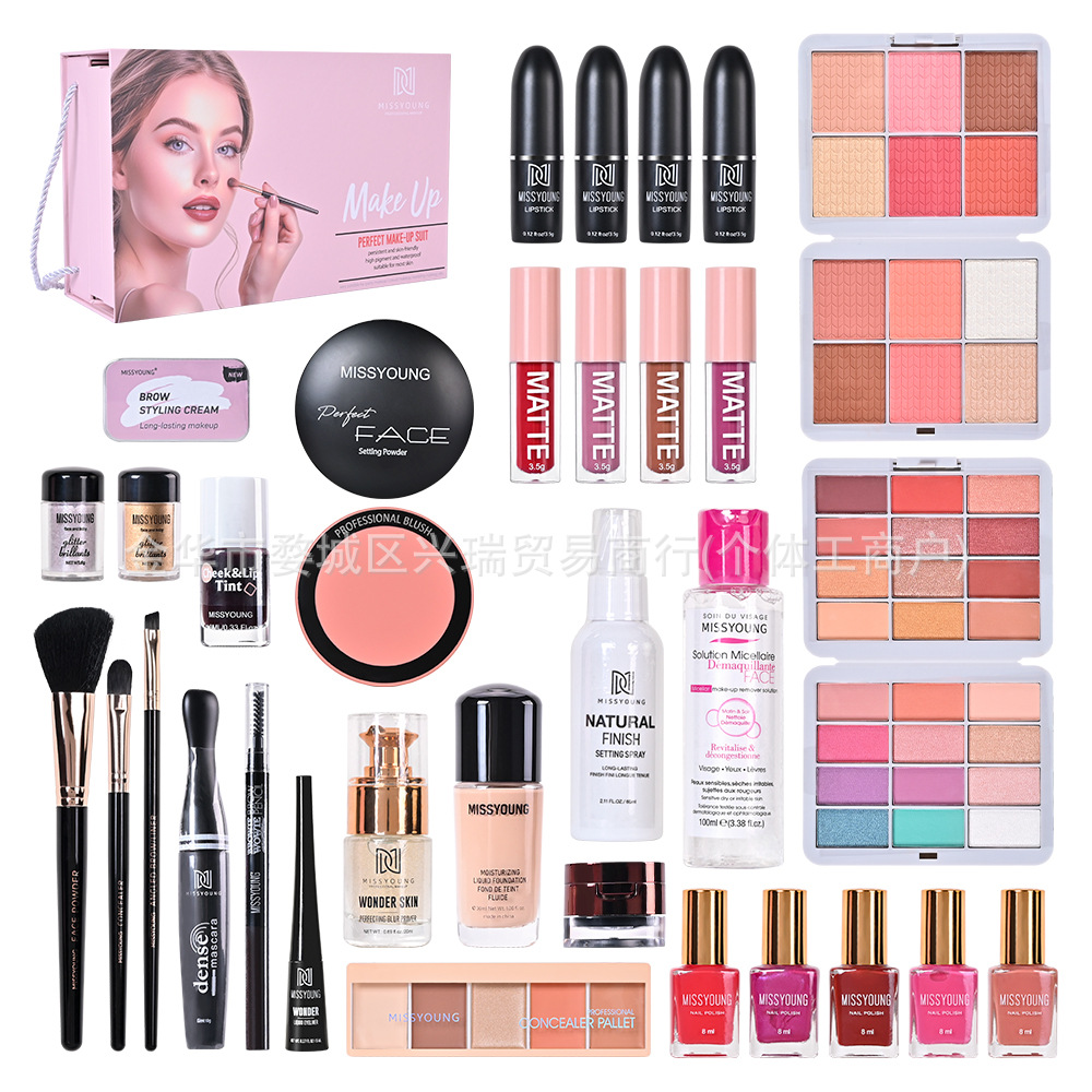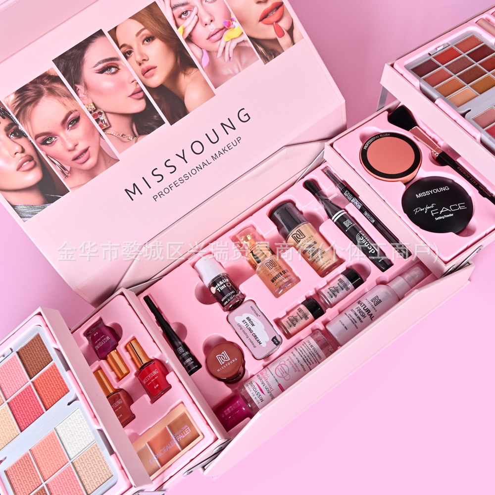 Набор косметики Miss Young: популярная розовая бумажная косметичка, жидкий тональный крем, консилер, подарочная коробка.