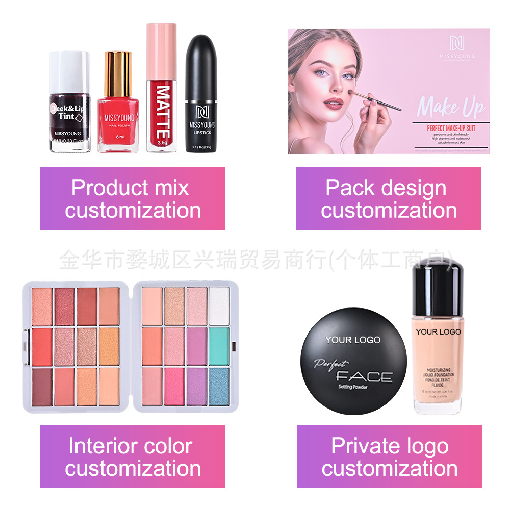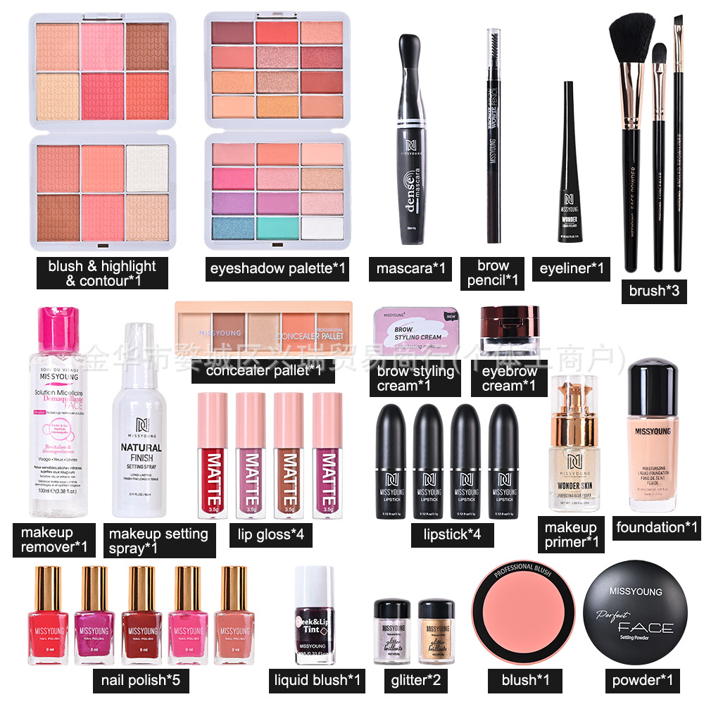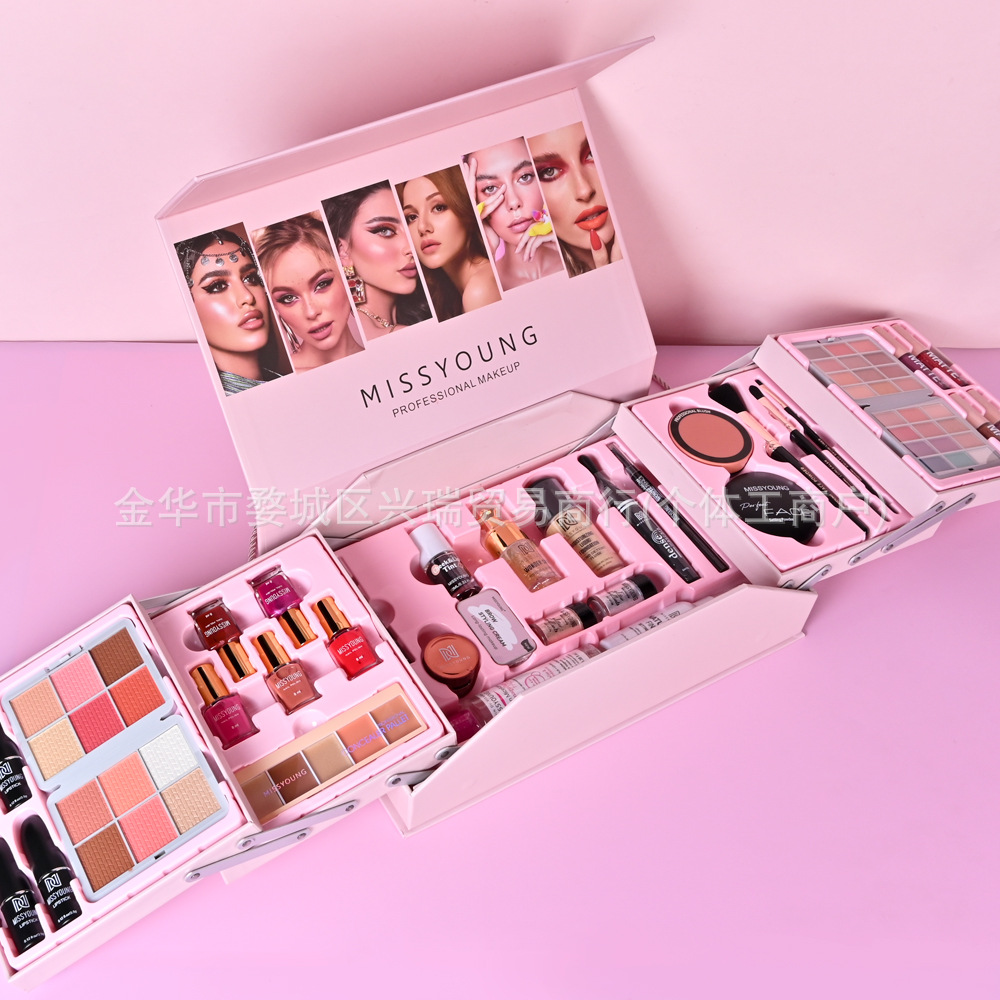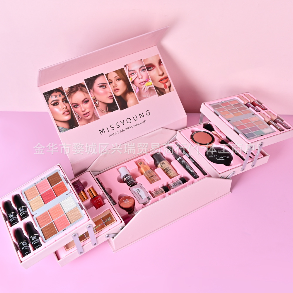 Набор косметики Miss Young: популярная розовая бумажная косметичка, жидкий тональный крем, консилер, подарочная коробка.