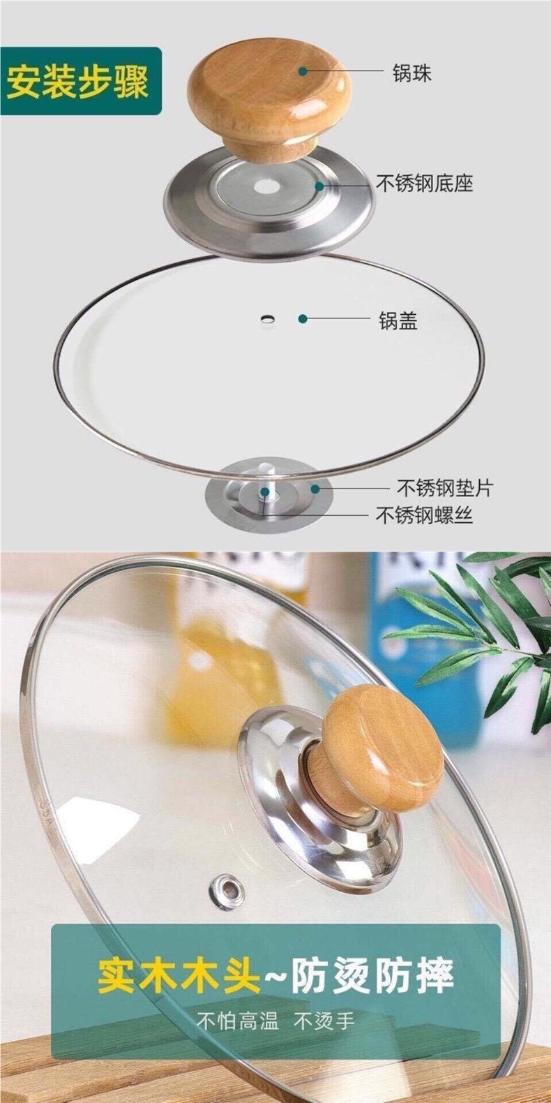 Крышка кастрюли, верхняя крышка, ручка кастрюли с защитой от ожогов, универсальная подъемная ручка, твердая ручка из твердой древесины, аксессуары из нержавеющей стали, ручка с прокладкой