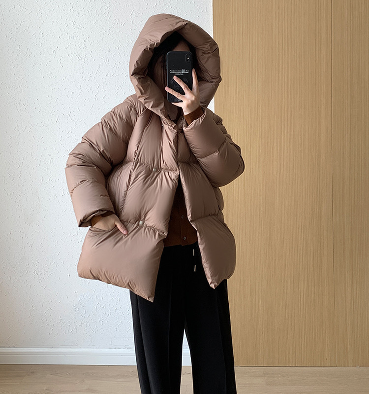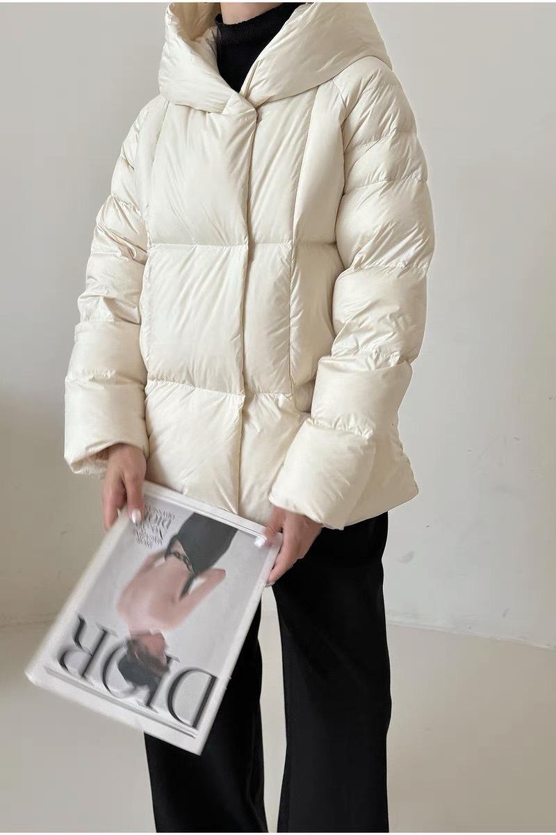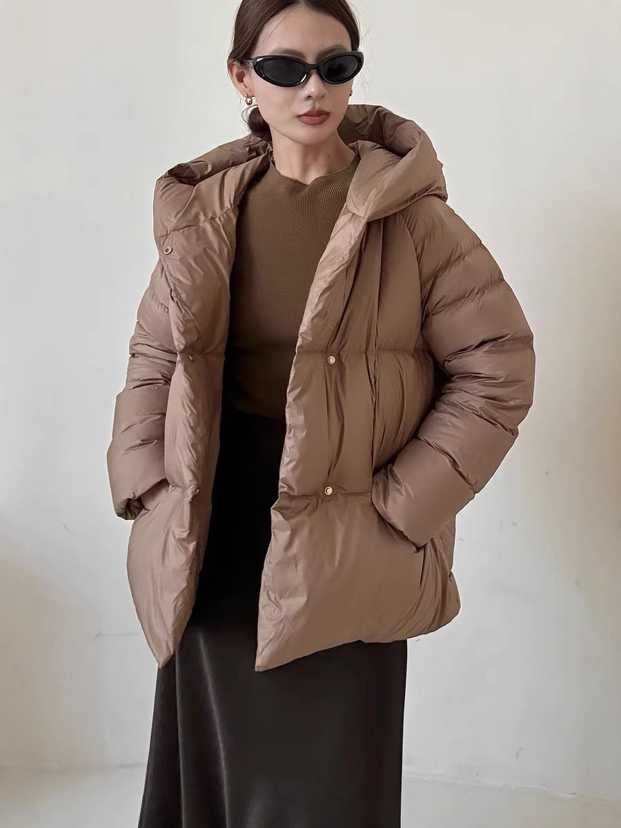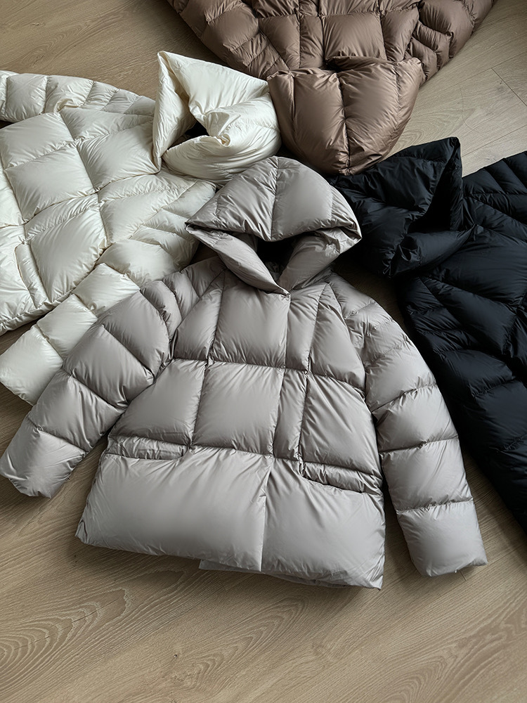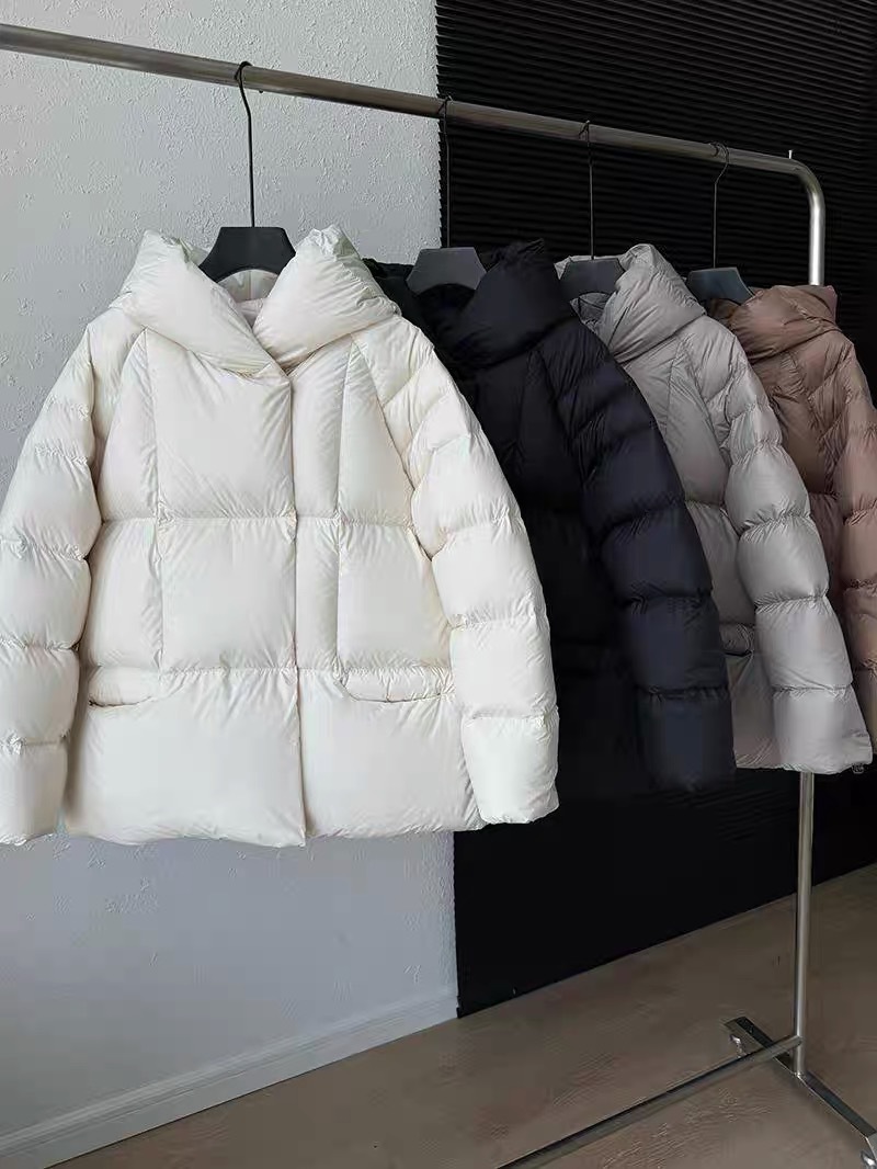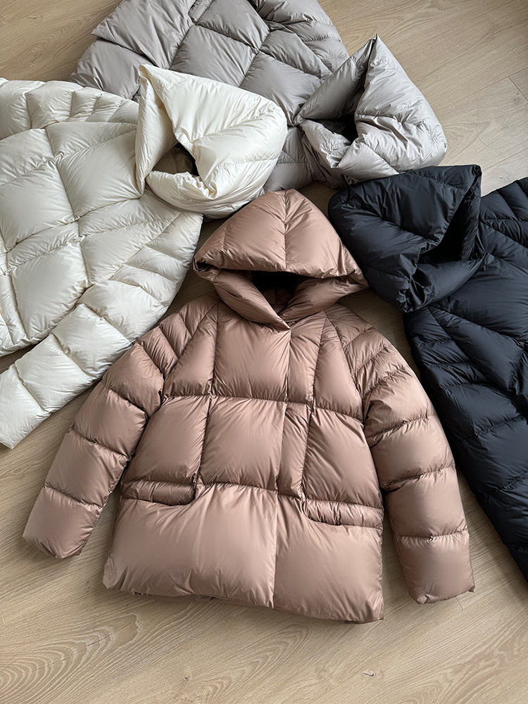 Женская короткая стильная пуховая куртка с капюшоном, зима 2025, 90% белый пух утки