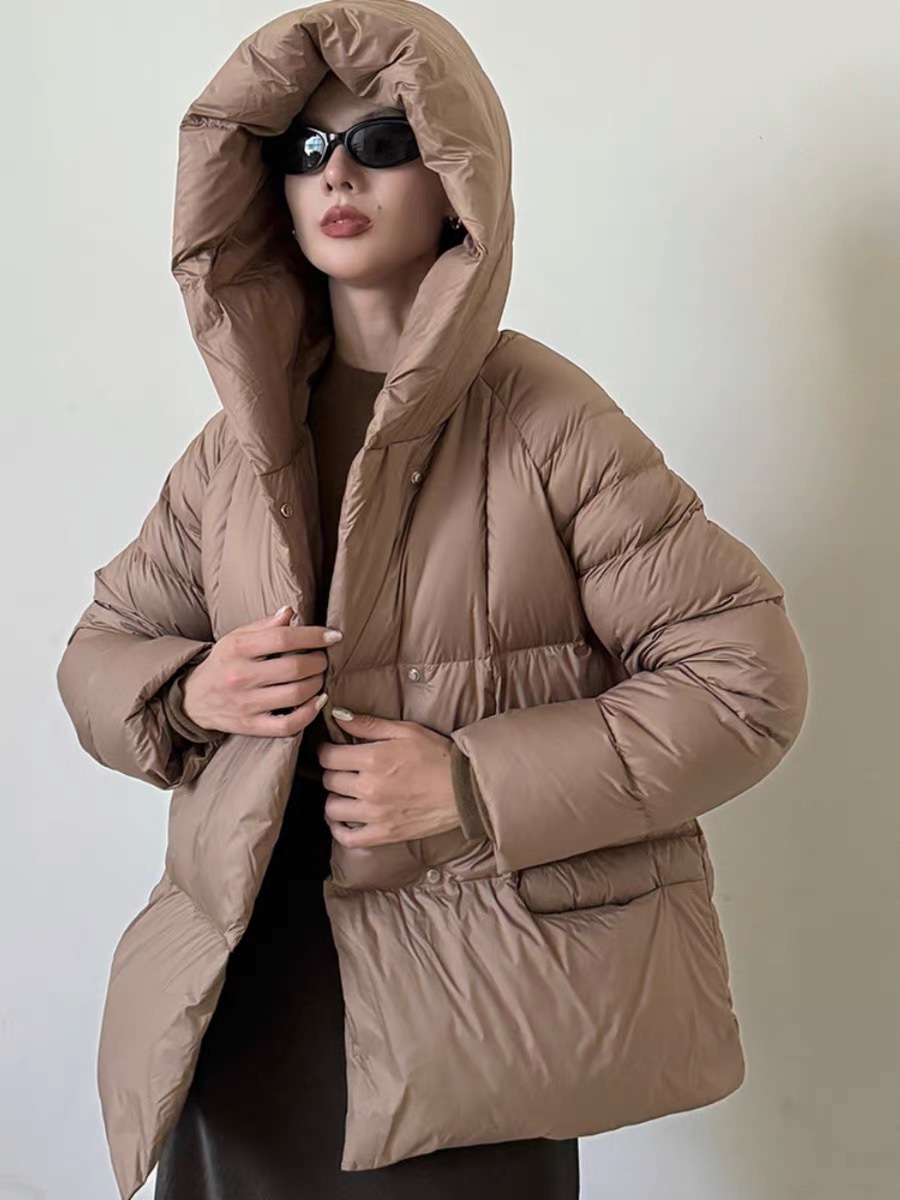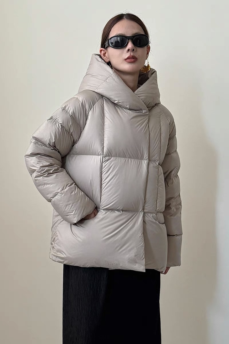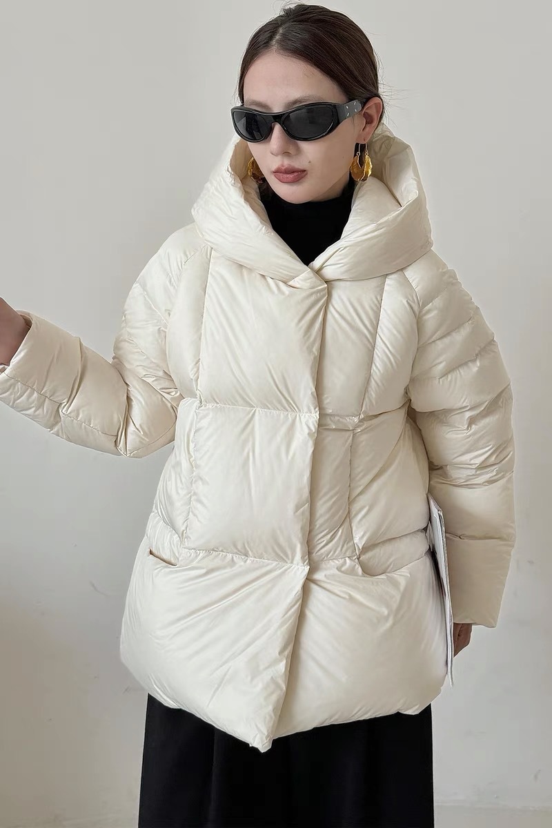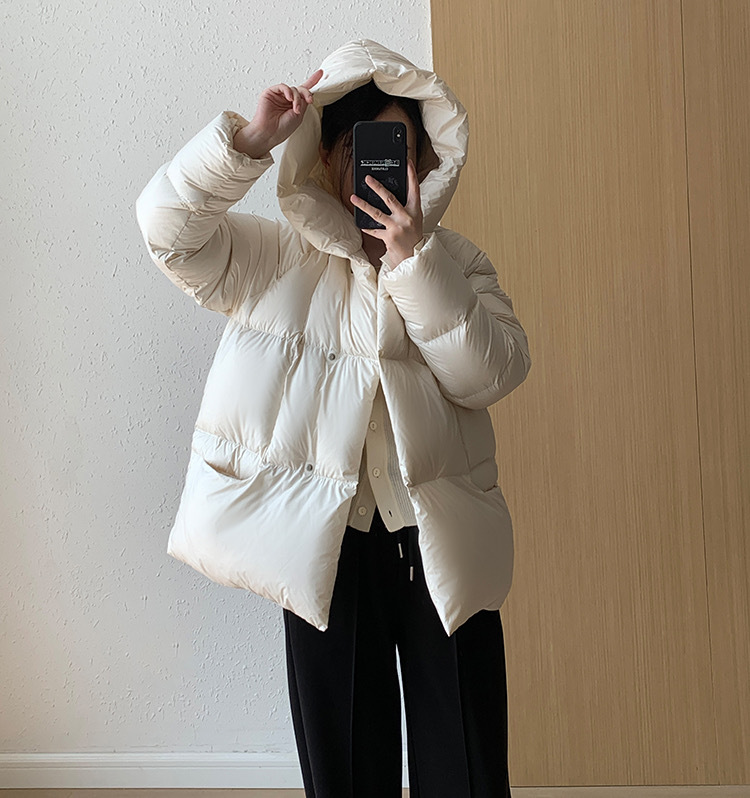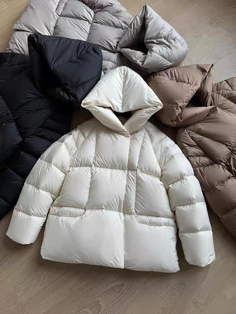 Женская короткая стильная пуховая куртка с капюшоном, зима 2025, 90% белый пух утки