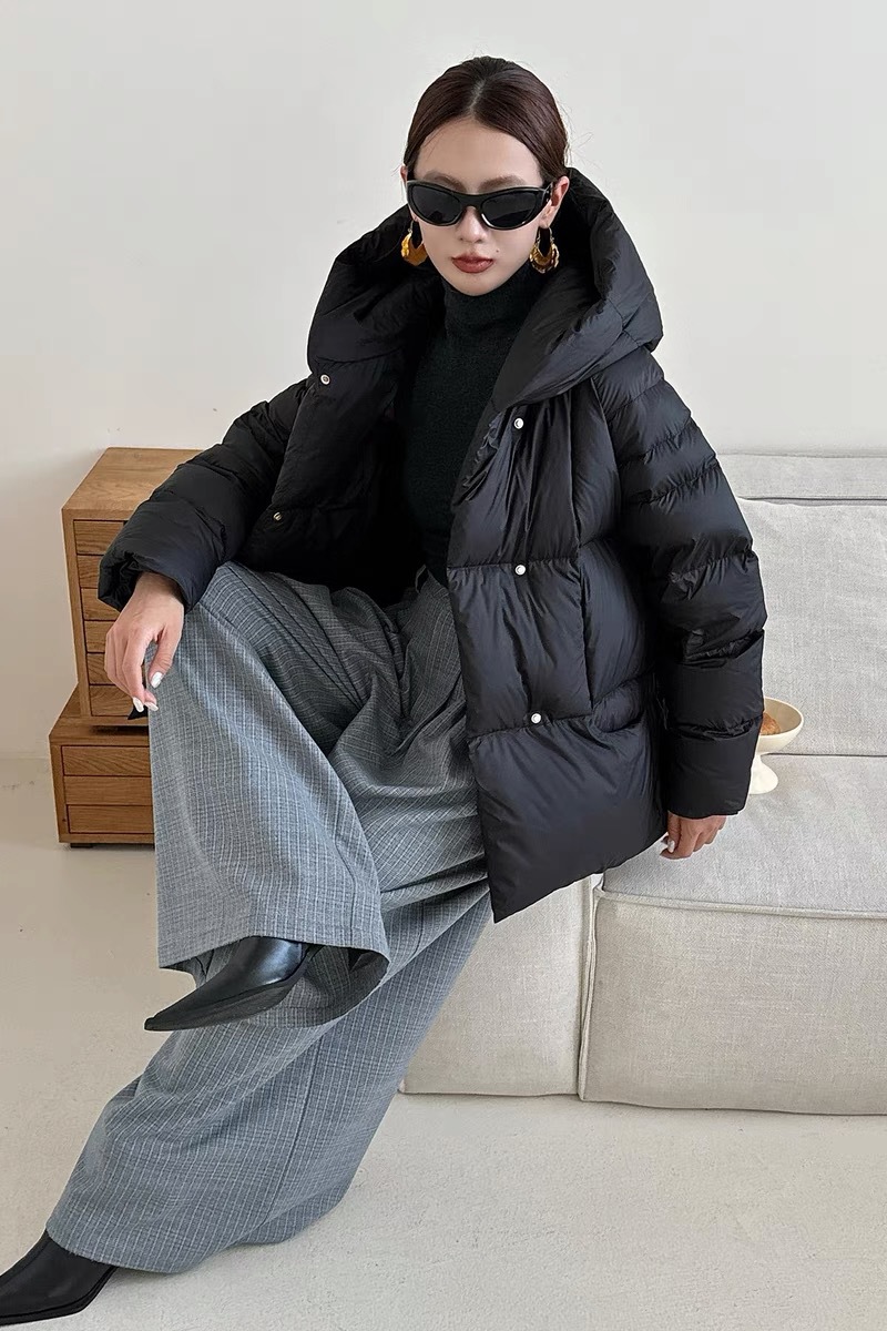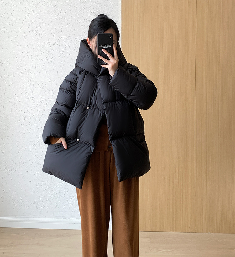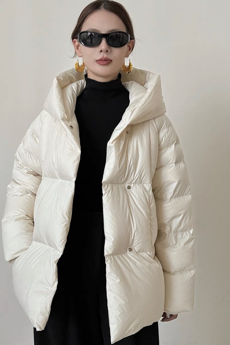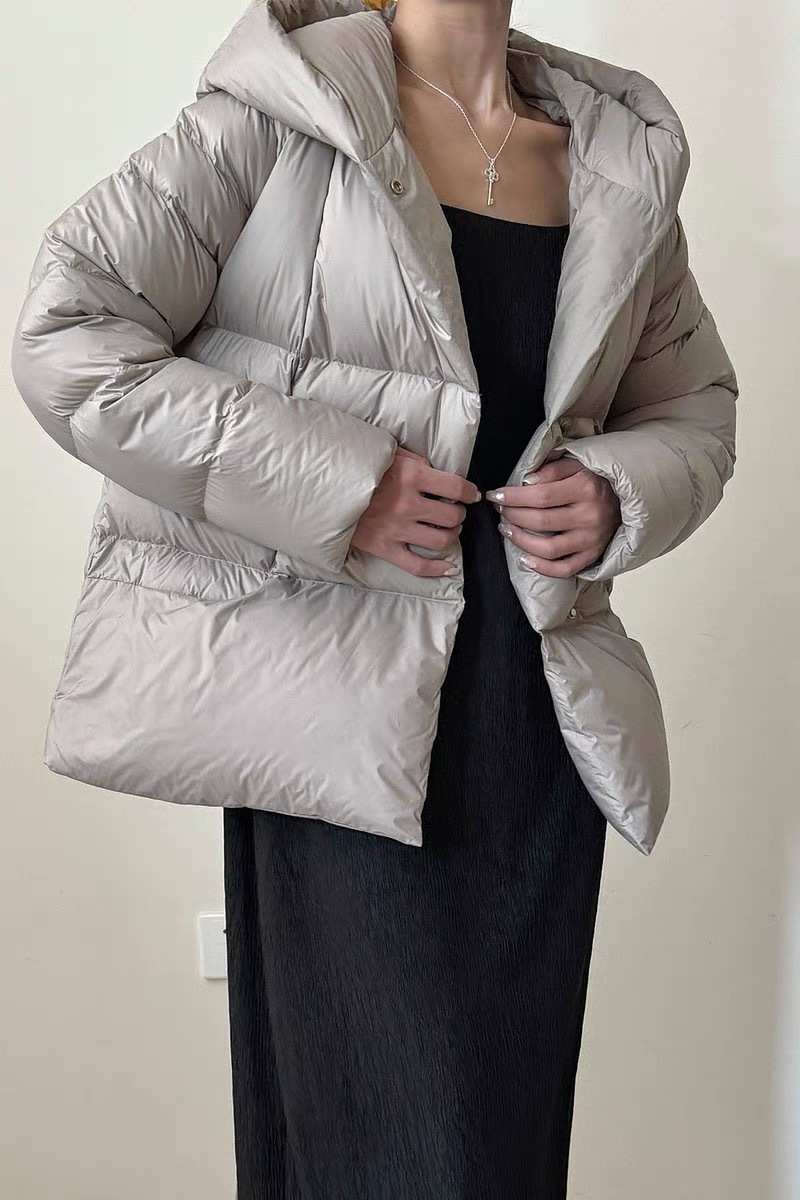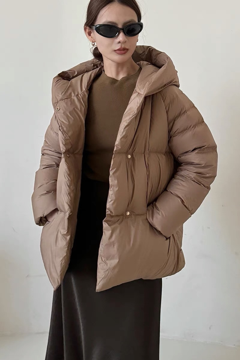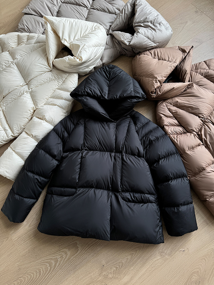 Женская короткая стильная пуховая куртка с капюшоном, зима 2025, 90% белый пух утки