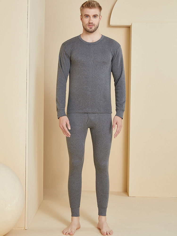 Комплект термобелья для высоких мужчин, тонкий эластичный топ с высокой талией, круглым вырезом и длинными рукавами, верх и низ 1004