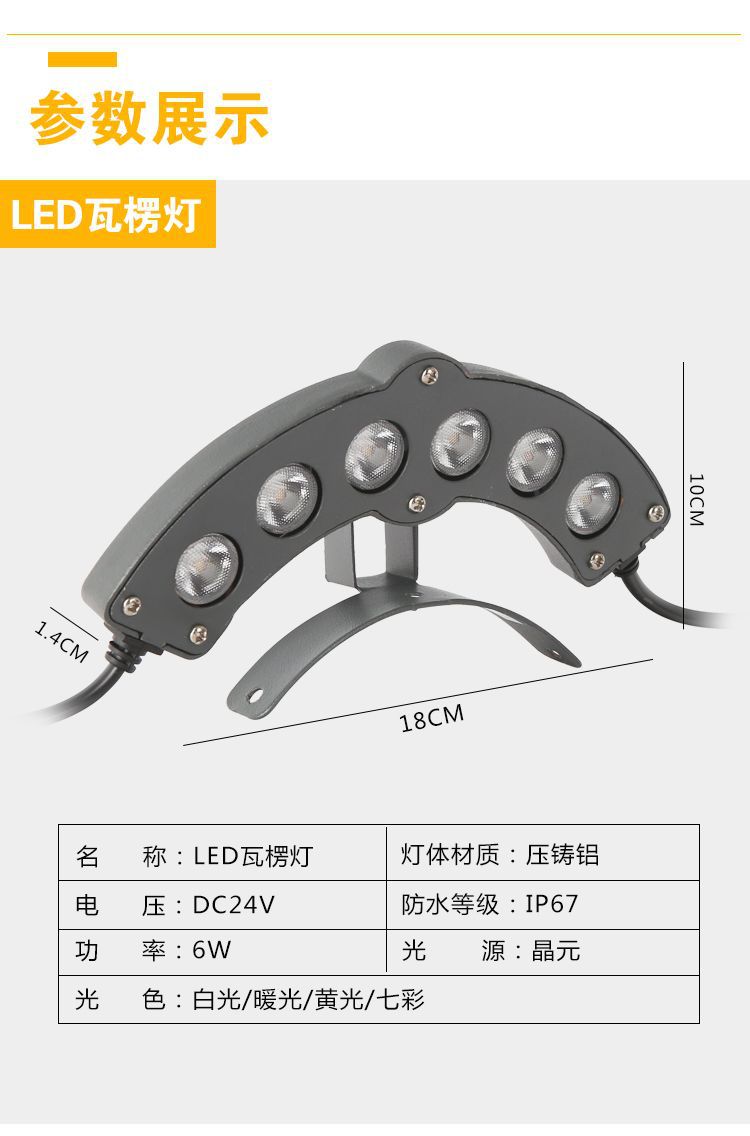 Светодиодный гофрированный светильник, новый 6 Вт, светильник для плитки, светильник для карниза, уличное водонепроницаемое освещение, проект, древнее здание, павильон, лунный свет