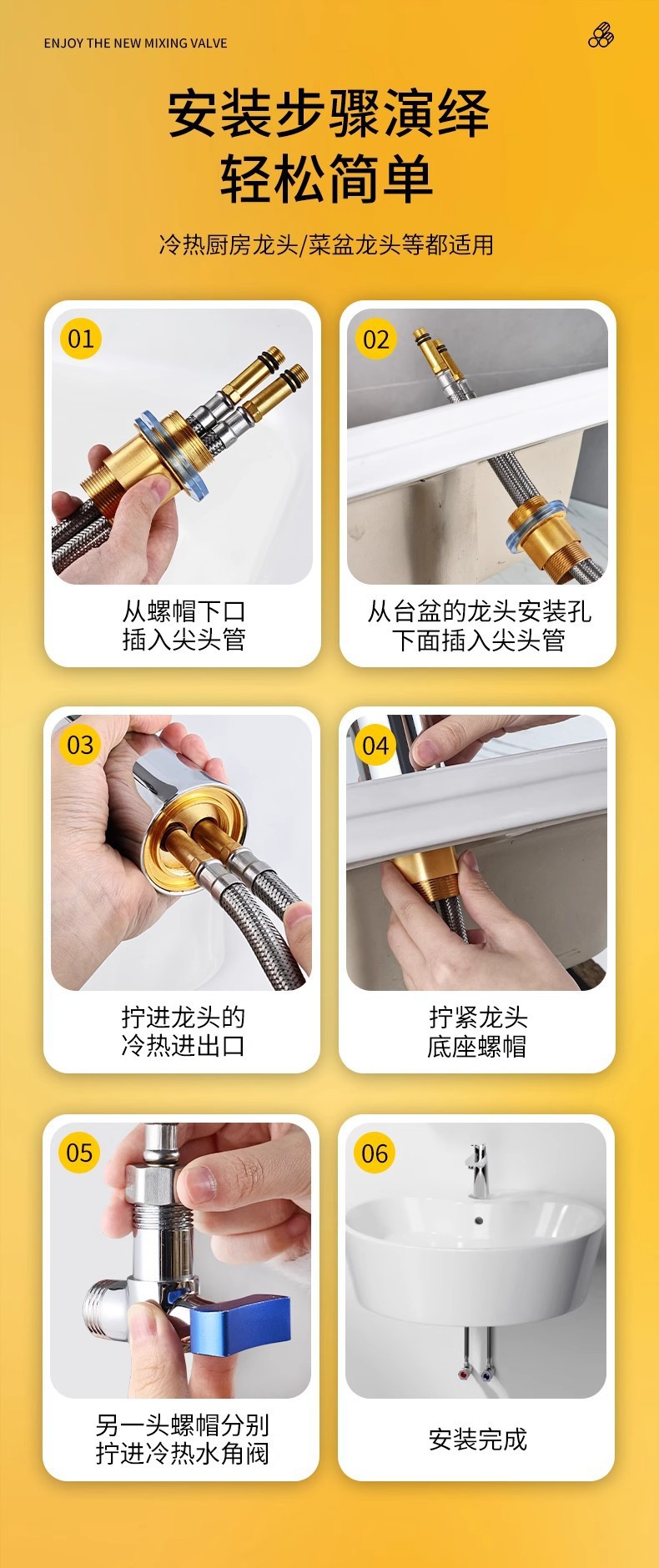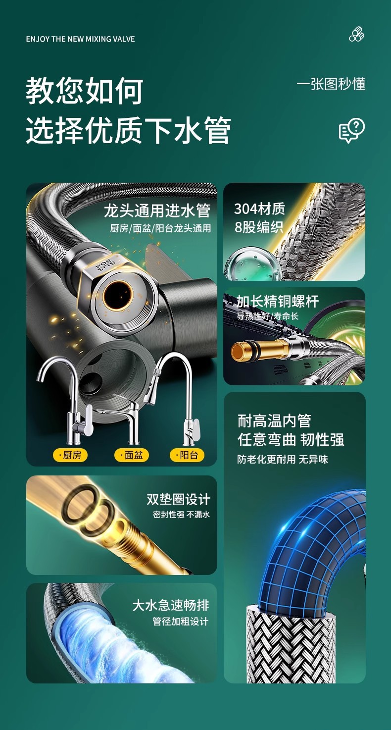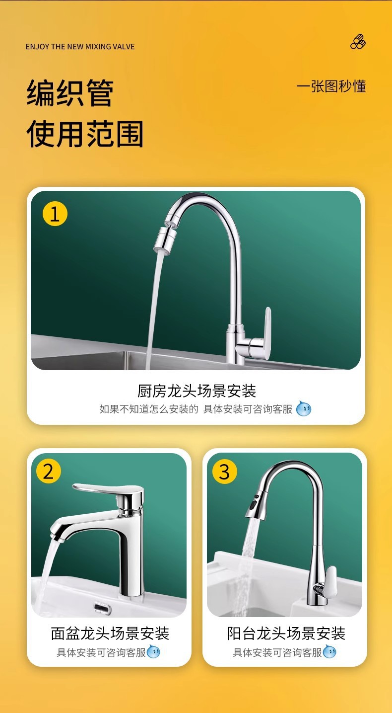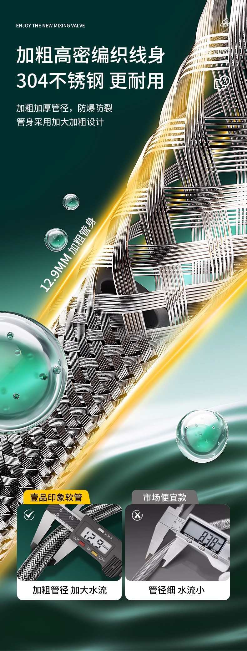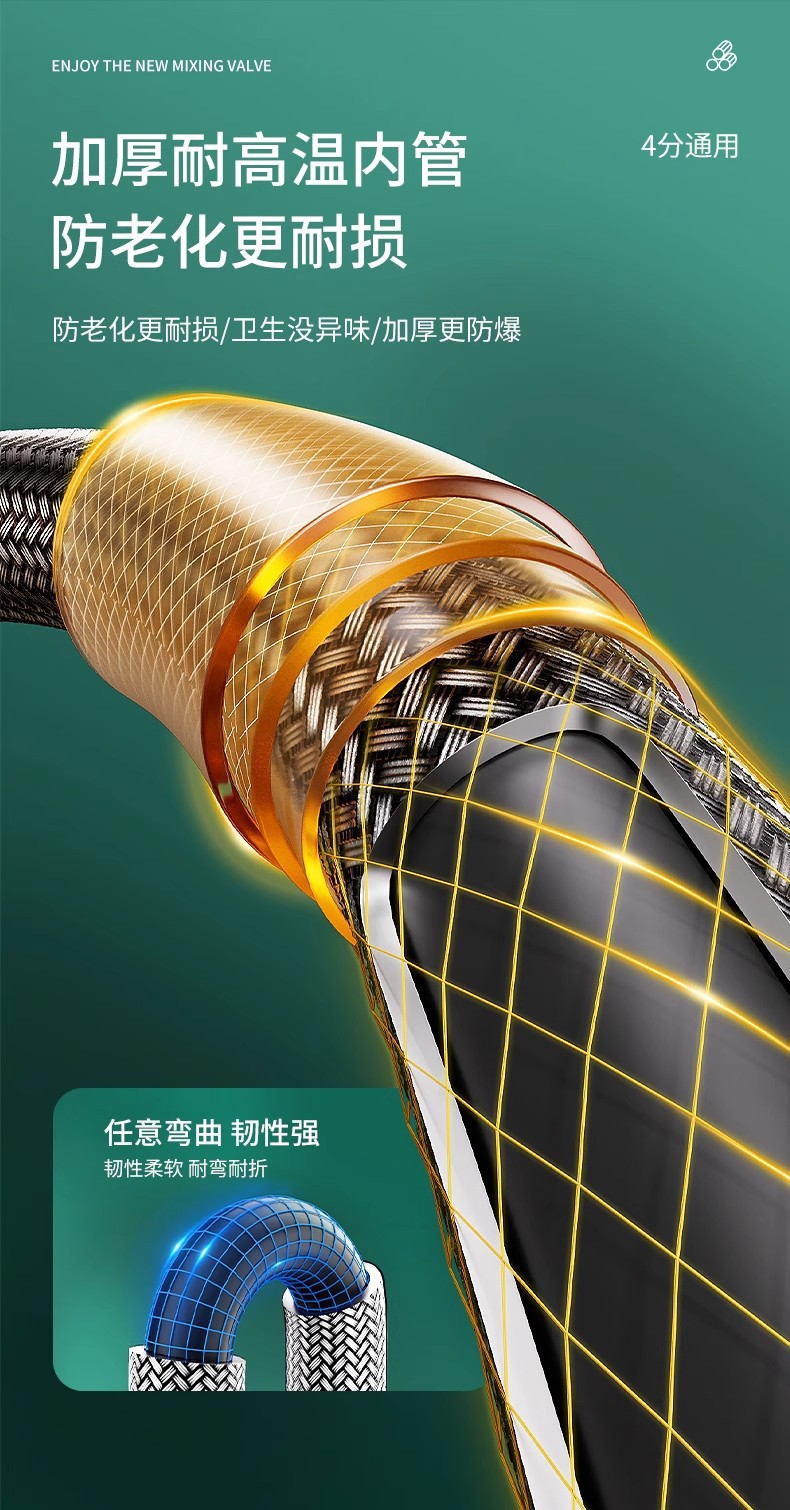 Плетеный шланг из нержавеющей стали 304 с удлиненным тонким медным резьбовым стержнем для подачи горячей и холодной воды, подходит для умывальника и раковины, взрывозащищенная труба.