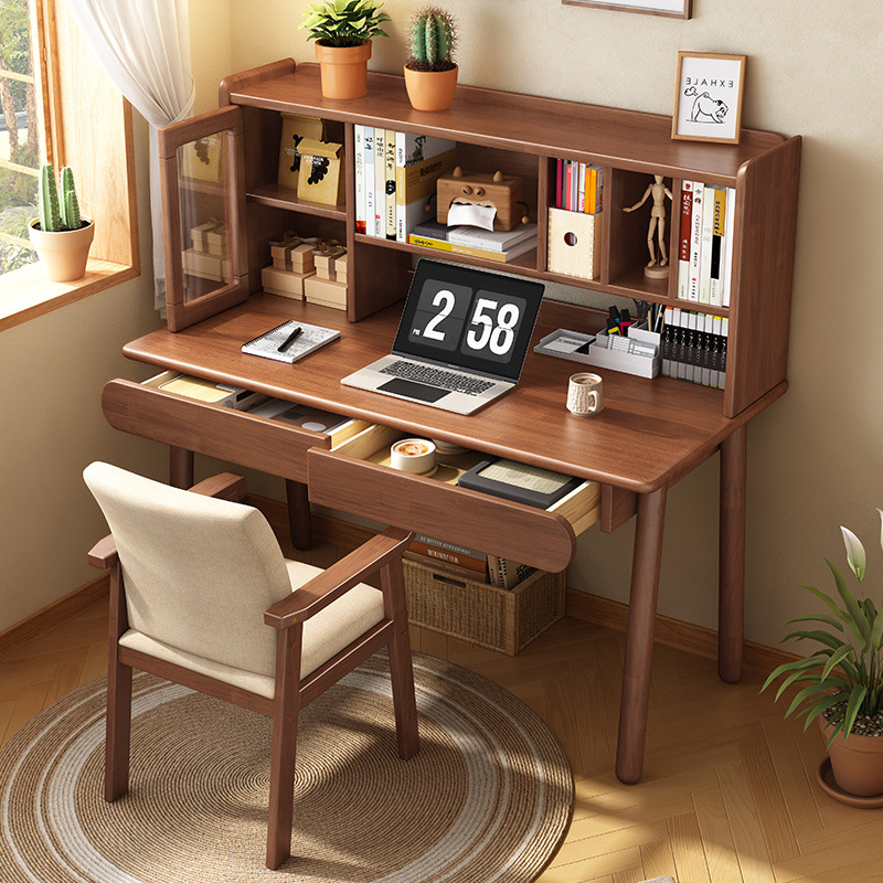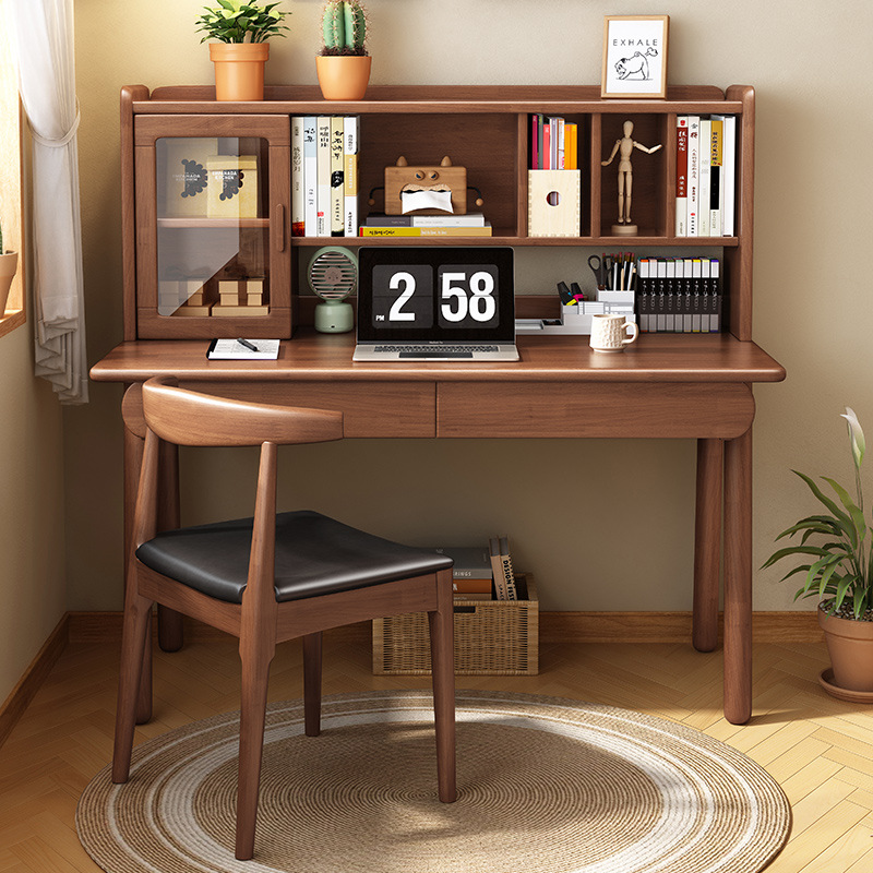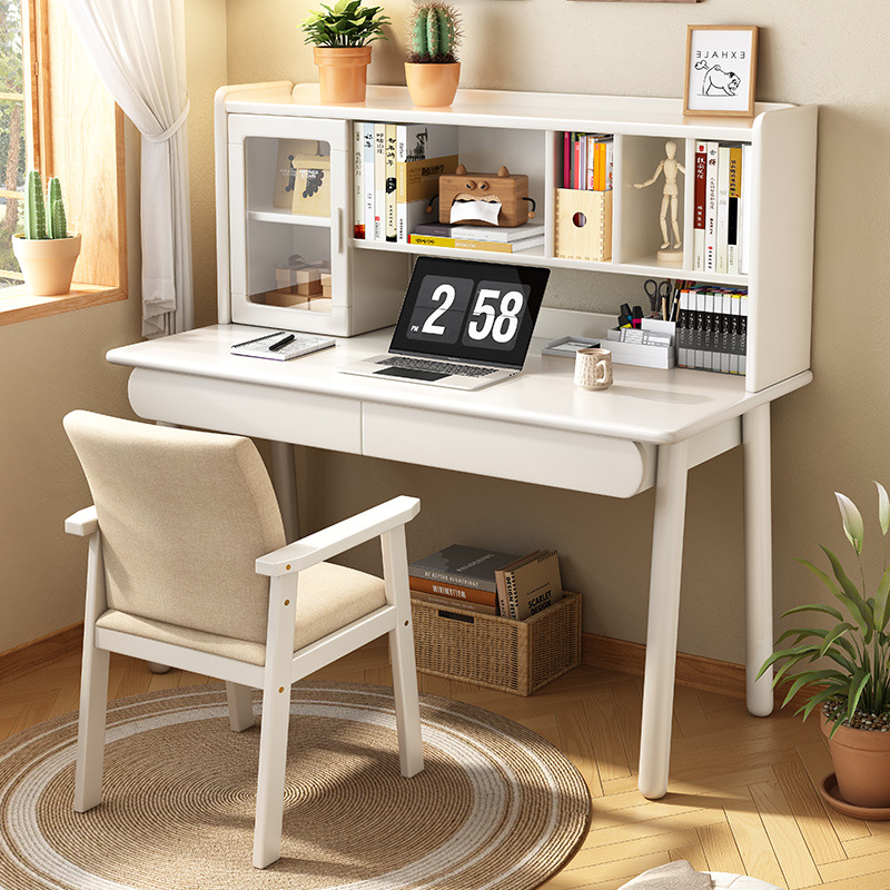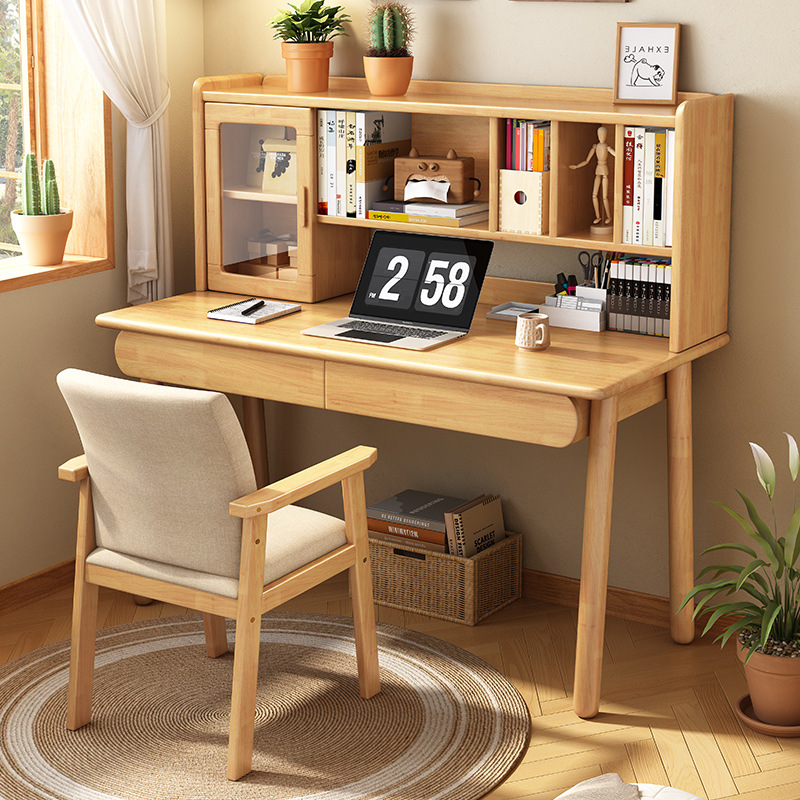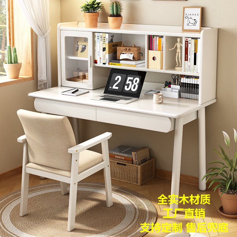 Настольная книжная полка из цельного дерева, встроенный стол, скандинавский простой домашний компьютерный стол, письменный стол для спальни, ученика начальной и средней школы