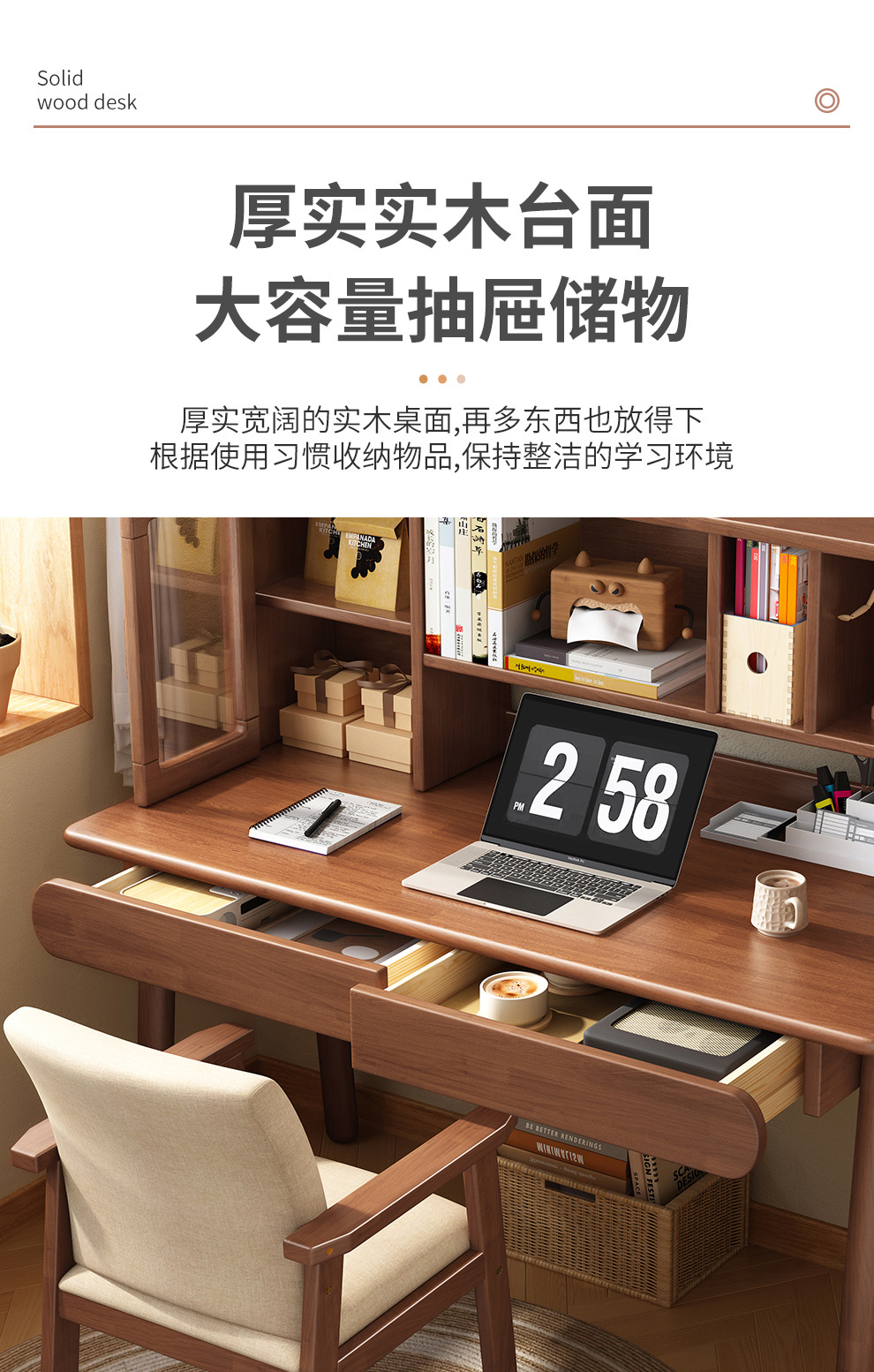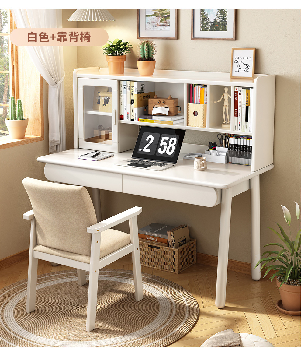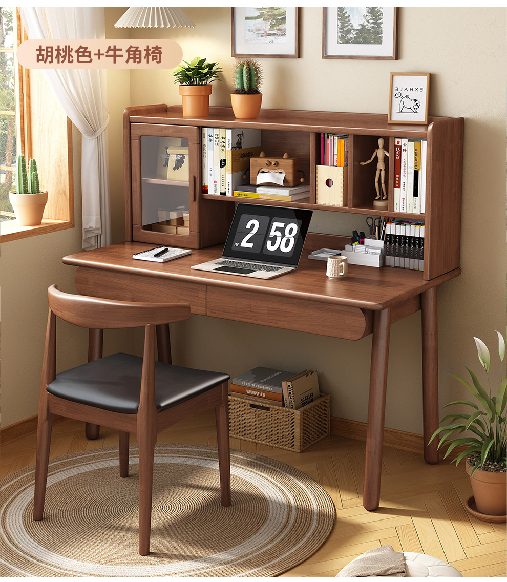 Настольная книжная полка из цельного дерева, встроенный стол, скандинавский простой домашний компьютерный стол, письменный стол для спальни, ученика начальной и средней школы