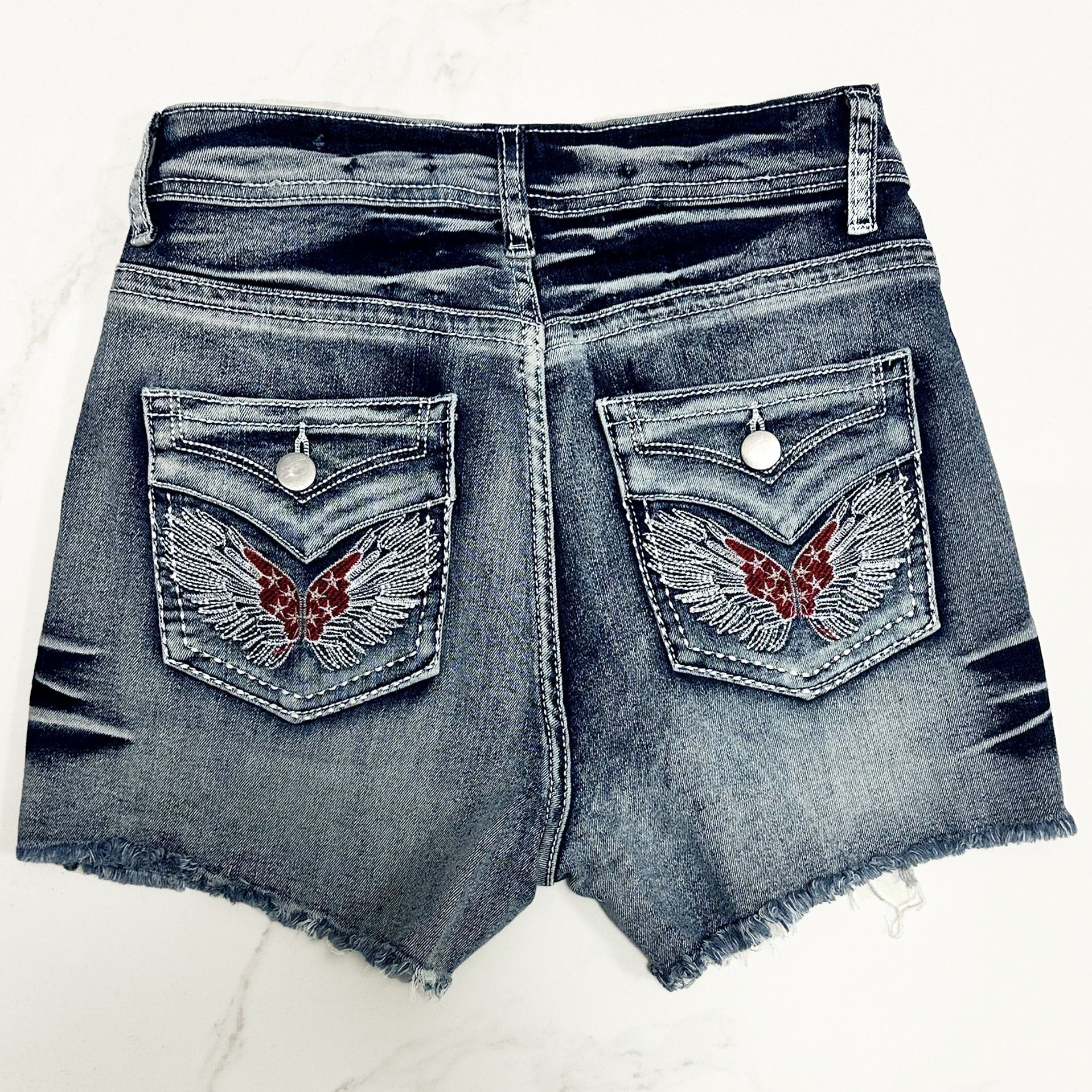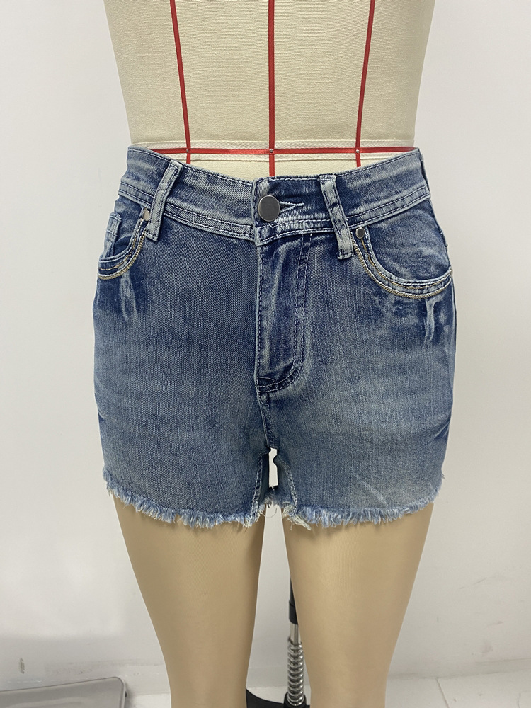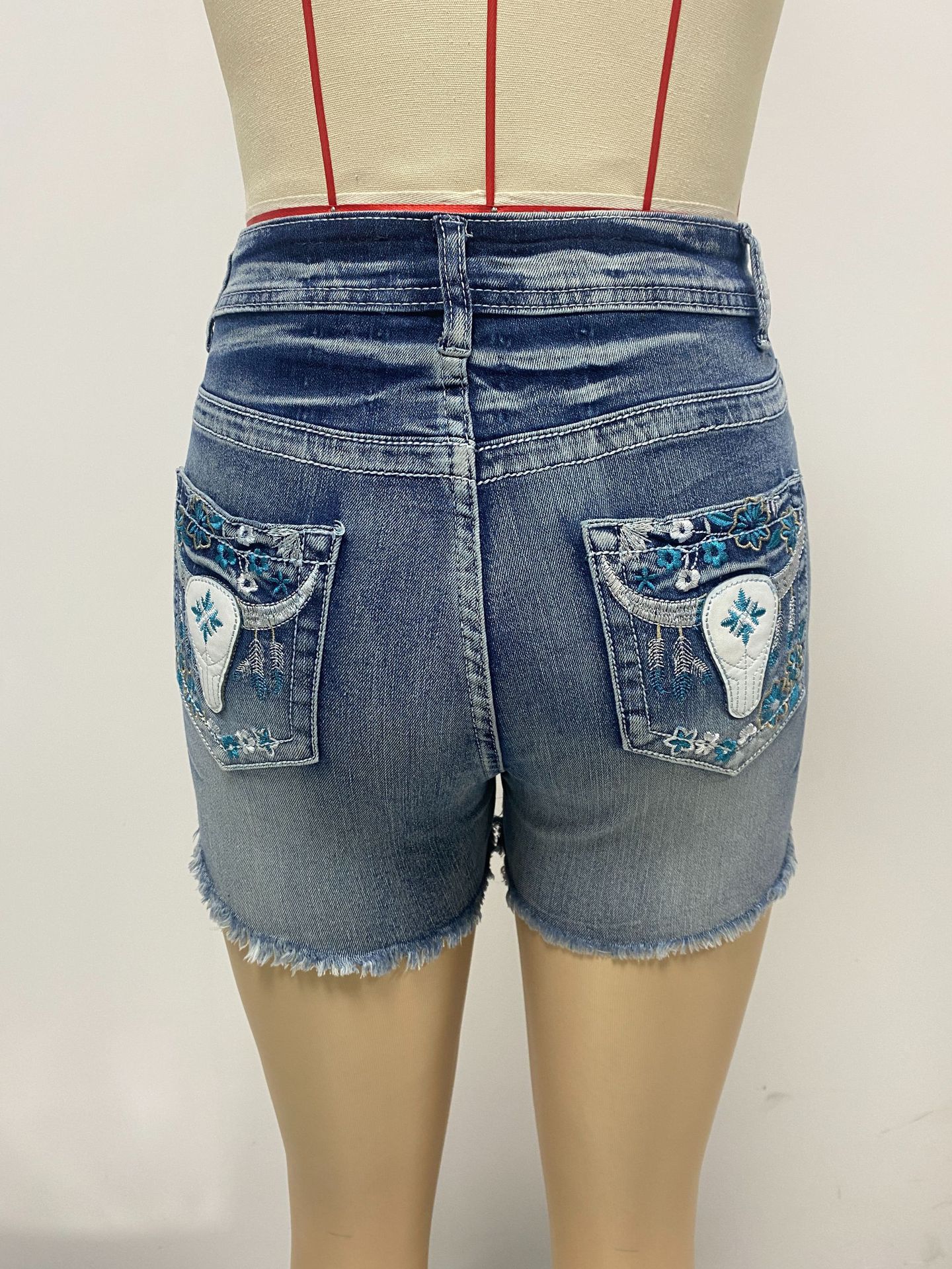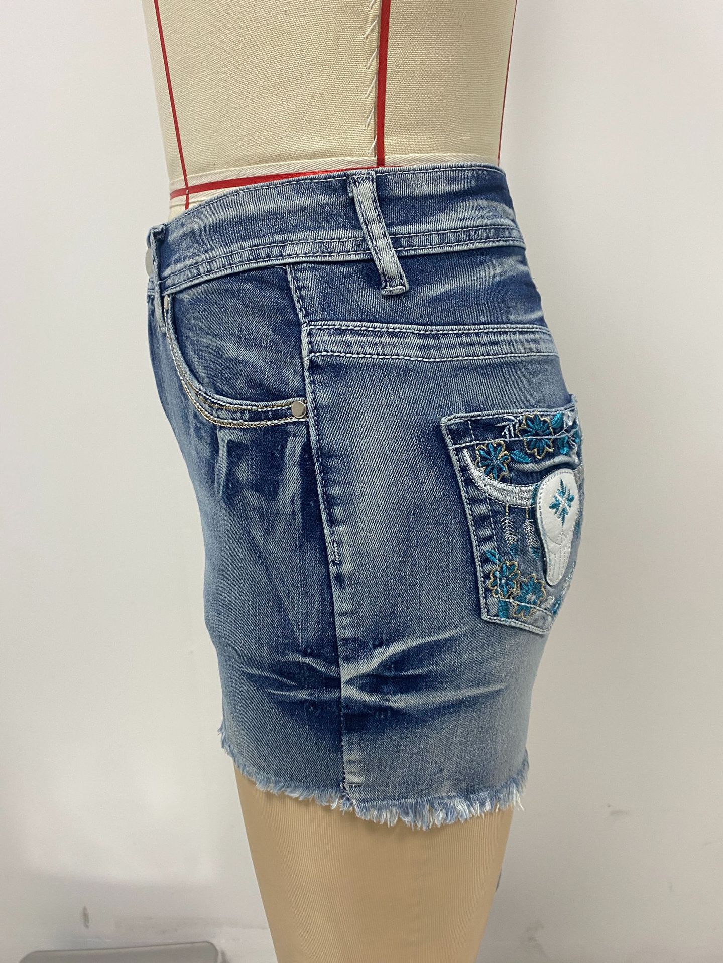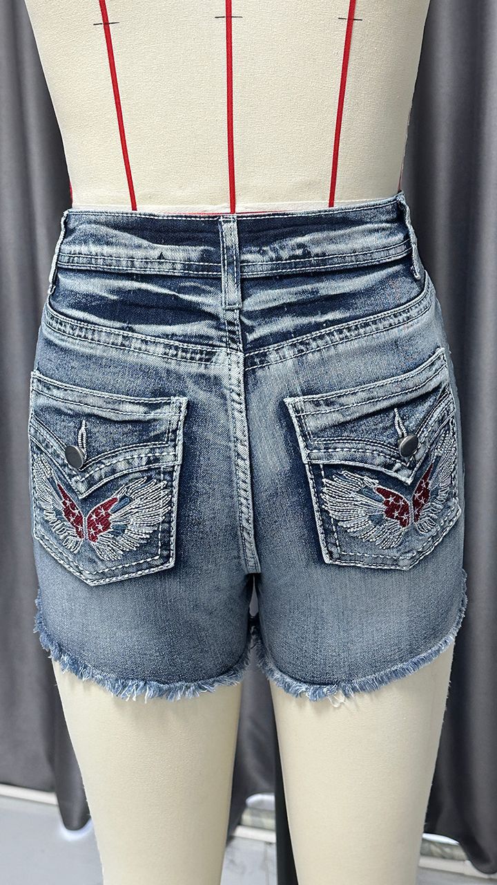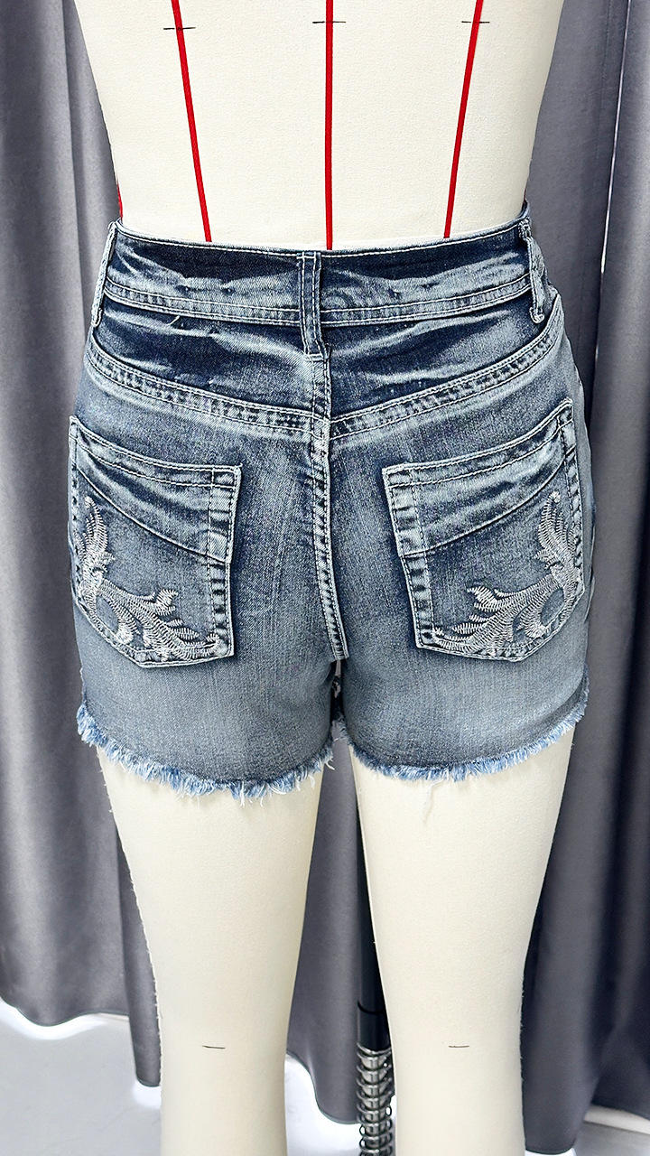 Женские джинсовые шорты в стиле американского ретро, вышивка, облегающий крой, необработанные края, оптовая торговля Amazon, лето 2025 года