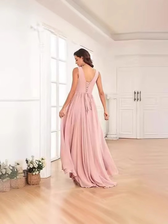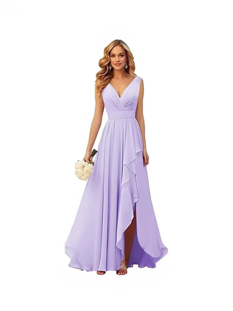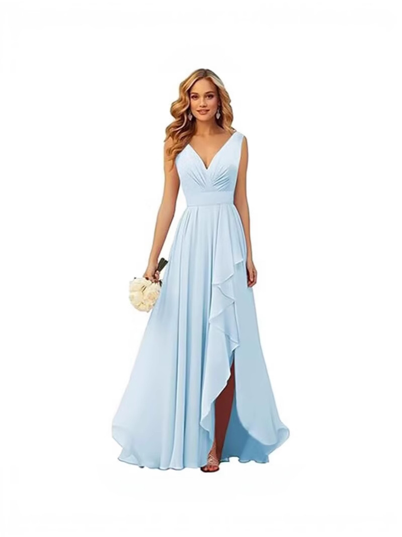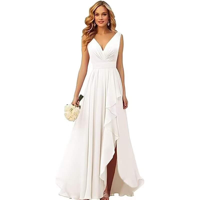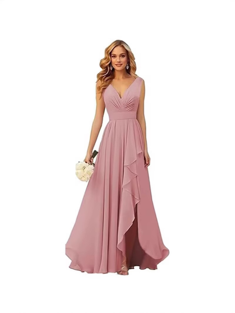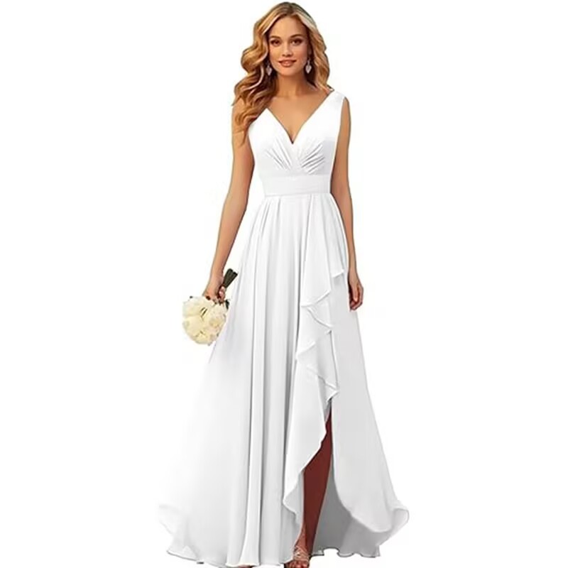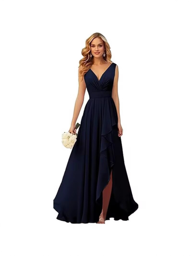 Вечернее платье 2025 года с V-образным вырезом, плиссированным разрезом, длинными бретелями, шифоновое платье для рождественской вечеринки, юбка для экспорта