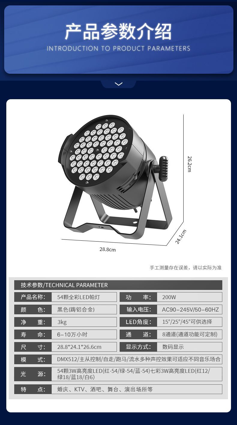 Сценическое освещение 54 3W PAR-светильника полного цвета, трехв-одном, свадебное шоу, управление голосом, светодиодные цветные светильники