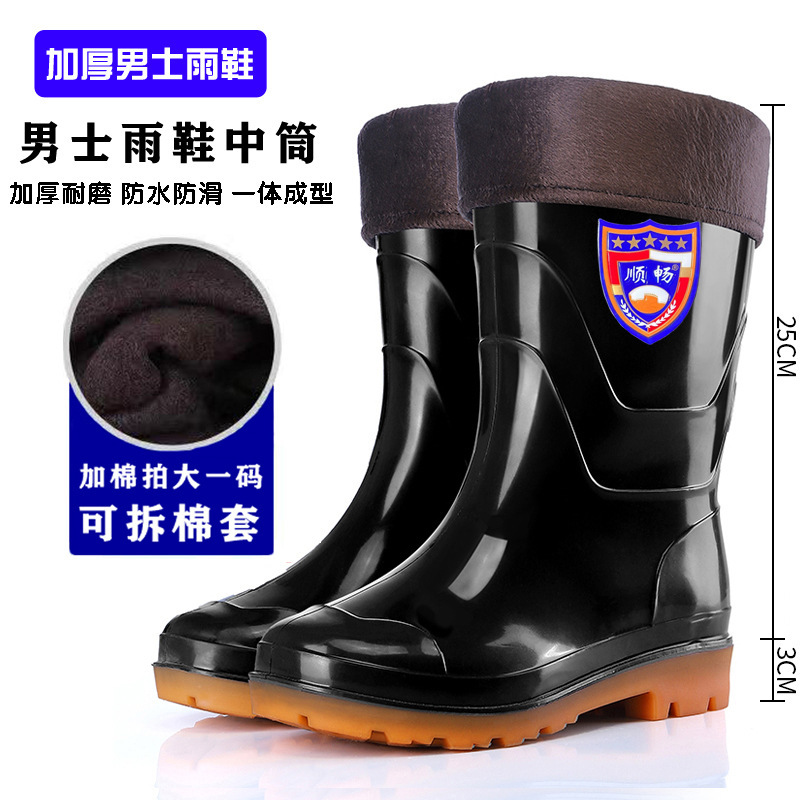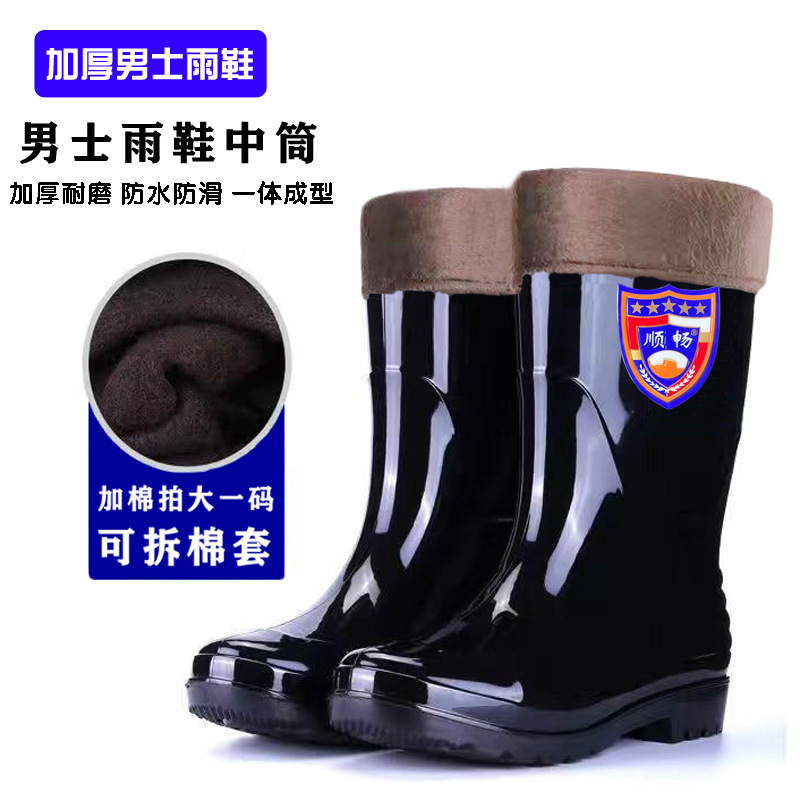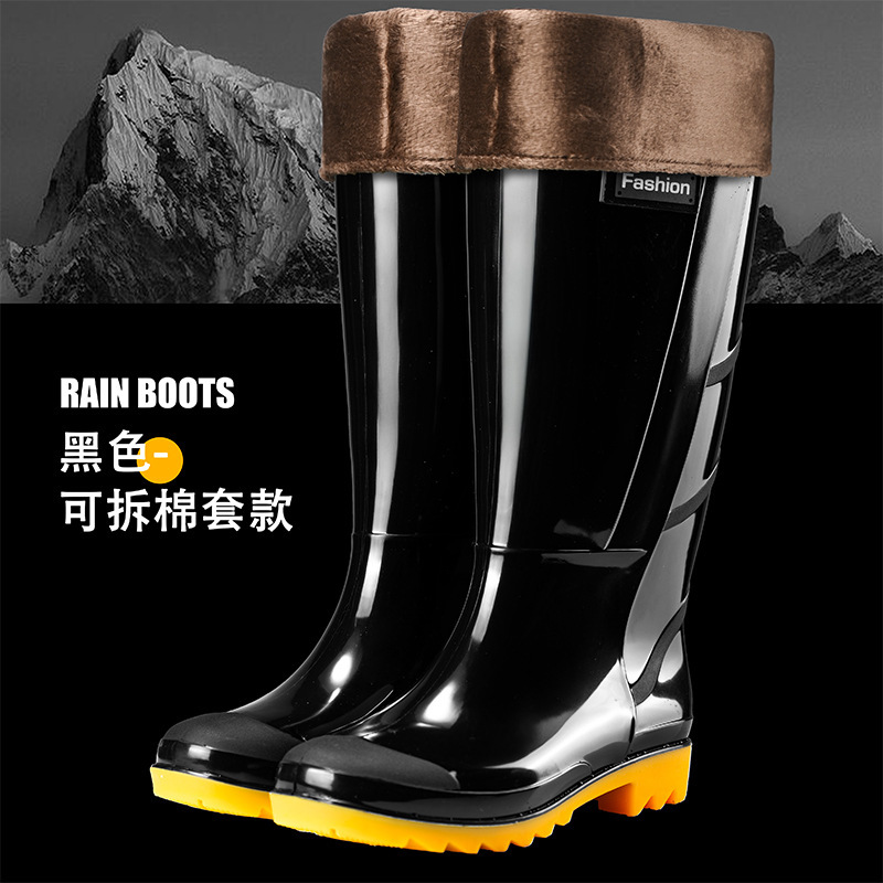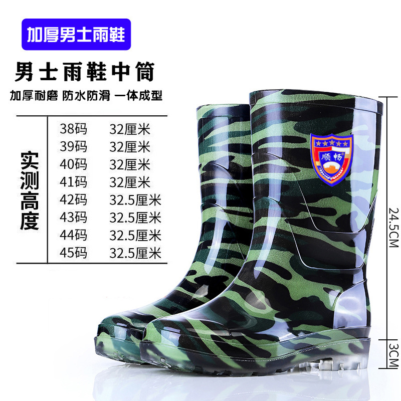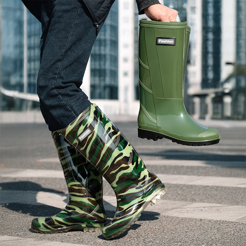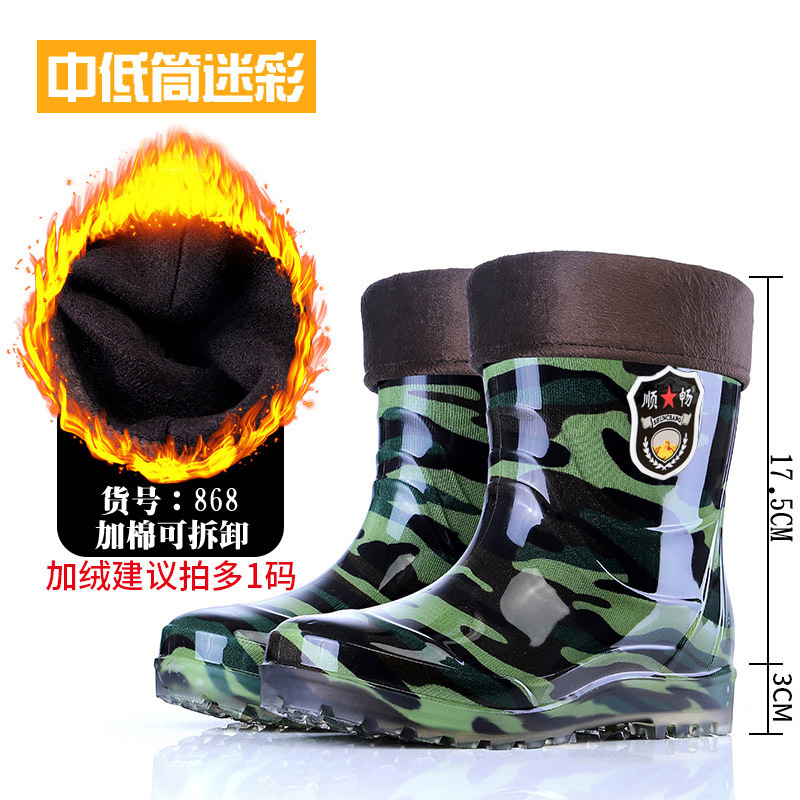 Высокие резиновые сапоги для защиты труда, камуфляжные мужские водонепроницаемые и износостойкие водные туфли на сухожильной подошве, плюс бархатная теплая обувь, горячая оптовая продажа Taobao