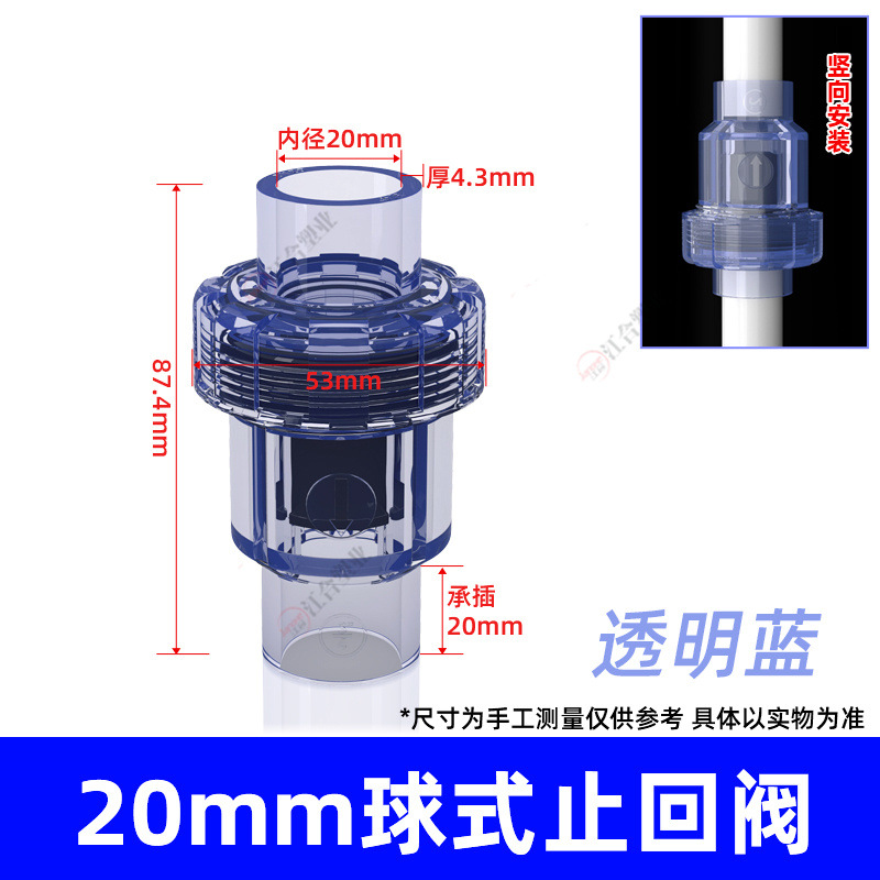 Клапан обратный шаровой 20 мм прозрачный синий; Клапан обратный шаровой 25 мм прозрачный синий; Клапан обратный шаровой 32 мм, прозрачный синий; Клапан обратный шаровой 40 мм прозрачный синий; Клапан обратный шаровой 63 мм, прозрачный синий; Клапан обратный шаровой 75 мм, прозрачный синий; Обратный клапан 32 мм, прозрачный синий; Обратный клапан 40 мм, прозрачный синий; Обратный клапан 63 мм, прозрачный синий; Обратный клапан 75 мм, прозрачный синий; Обратный клапан 90 мм, прозрачный синий; Обратный клапан 110 мм, прозрачный синий