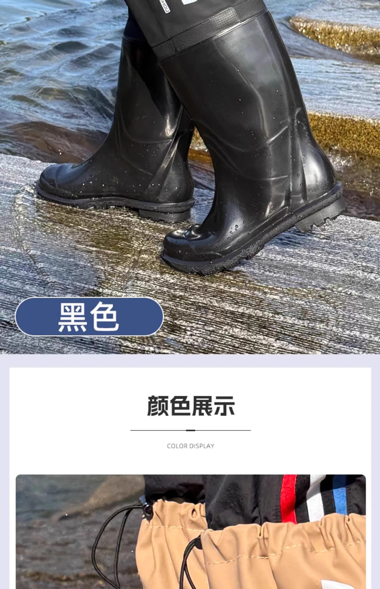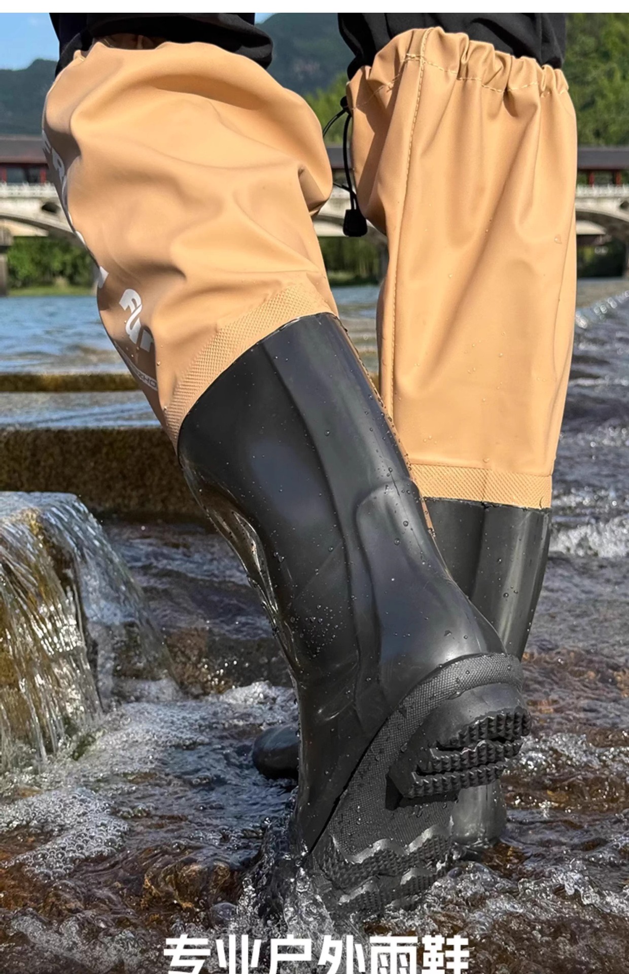 Дождевые сапоги Outdoor Lure — черные [улучшенная утолщенная подошва]; Уличные дождевые сапоги-хаки [улучшенная утолщенная подошва]