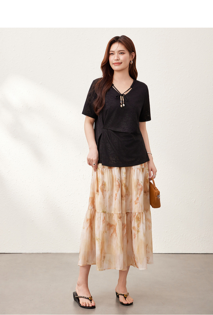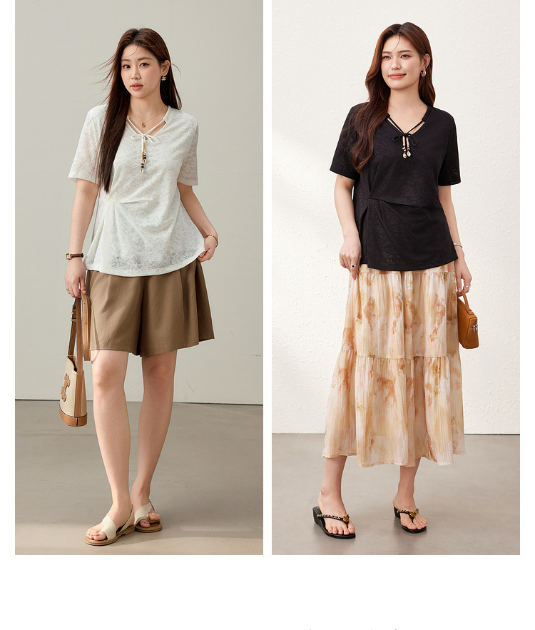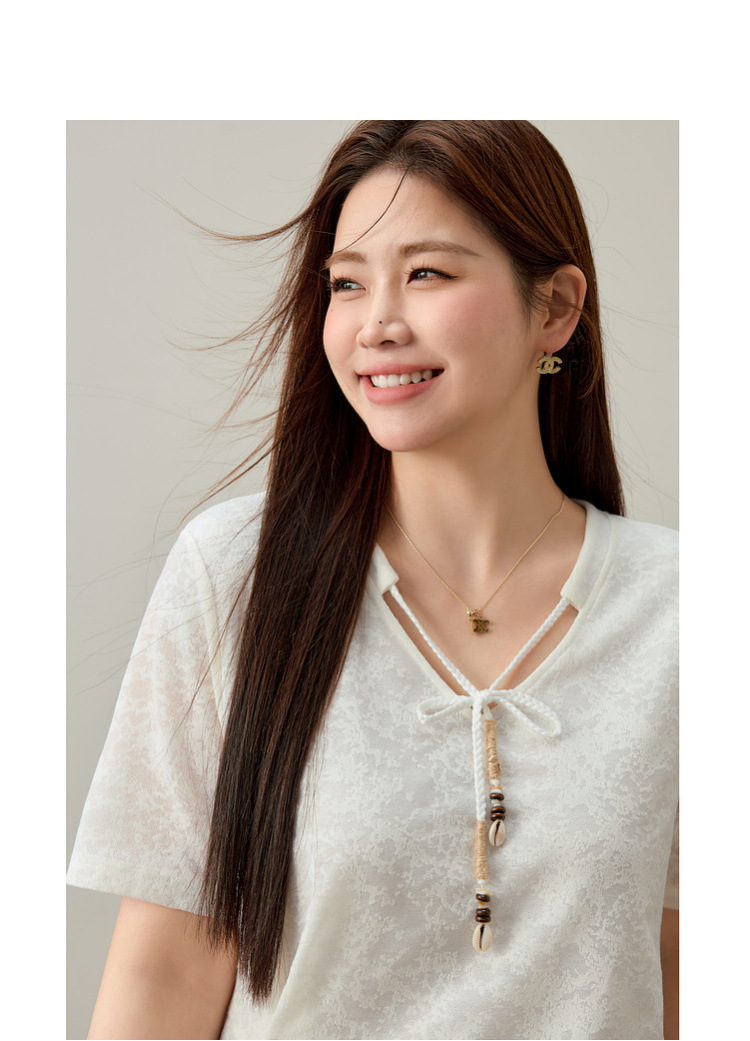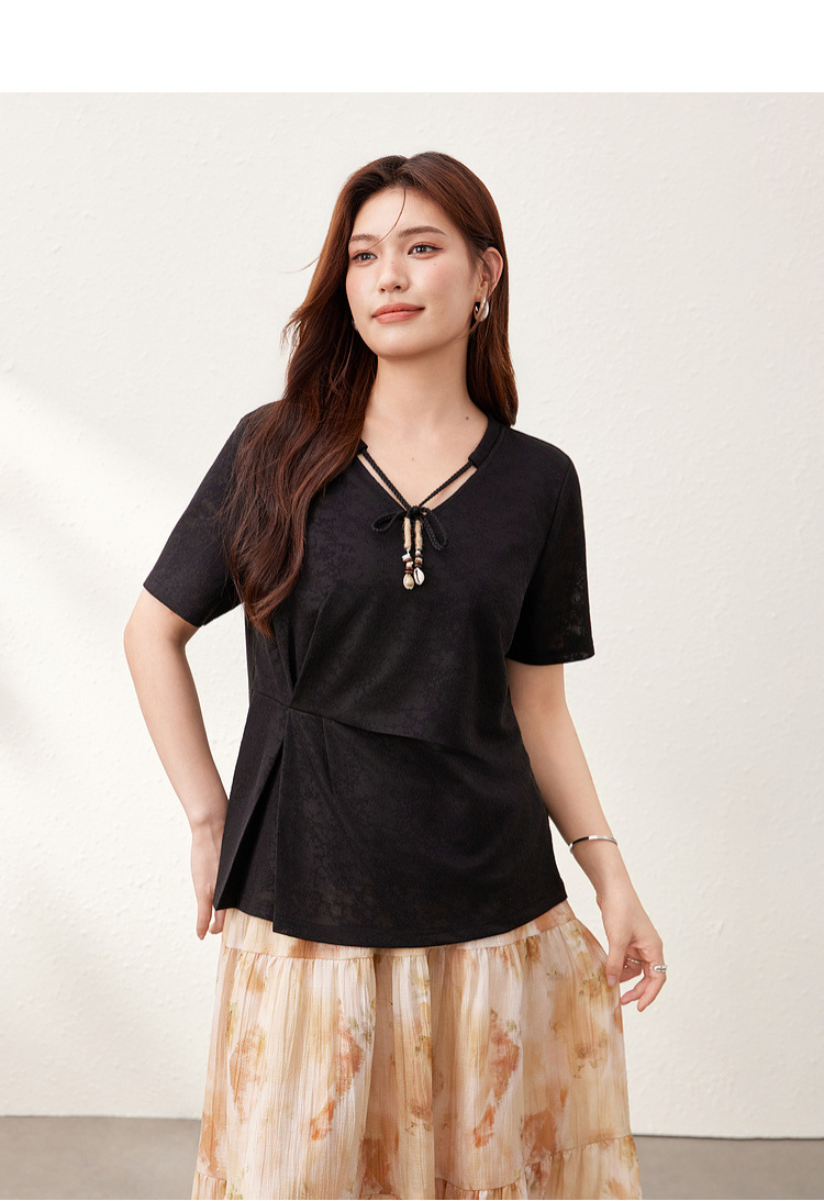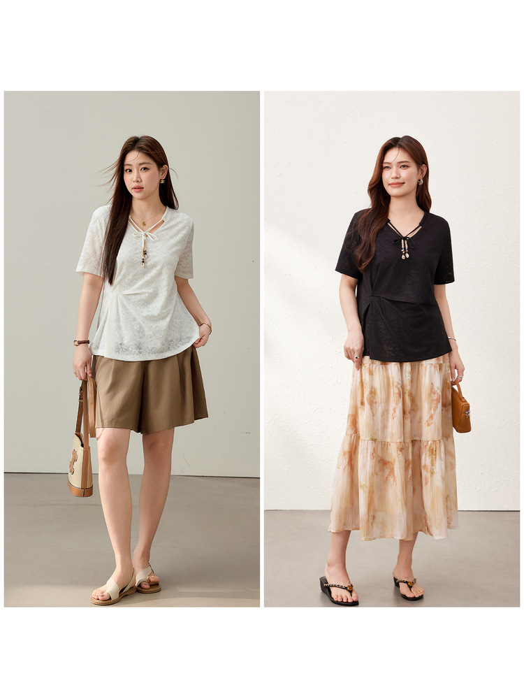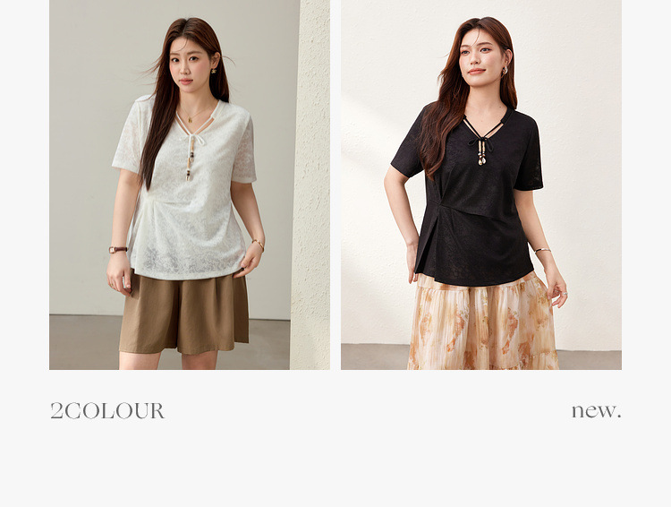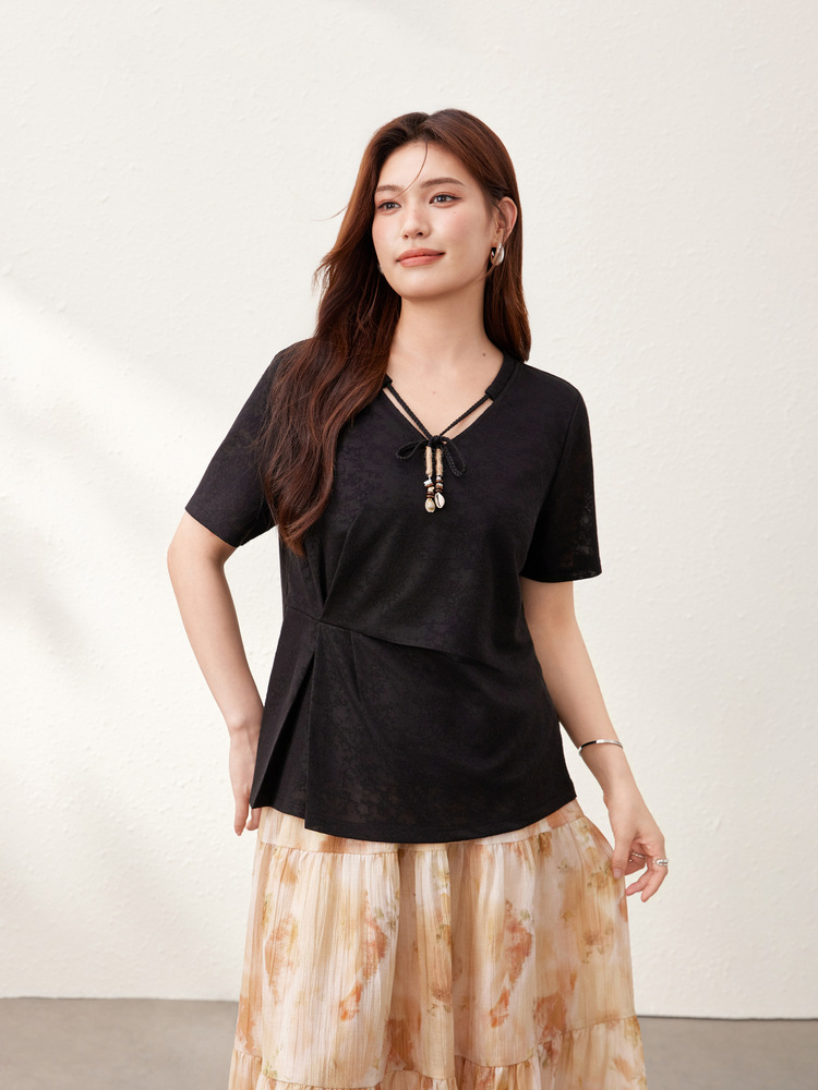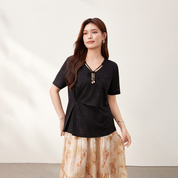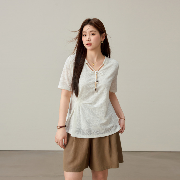【Нежный аромат и редкие тени】Новый жаккардовый кружевной вязаный свитер в китайском стиле с v-образным вырезом для похудения, женская одежда больших размеров для женщин больших размеров, новый летний стиль.
