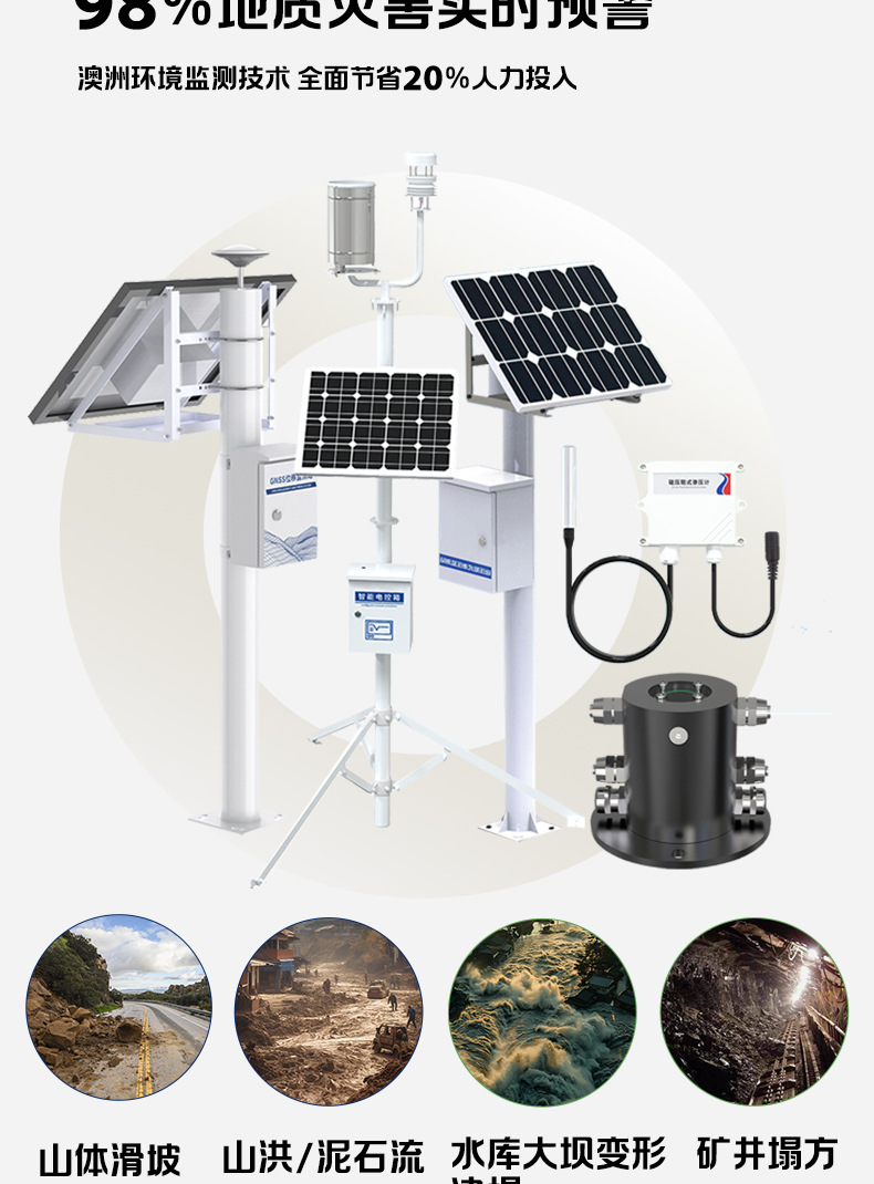 Геологический гидрологический монитор Солнечная беспроводная многопараметрическая система геологического гидрологического мониторинга Монитор наводнений и лandslide