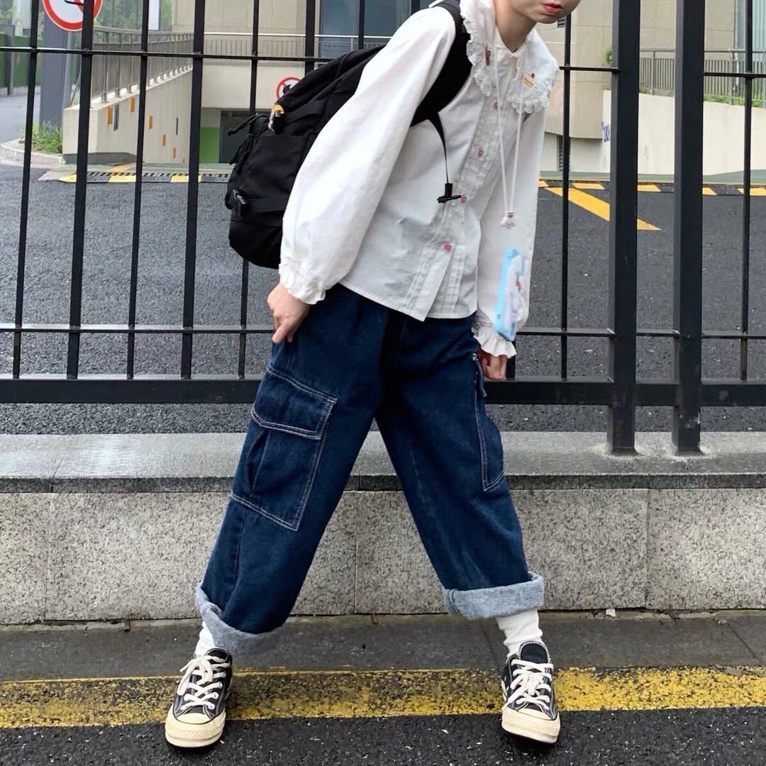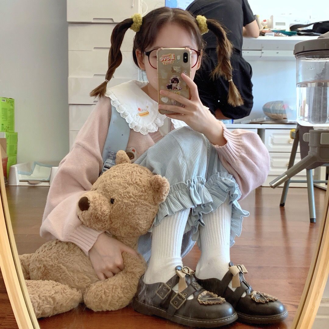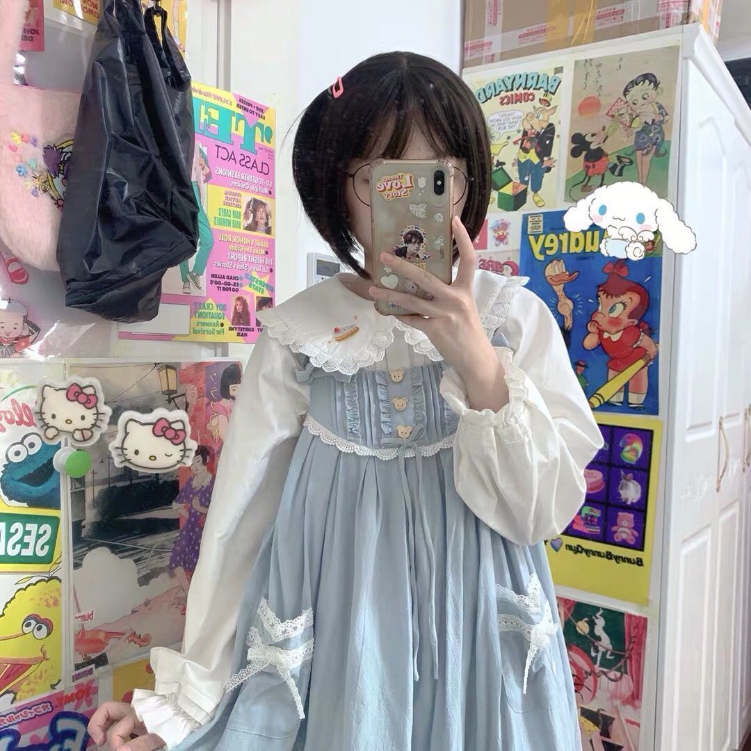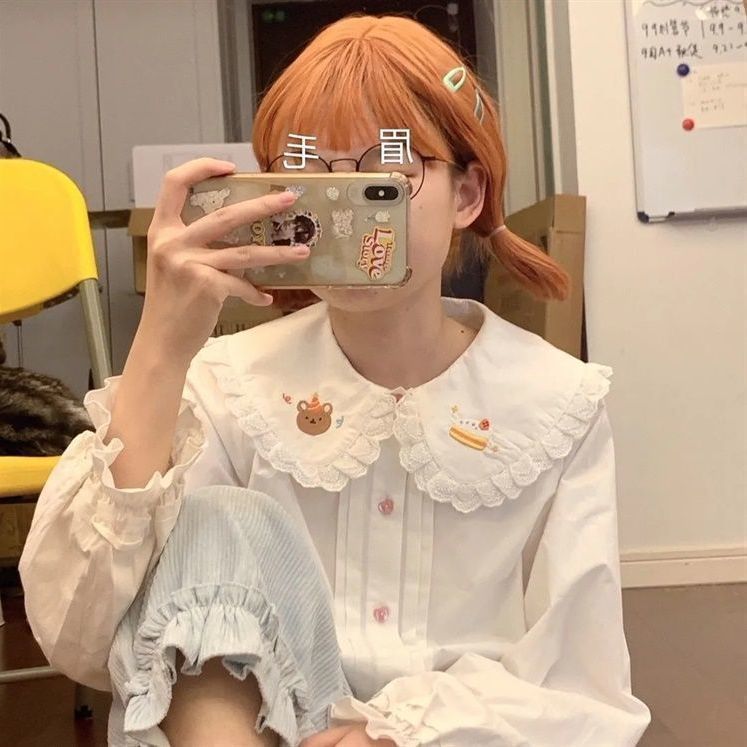 Японская рубашка с рукавами-фонариками и воротником куклы JK для женщин больших размеров с кружевом и вышивкой медведя, свободный осенний внутренний топ.