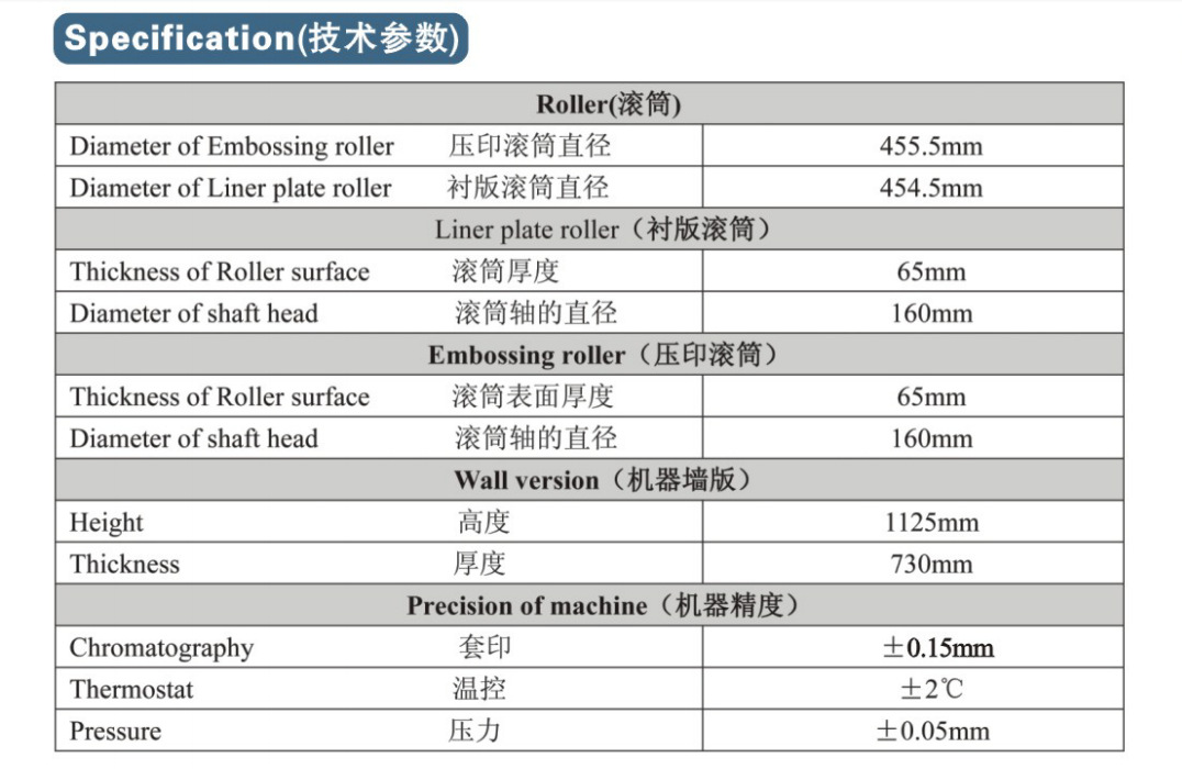 它的主要工作性能体现:可以在机器的印版滚筒表面装上精致光纹版,通过深压纹印压,将表面上光纹直接印压到纸张、金银卡或PET膜等特种纸上。