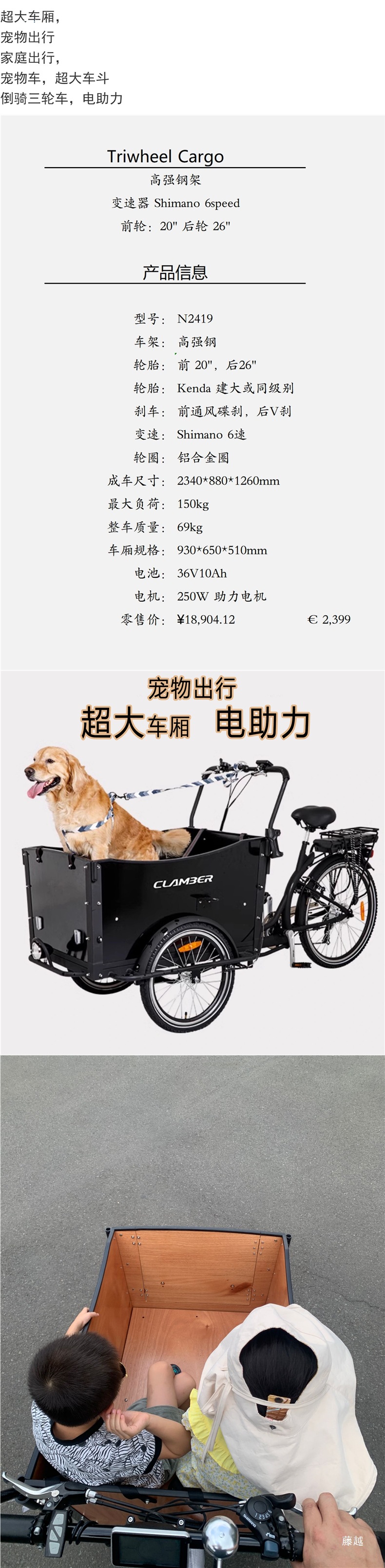 Грузовой велосипед, велосипед с задним ходом, трехколесный велосипед с задним ходом, семейный велосипед, транспорт для животных, грузовой велосипед, грузоподъемность