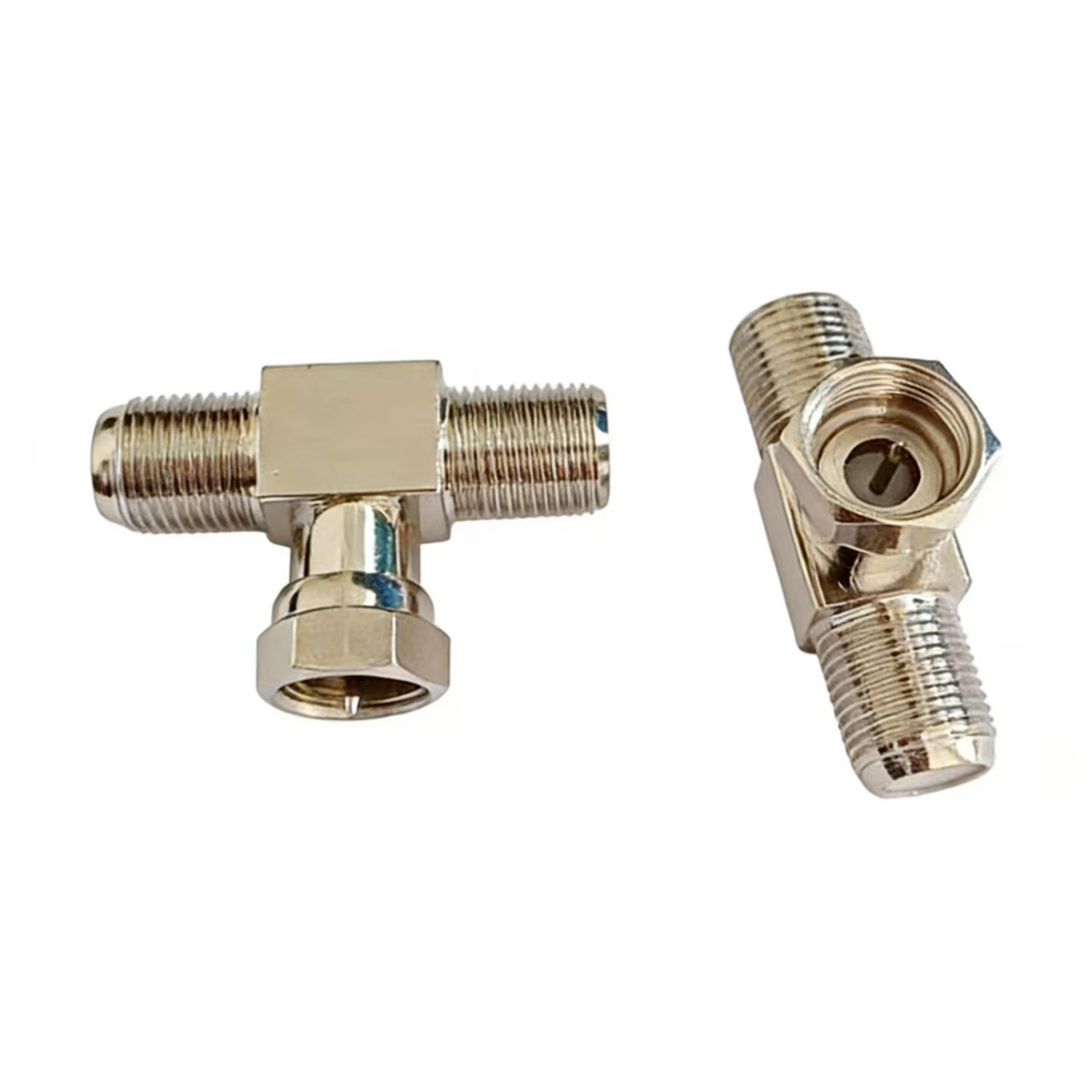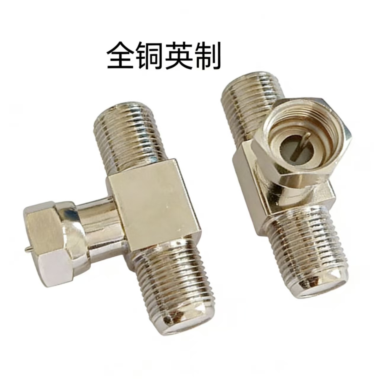 Прямые поставки с завода: разъем для кабельного телевидения F-KJK, полностью медный, никелированный, британский стандарт, F-разъем, трехконтактный, один штекер на две гнезда.