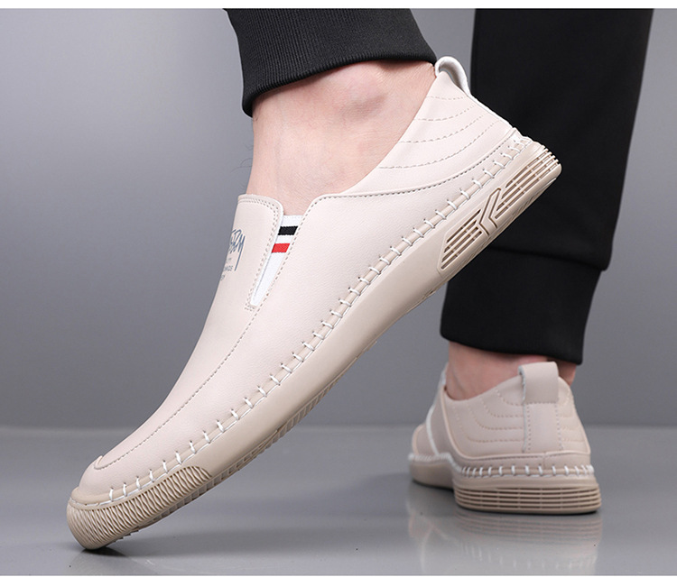 Мужские кожаные туфли Para Shoes 2025, новые весенне-летние, повседневные, однотонные, белые, для вождения.
