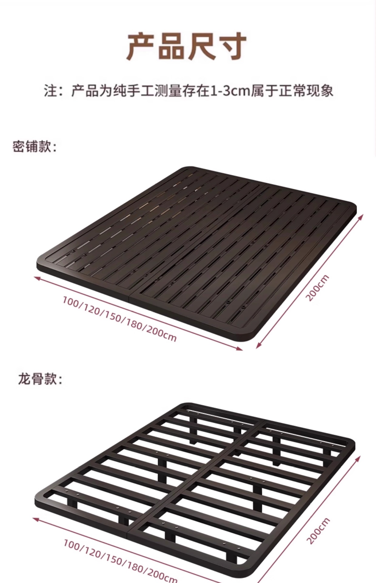 100cm*190cm; 100см*200см.; 120см*190см.; 120 см*200 см; 135см*190см.; 135cm*200cm; 150см*190см.; 150cm*200cm; 180см*200см