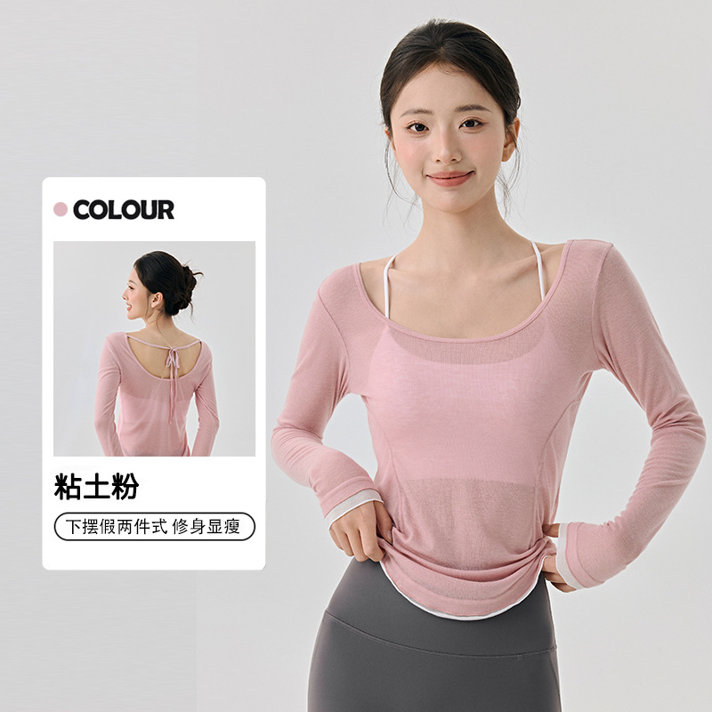 Свободная повседневная высококачественная блузка для йоги с контрастным цветом по подолу, легкая, дышащая и сексуальная спортивная блузка с длинными рукавами и открытой спиной.