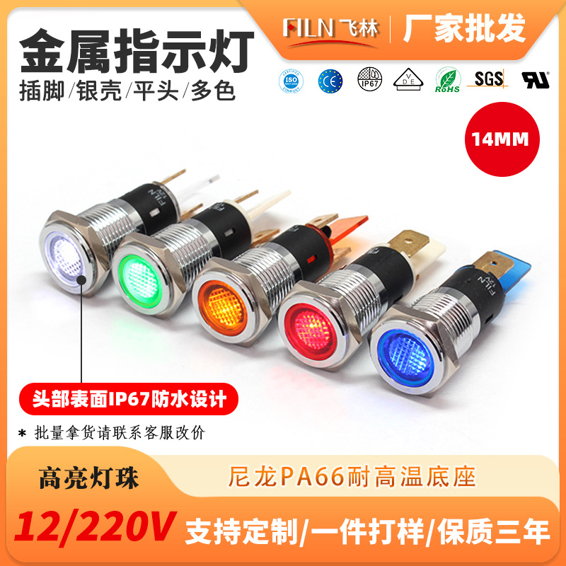 14 мм плоский контактный индикатор, светодиодный металлический сигнальный светильник, 12 В, 220 В, производитель FL1M-14FJ-1