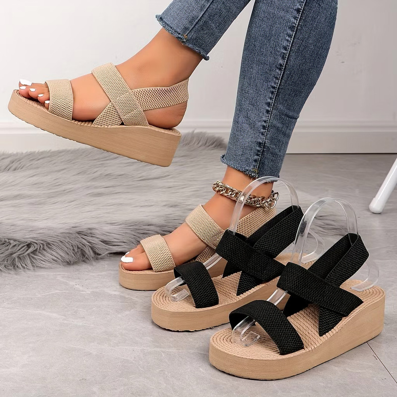 Новые римские универсальные женские сандалии на толстой подошве с тканым ремешком в стиле ins, модная трансграничная верхняя одежда, увеличивающая рост, легкая студенческая круглая форма