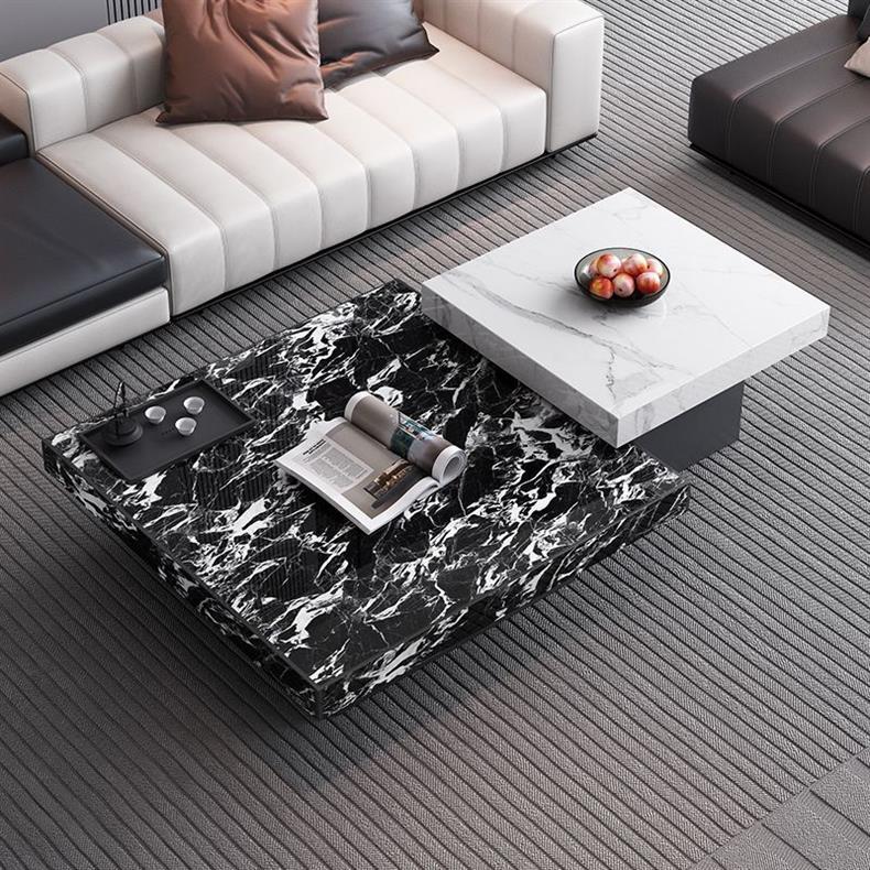 Итальянский минималистичный квадратный журнальный столик из сланца, комбинированный светлый роскошный журнальный столик для маленькой квартиры, гостиной, дома, подвесной высокий и низкий мраморный журнальный столик