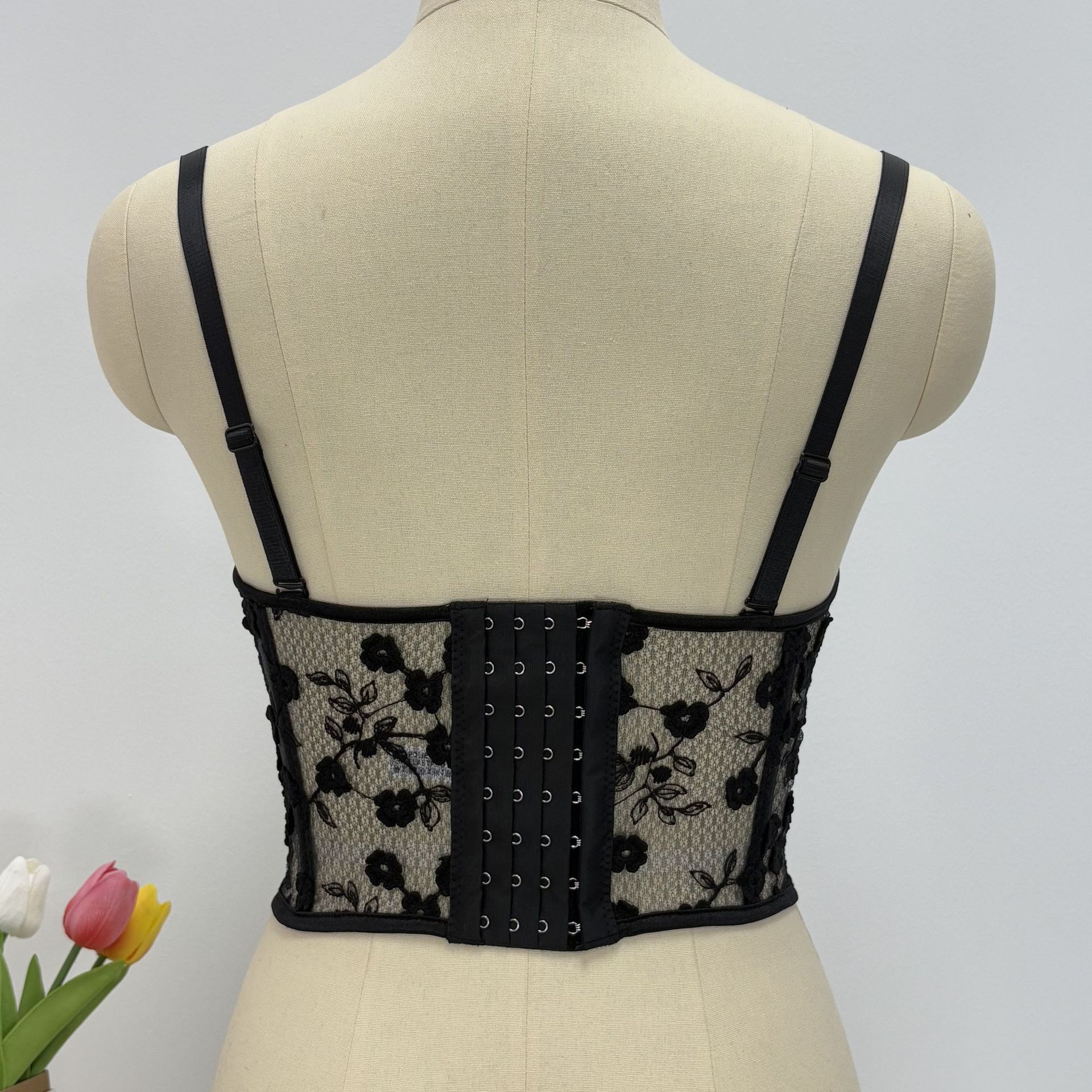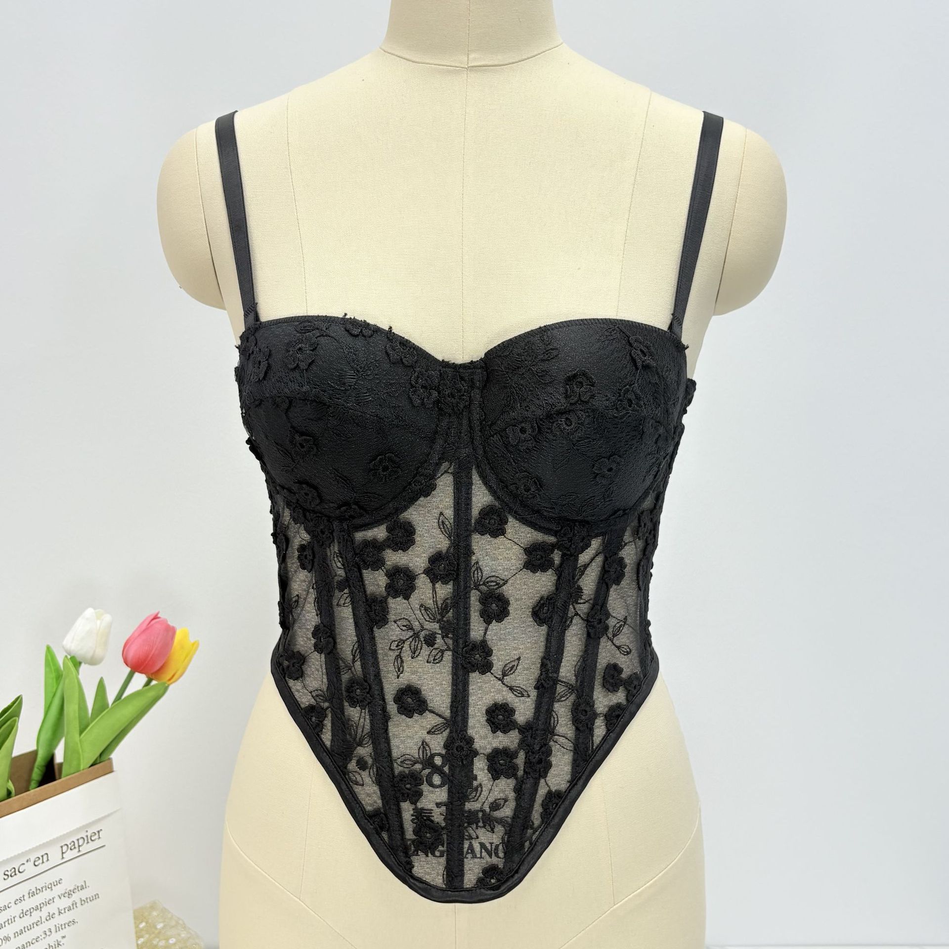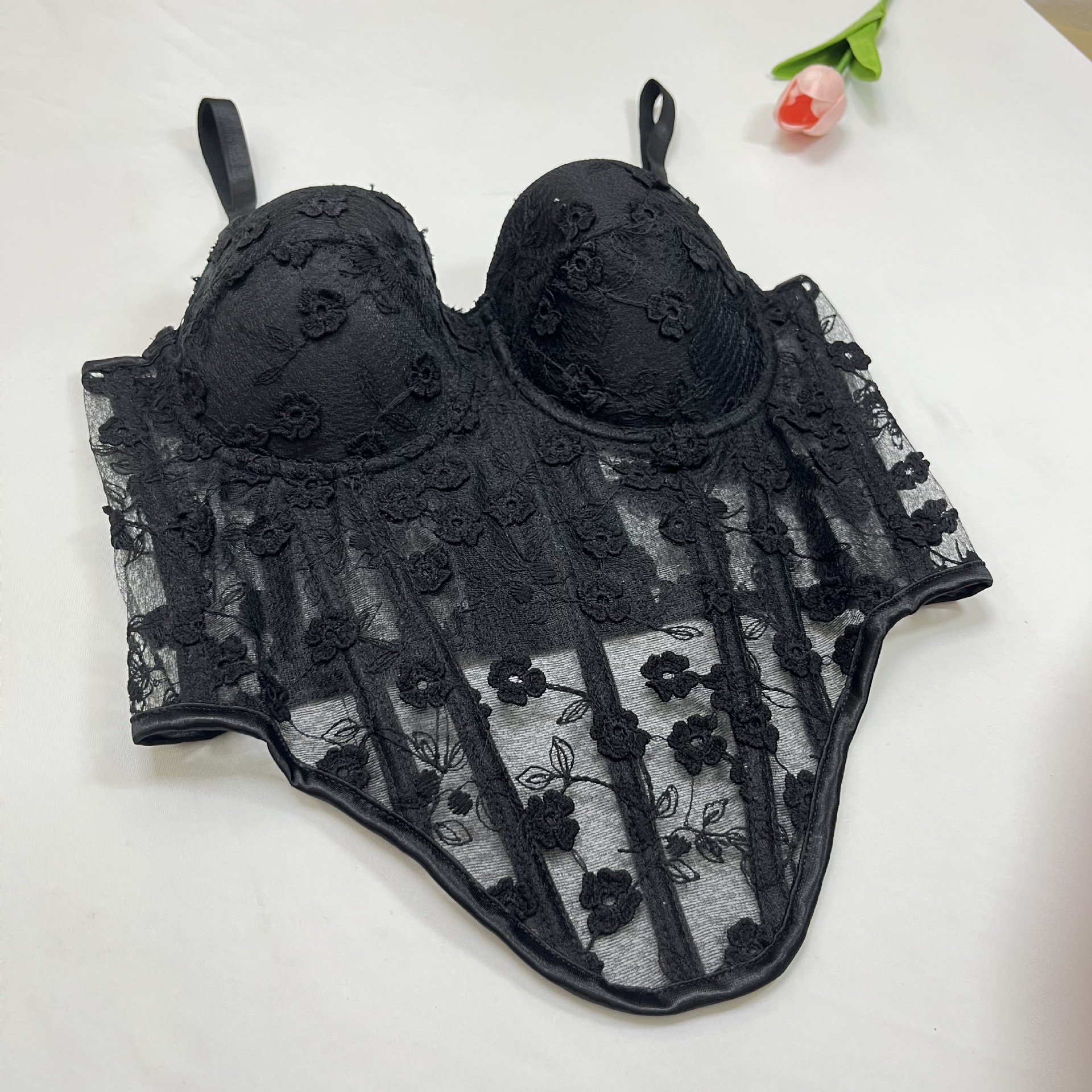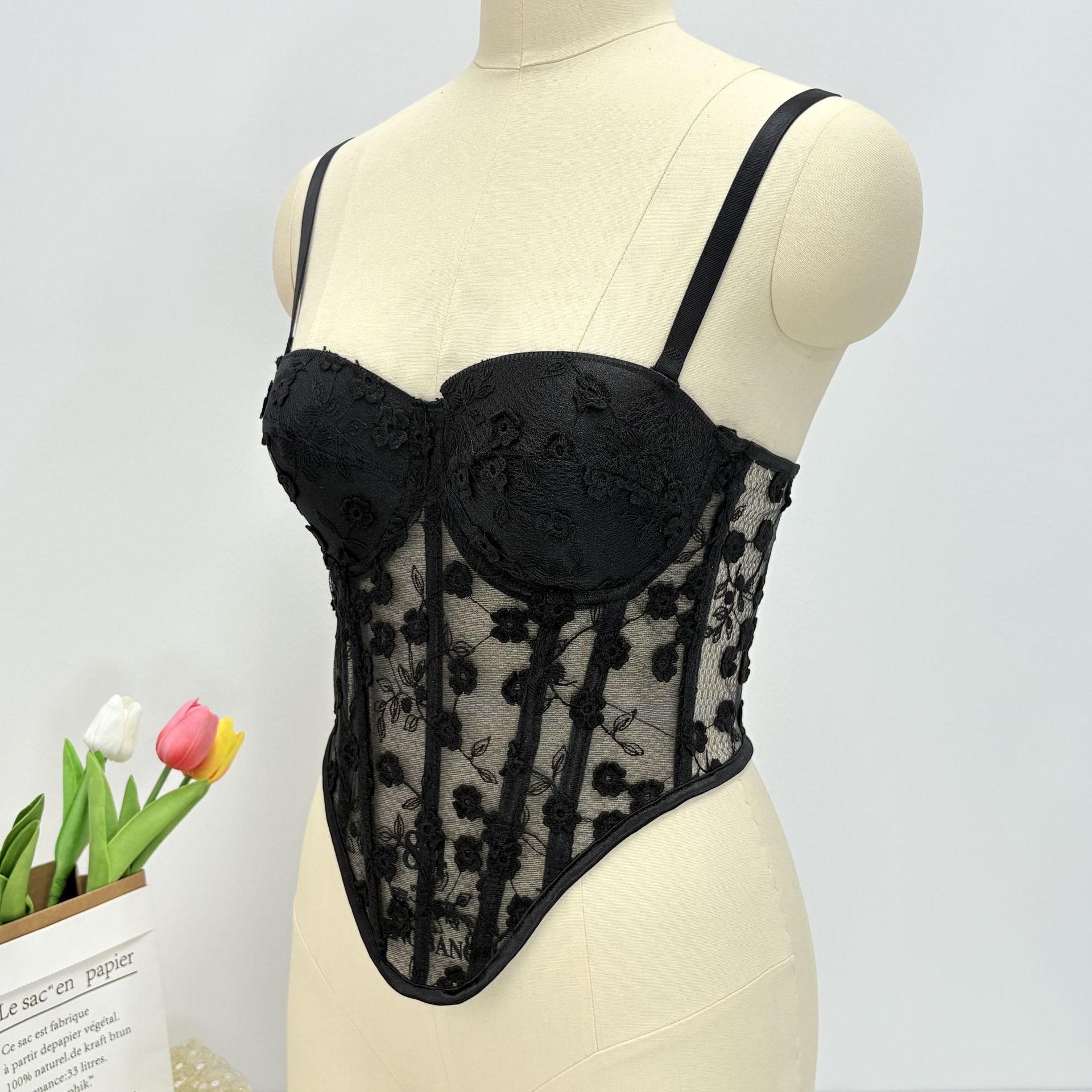 Кружевной корсет-топ с вышивкой в виде цветочного узора и сетчатыми вставками в европейском и американском стиле для ночных клубов