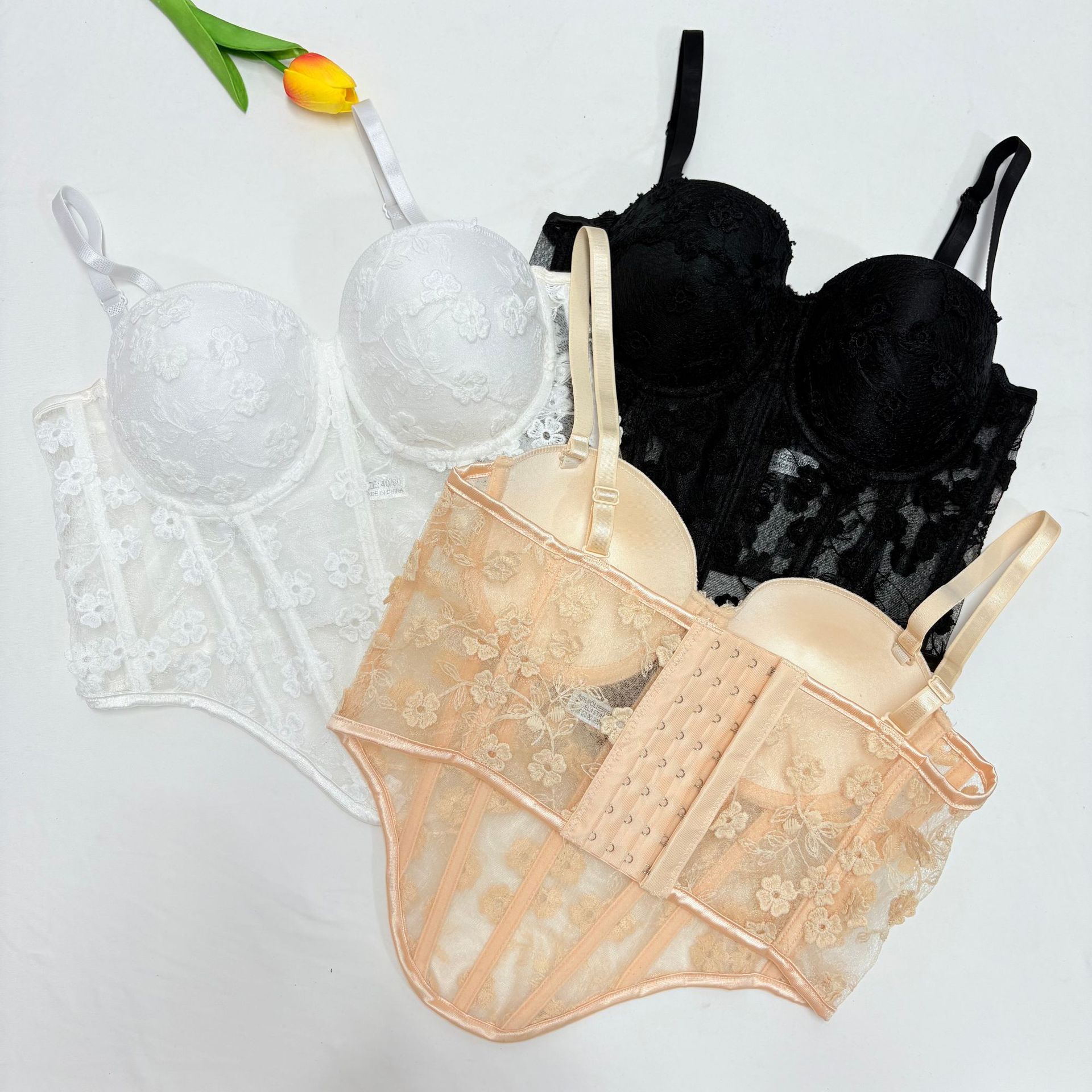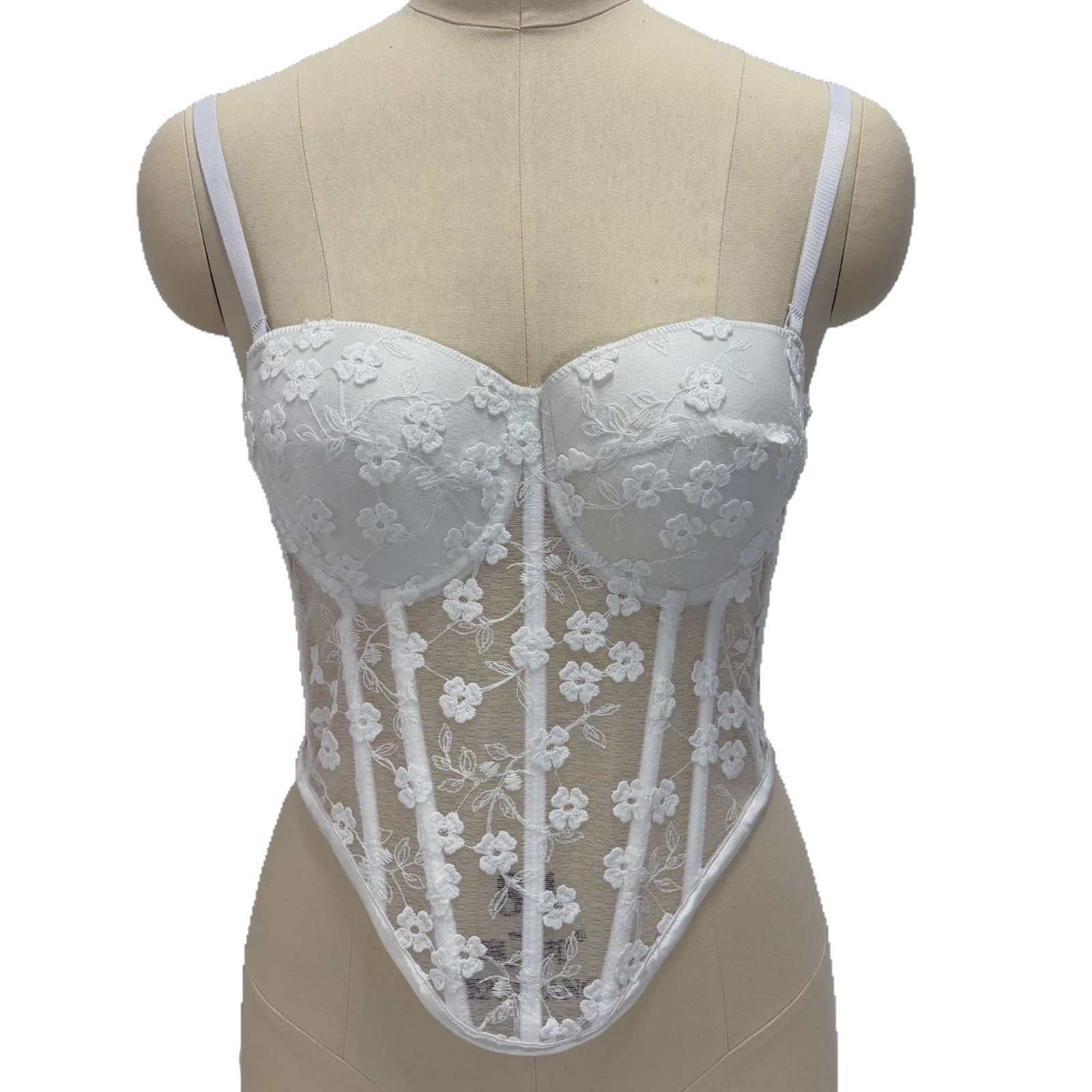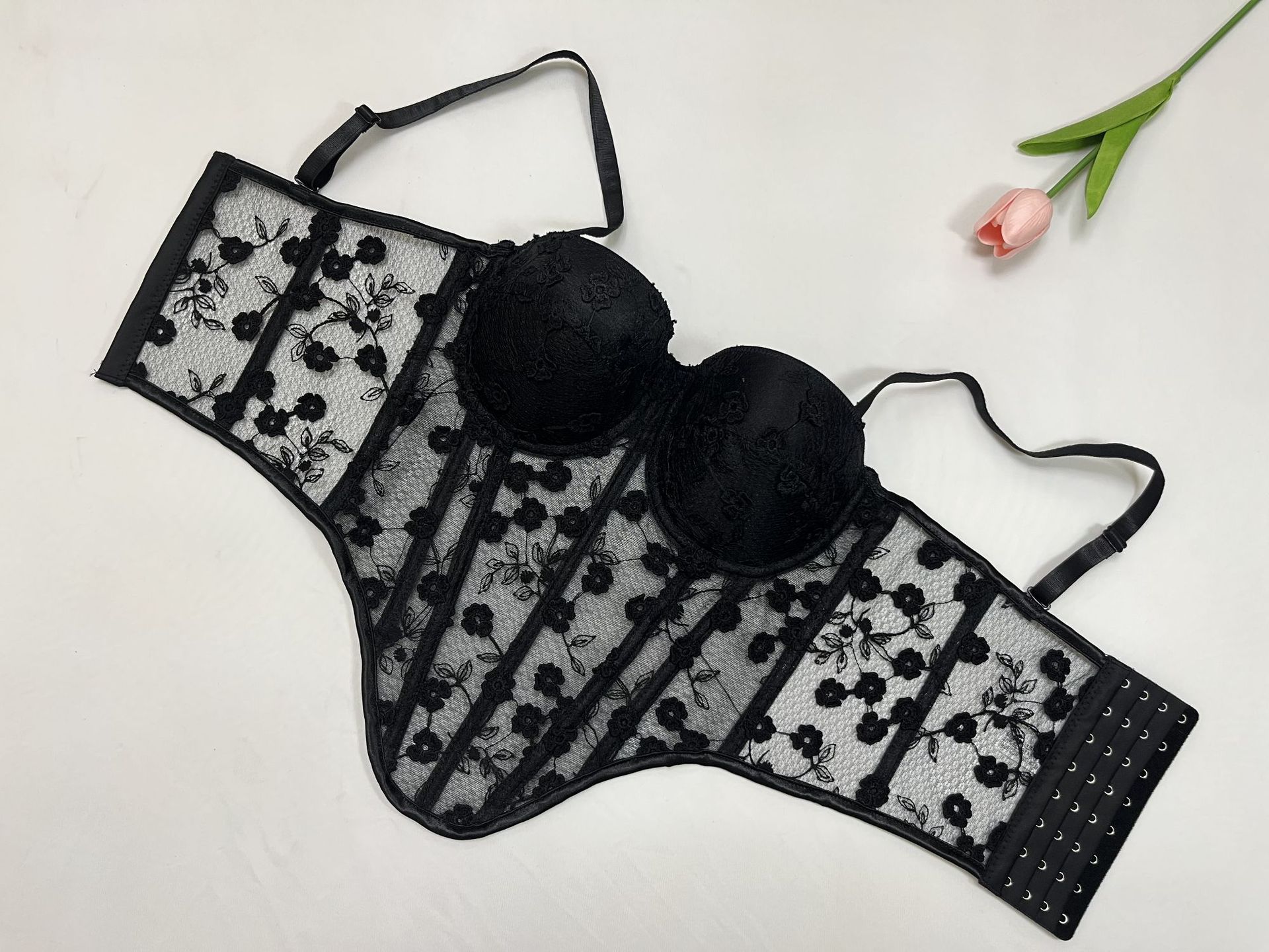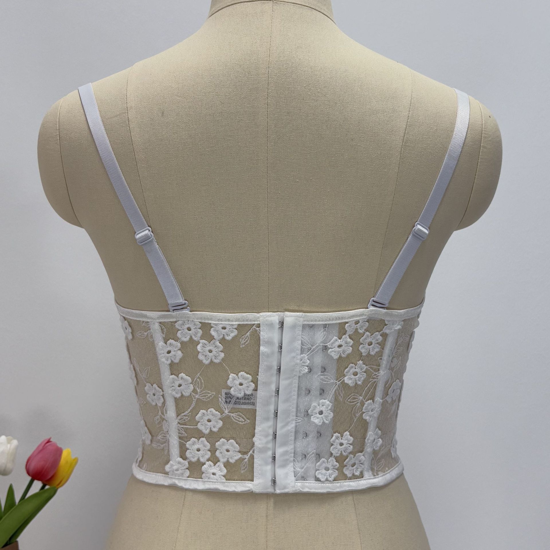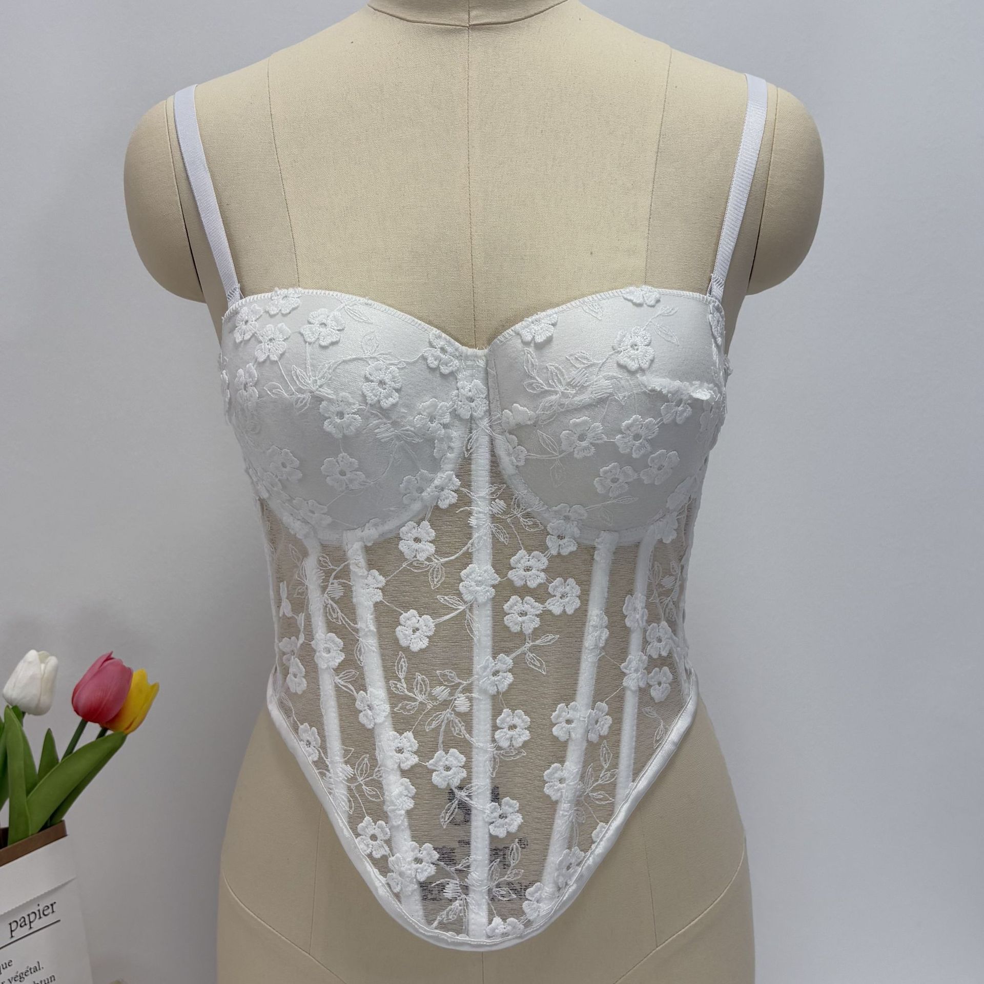 Кружевной корсет-топ с вышивкой в виде цветочного узора и сетчатыми вставками в европейском и американском стиле для ночных клубов