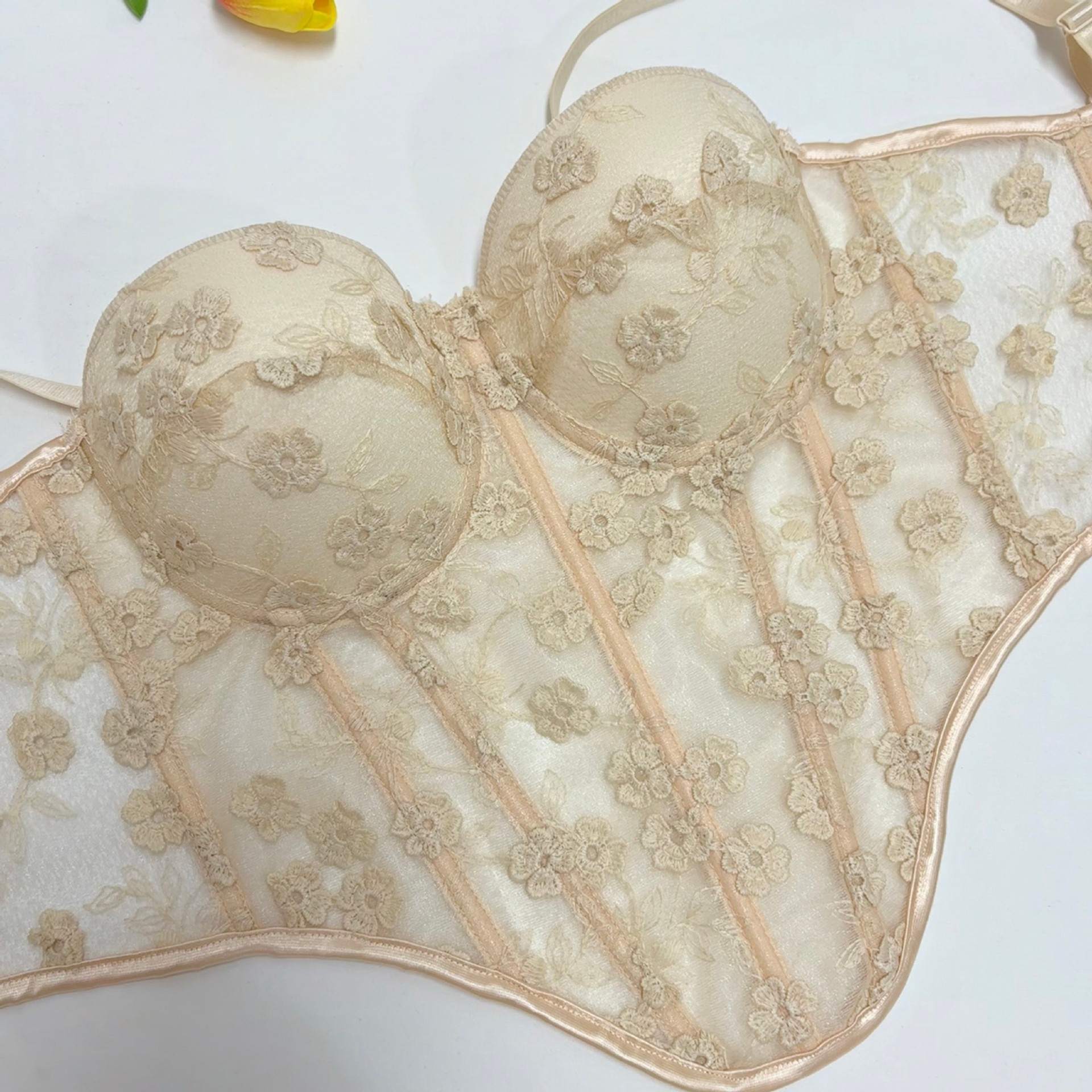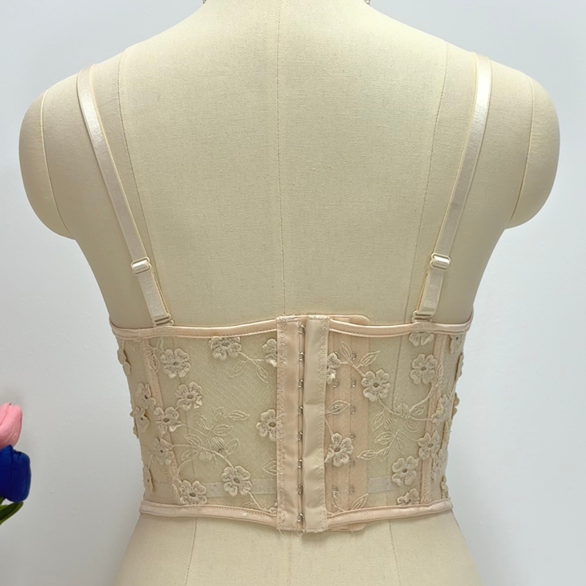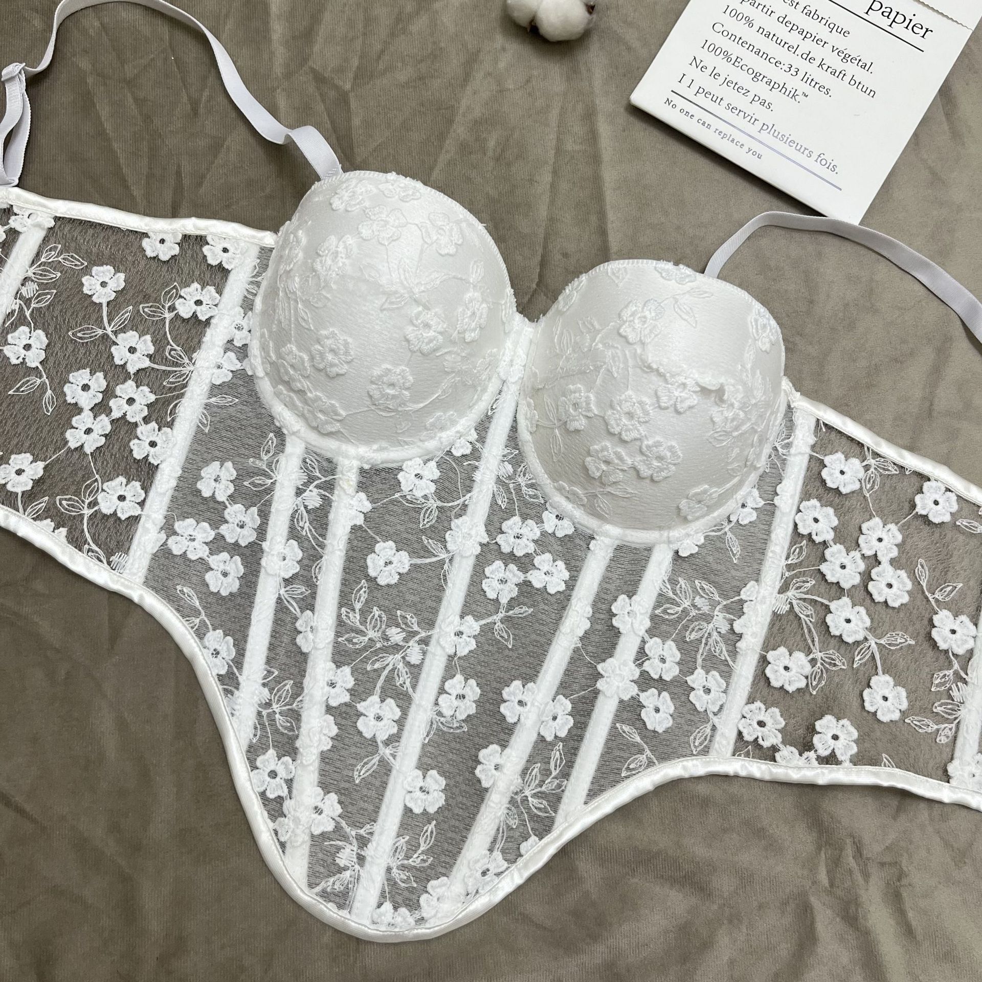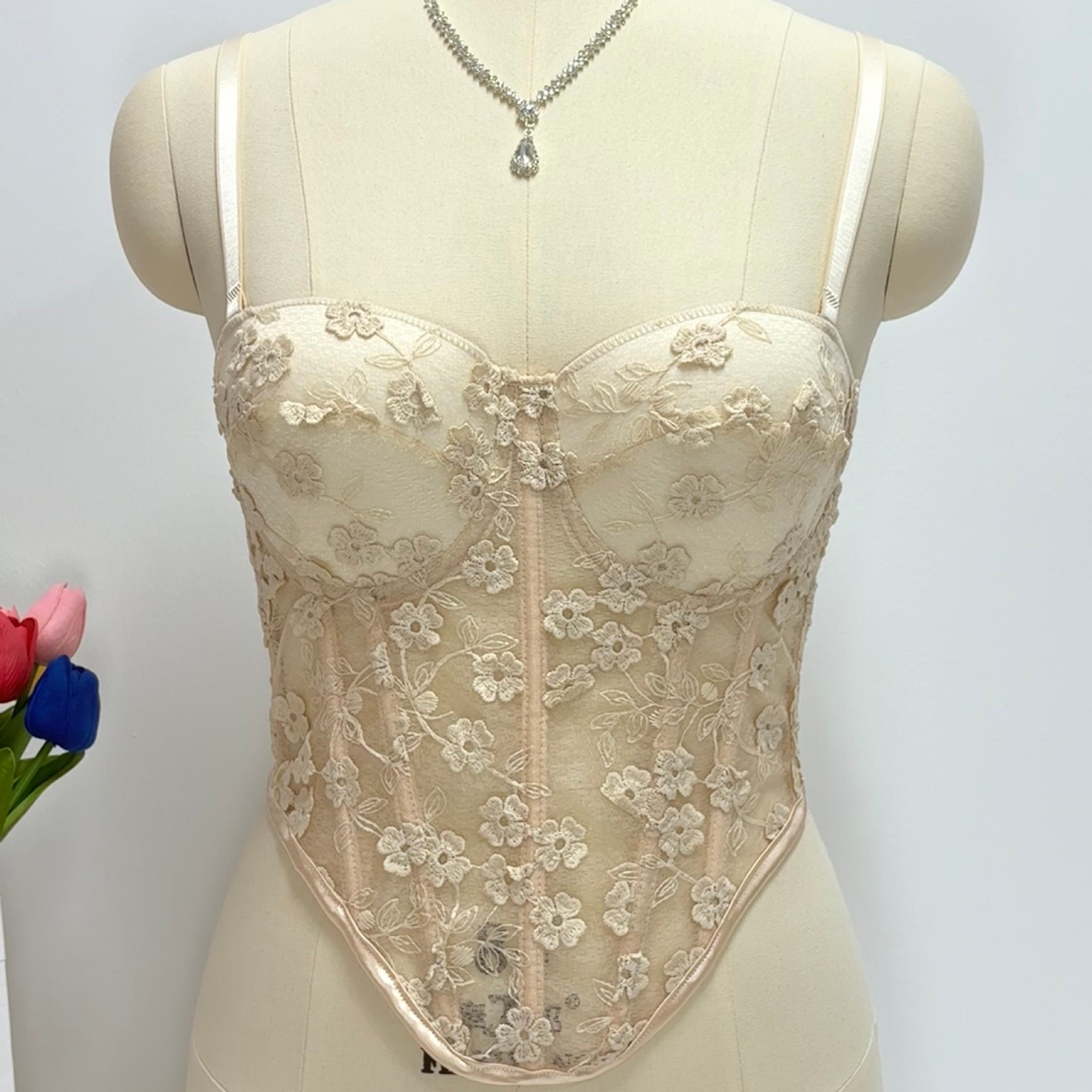 Кружевной корсет-топ с вышивкой в виде цветочного узора и сетчатыми вставками в европейском и американском стиле для ночных клубов