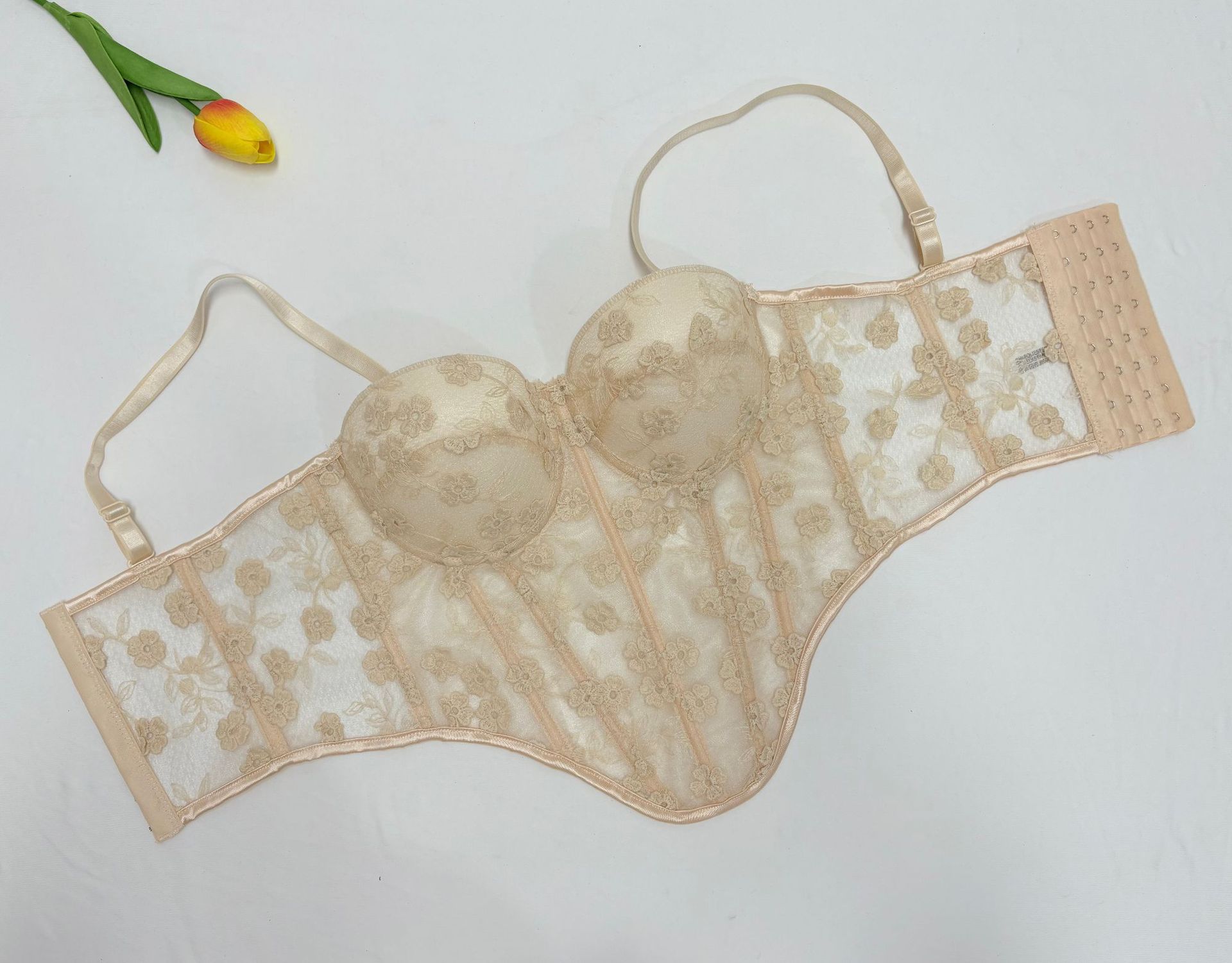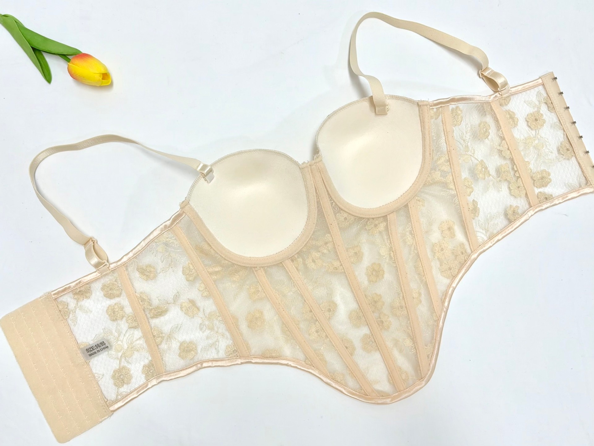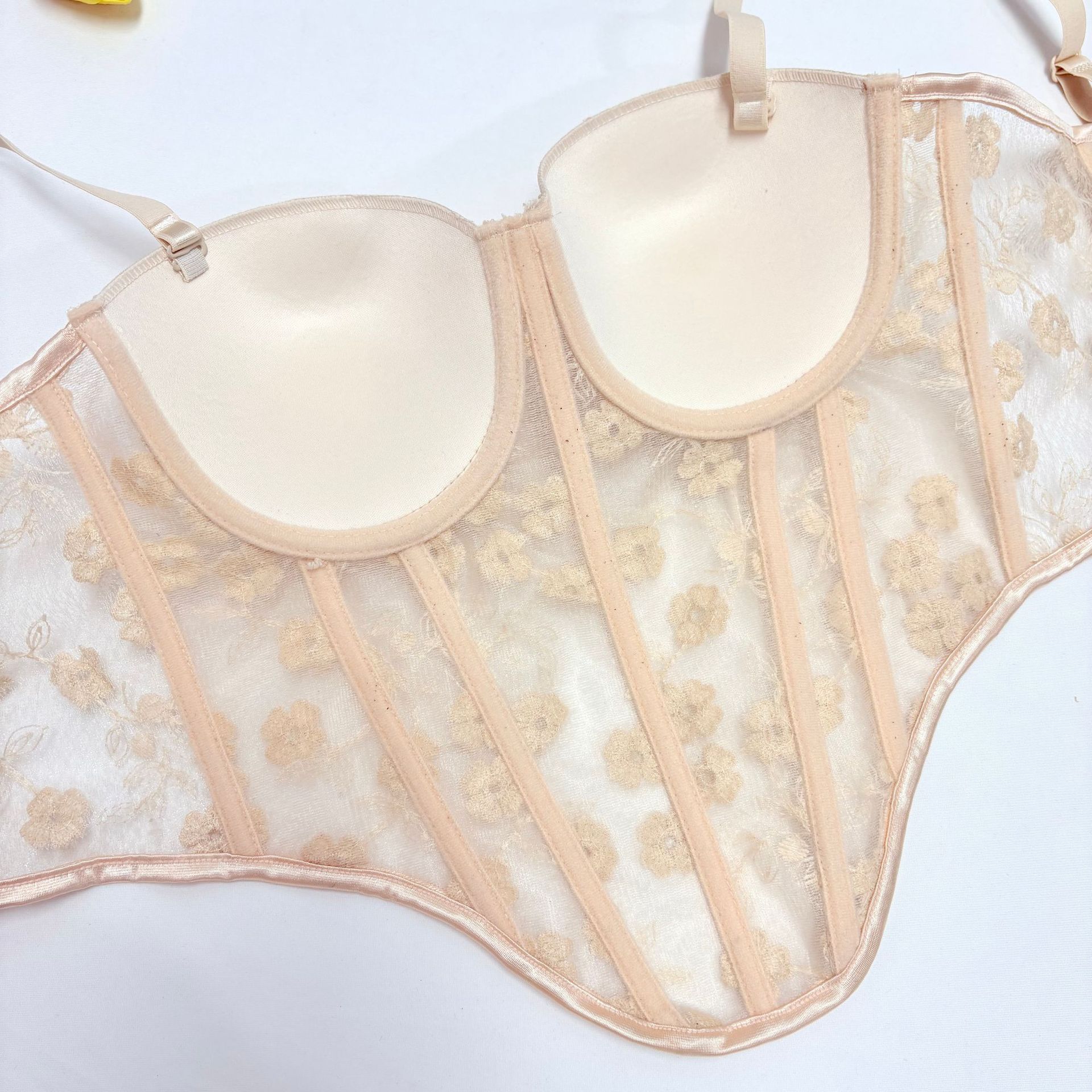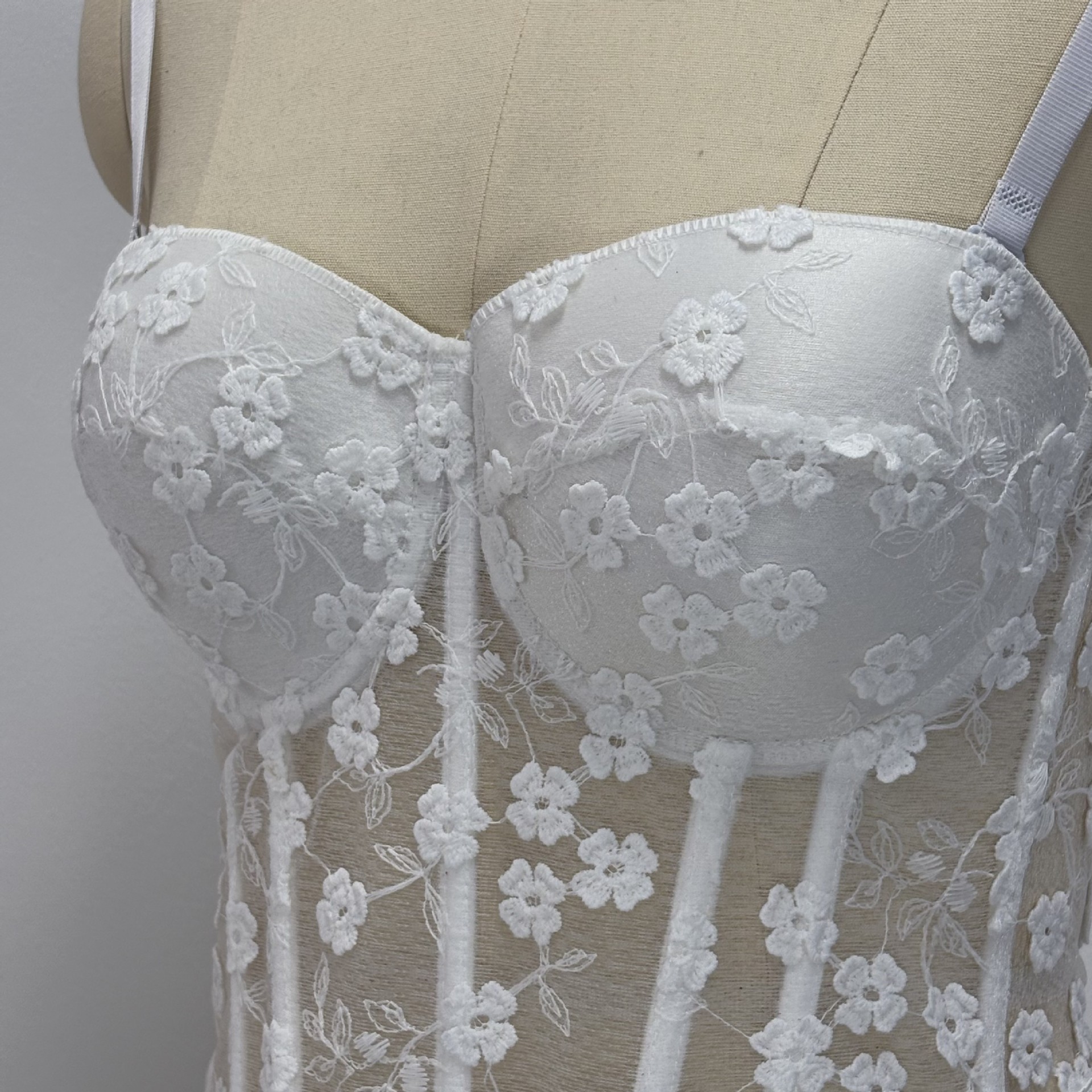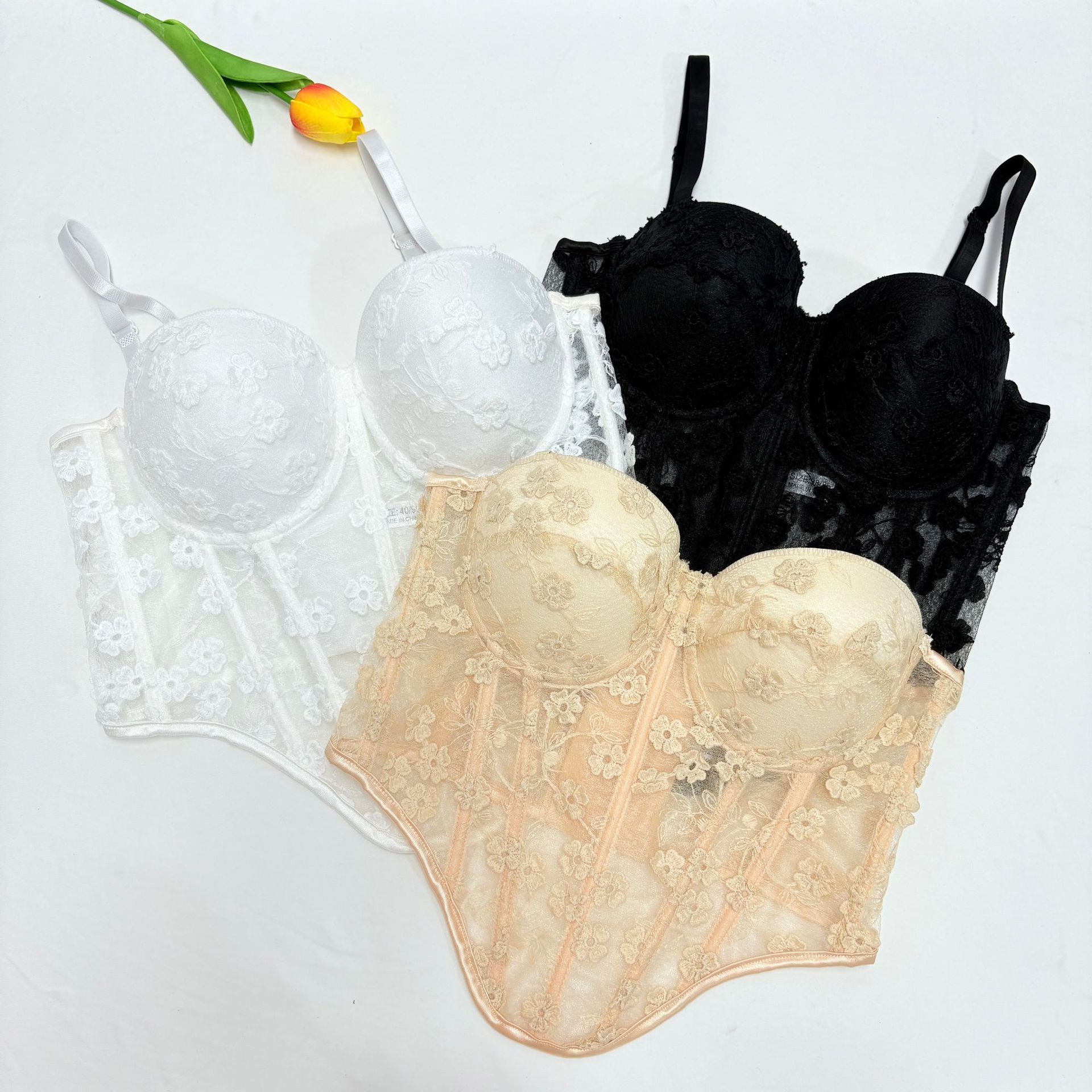 Кружевной корсет-топ с вышивкой в виде цветочного узора и сетчатыми вставками в европейском и американском стиле для ночных клубов