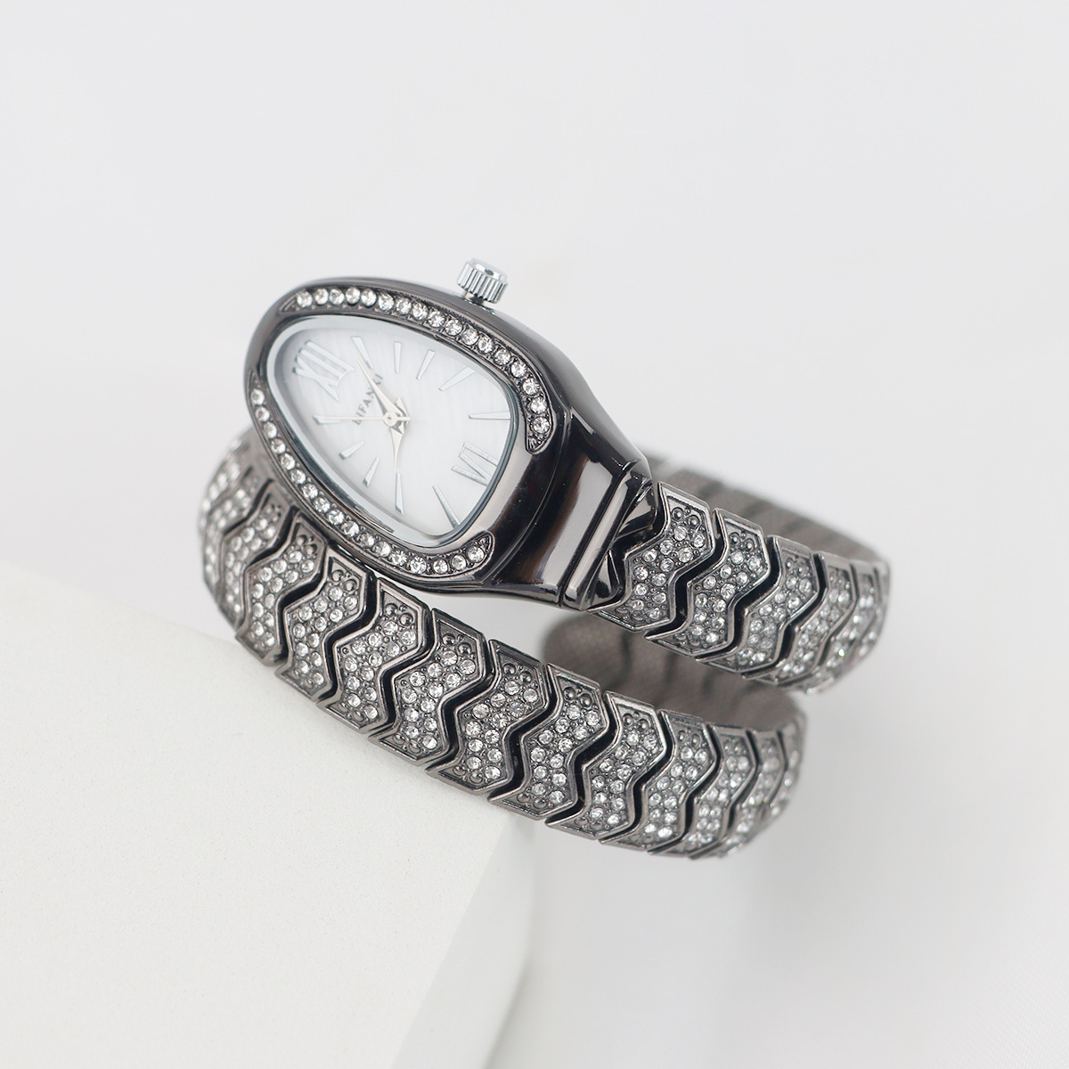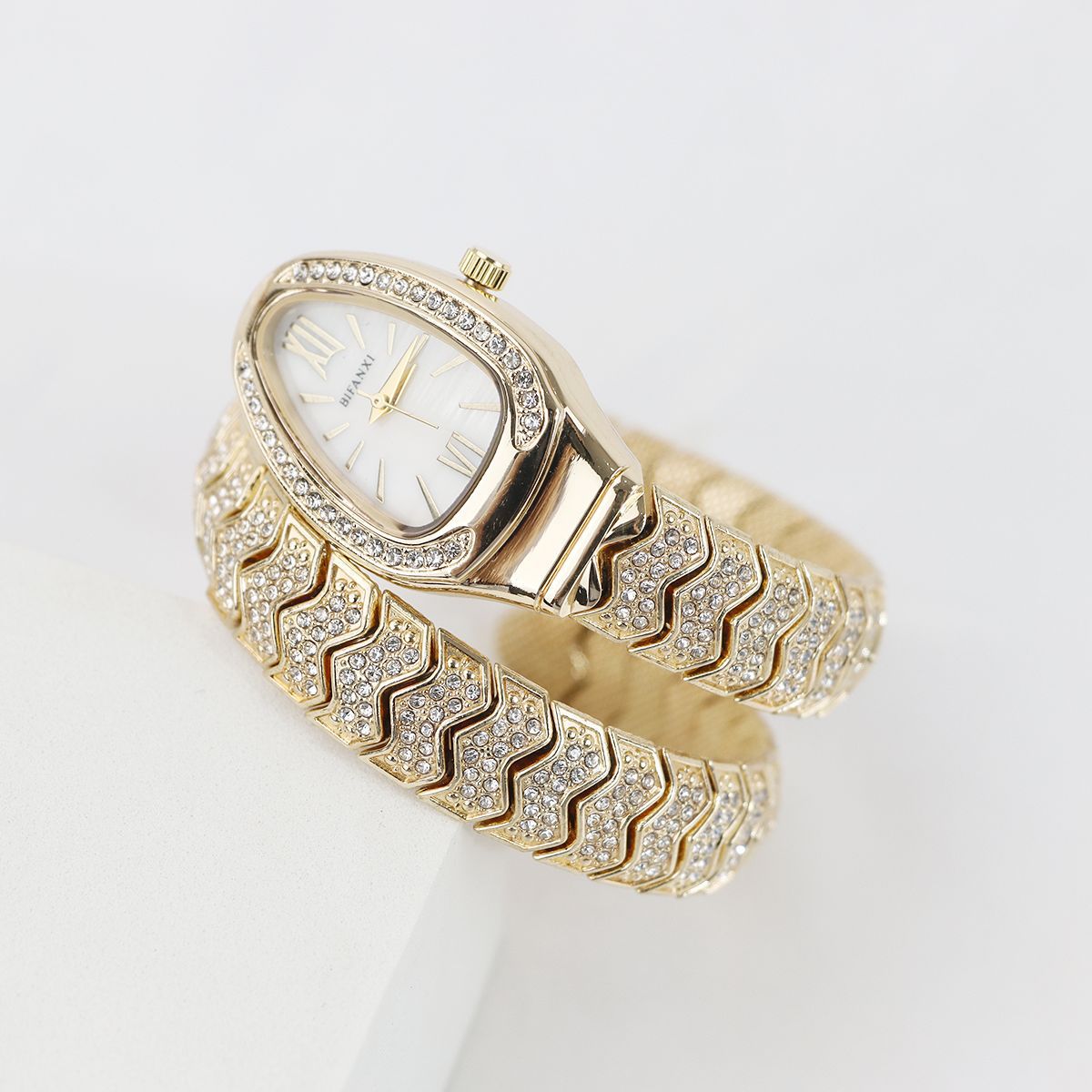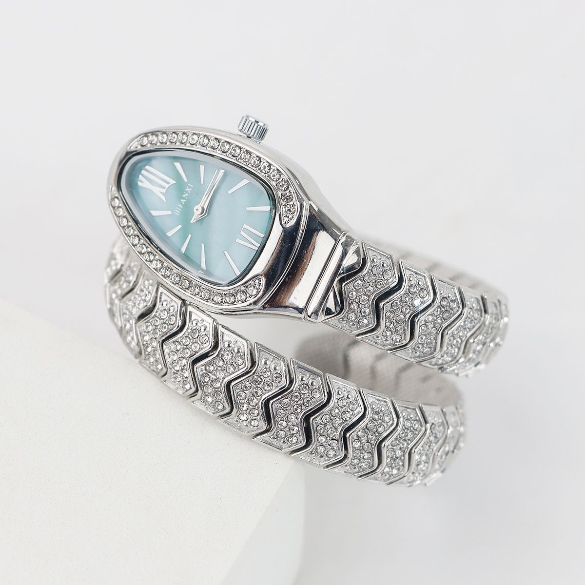 Трансграничные часы в форме змеи с бриллиантами, ювелирные изделия в виде браслета, модные и универсальные легкие роскошные нишевые кварцевые часы с маленьким циферблатом, инкрустированные бриллиантами