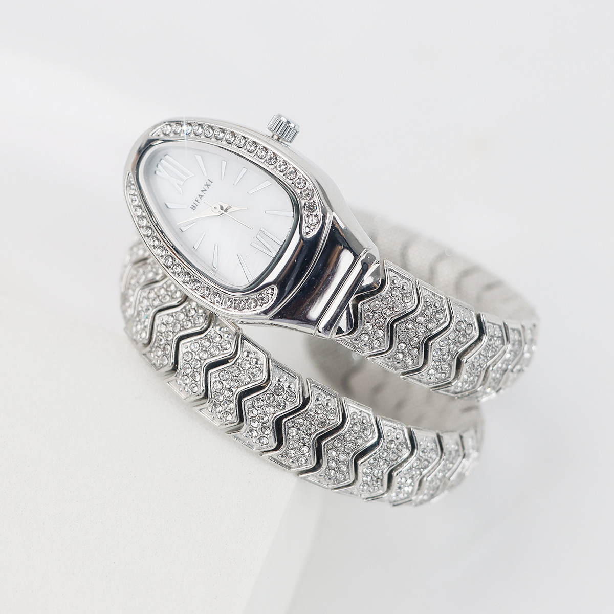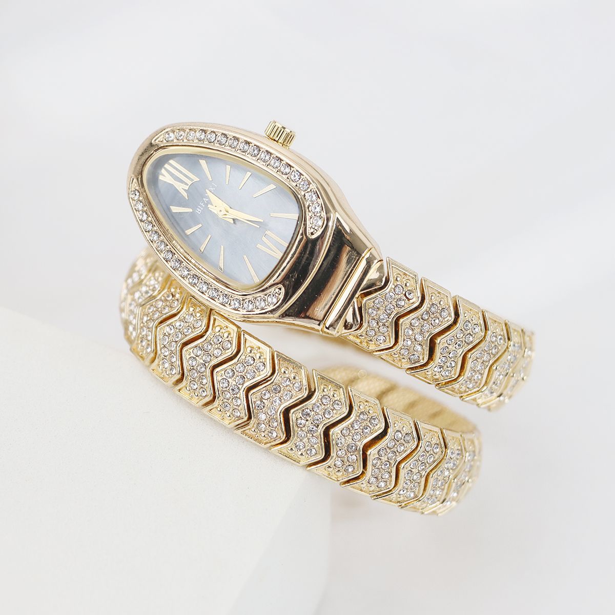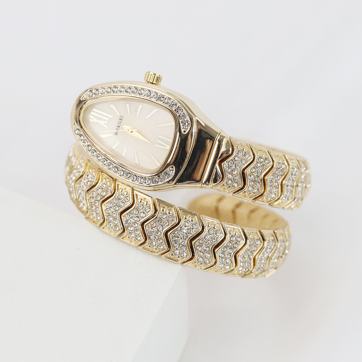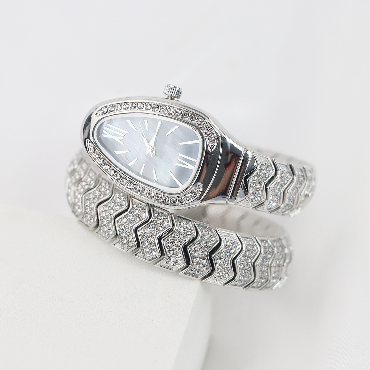 Трансграничные часы в форме змеи с бриллиантами, ювелирные изделия в виде браслета, модные и универсальные легкие роскошные нишевые кварцевые часы с маленьким циферблатом, инкрустированные бриллиантами