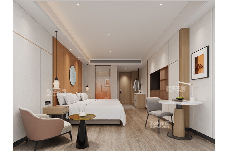 Полный комплект гостиничной мебели, изготовленный и доставленный все в одном, апартаменты B&B, гостиничный диван, круглый прикроватный столик, производитель мебели для гостевых комнат.