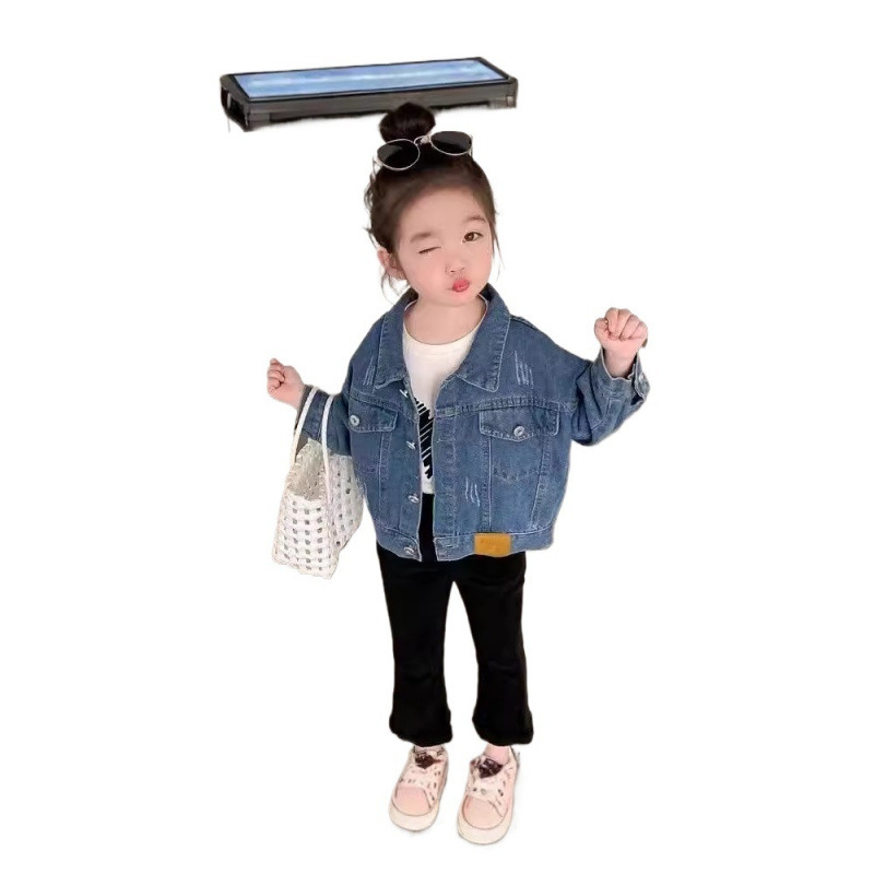 Верхняя одежда для девочек, новинка 2025 года, детские повседневные топы, маленькая детская одежда с короткими рукавами, модный кардиган для малышей, весна и осень, синий хлопок