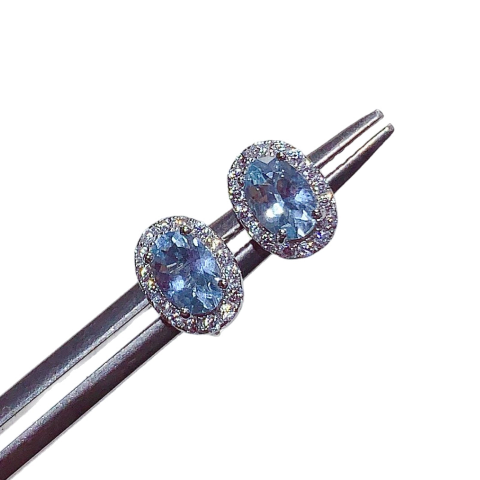Серьги-пусеты с аквамарином из серебра 925 пробы.