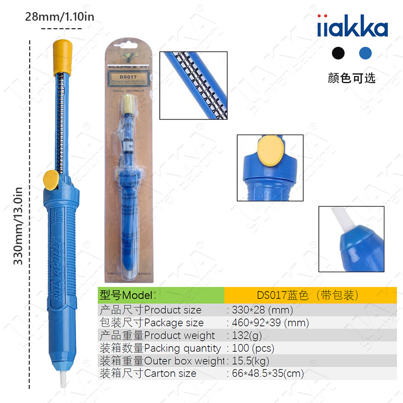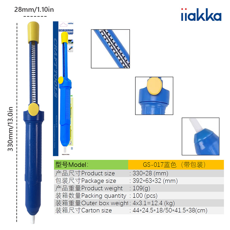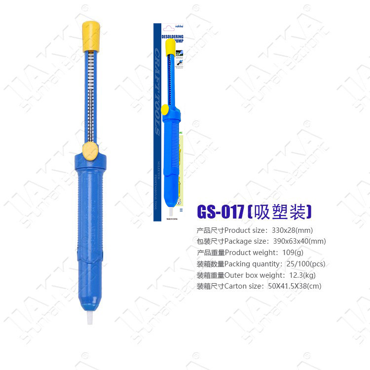 Трансграничный инструмент для удаления припоя GS-017: синий ручной паяльный насос, сверхмощный отсос для расплава припоя
