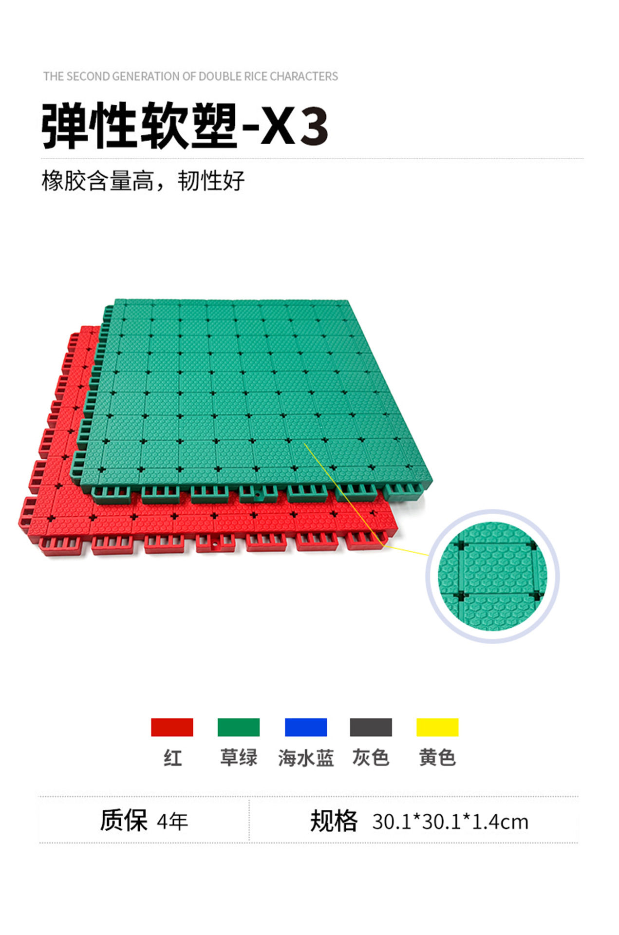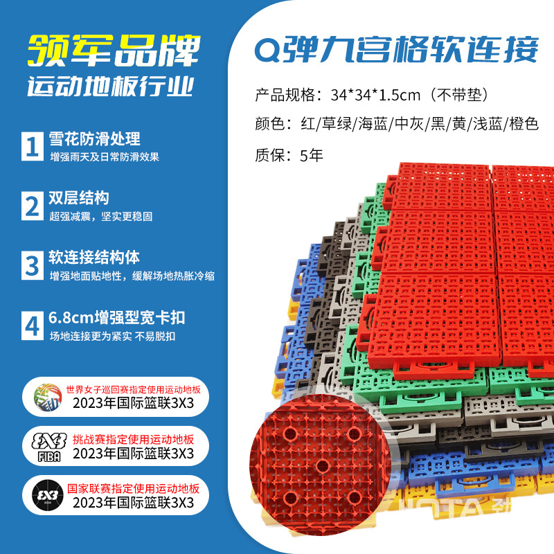 Q-эластичная сетка для удачи [широкая ребристая конструкция для улучшения противоскользящих свойств]; Мягкое соединение Q-bounce с девятью квадратами [5-летняя гарантия, экономичный выбор для баскетбольных площадок]; T5 [Содержание эластомера >30%, корпус доски мягкий, более износостойкий и нескользящий]; Эластичная подушка Clover [резиновая амортизация, высокоэффективная амортизация]; Мягкий пластик X3, улучшенная модель [противоскользящая амортизация, поглощение ударов >20%]; Мягкий пластик X7 [Рекомендуемый пол для международных соревнований]; T3 [Общие спортивные площадки, такие как начальные и средние школы, детские сады и т. д.]; Двухслойное мягкое соединение N53 [36 несущих блока для решения проблемы выпуклости участка]; Двухслойное мягкое соединение «Адмиралтейский крейсер» — с подушечками [64 эластичные подушечки из ТПУ, сильная амортизация на площадке]; Мягкий пластик T1 [противоскользящий и снижает риск падения]; Q-bounce мягкая связь с девятиквадратной сеткой (без пружинной прокладки); Двухслойная базовая модель в форме риса [спортивные площадки средней и начальной школы с низкой интенсивностью]; Двухслойный сверхпрочный куб [Высокоэффективные тренировки для университетов и спортивных парков]; Двухребристый в форме риса [баскетбольный, волейбольный и бадминтонный стадион начальной школы]; Xiaoshuangmi [рекомендуется для детских садов, центров досуга и детских развлечений]; Dream Star [Рекомендуемые товары для детских площадок]; Q-bounce сетки на удачу [средние школы, средние школы, детские сады, предприятия и учреждения]; Двухслойная эластичная подушка для прицеливания [высокоинтенсивные виды спорта в спортивных парках, университетах и колледжах]; Коврик для бадминтона Q-Bounce Star; Эластичная накладка для колес Ferris Wheel [Резиновая накладка для пола для бадминтона]; Обновление коврика Snowflake [резиновый коврик для бадминтона]; Happy Double Meter (без коврика) [Подходит для спортивных площадок с низкой интенсивностью в средних и начальных школах]; Двухслойный тележка (без коврика) [стандартная интенсивность для спортивных парков, университетов и колледжей]; Счастливый двойной рис (с подушечкой) [Детская площадка низкой интенсивности для начальной и средней школы]; Двухслойное мягкое соединение в форме риса [спортивные площадки средней и начальной школы с низкой интенсивностью]; Противоскользящий пол [рекомендуется для бассейнов и ванных комнат]; Благоприятный двойной рис [Высокоинтенсивные виды спорта для университетов и спортивных парков]