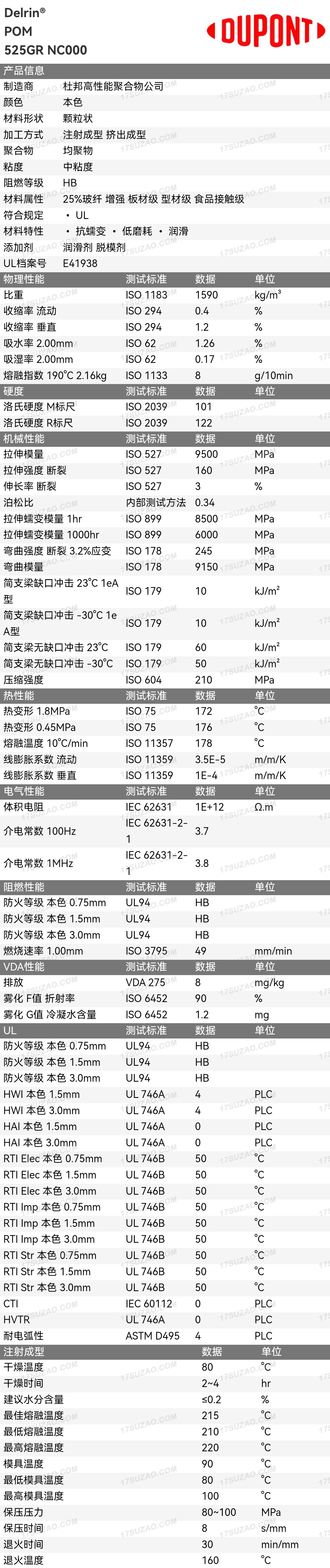 POM American DuPont 525GR, армированный волокном, 25% износостойкости, для литья под давлением, низкоизносный, самосмазывающийся пластиковый сырье