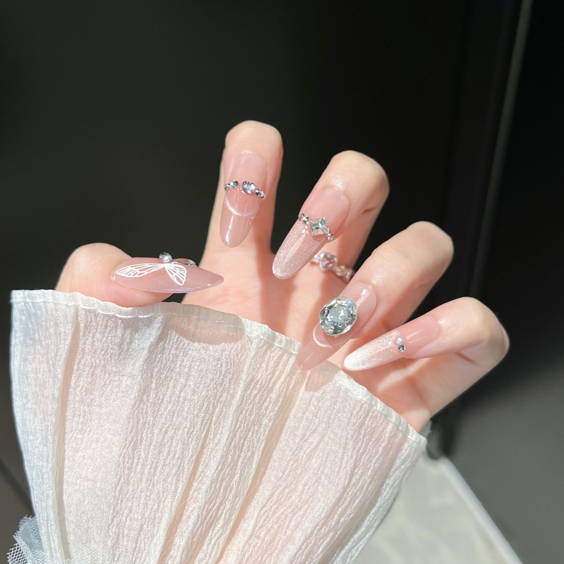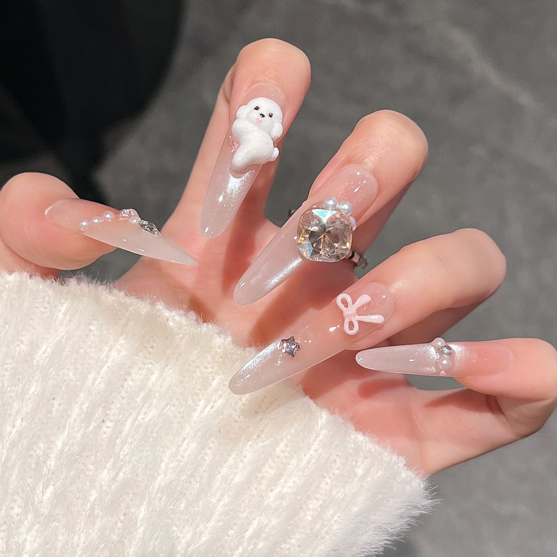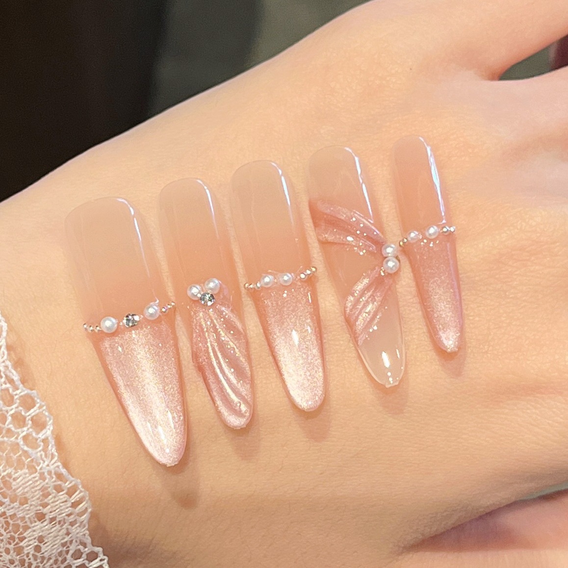 Искусственные ногти ручной работы в стиле «чистое желание», длинные французские ногти с эффектом «кошачий глаз», новогодний дизайн, готовые съемные накладные ногти оптом.