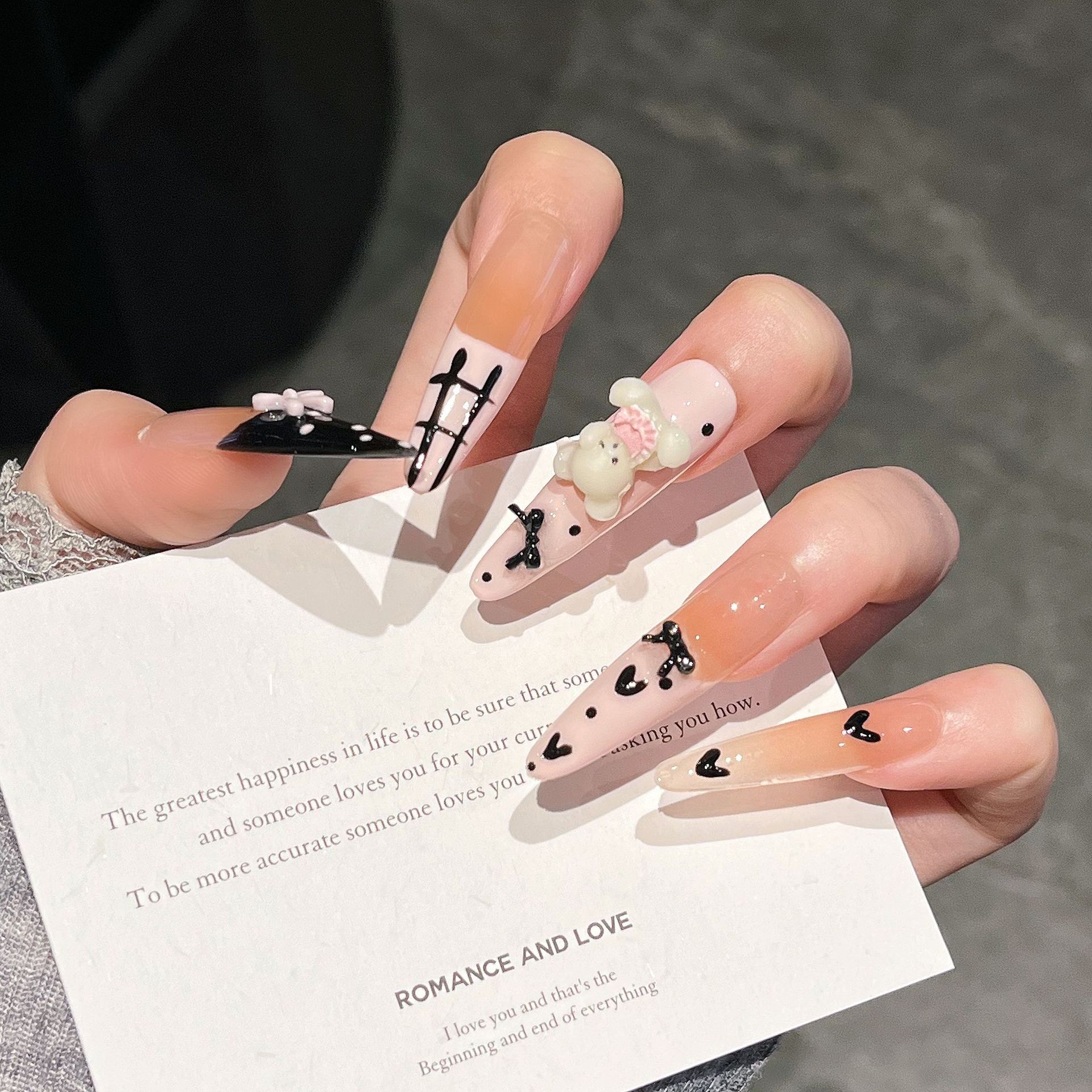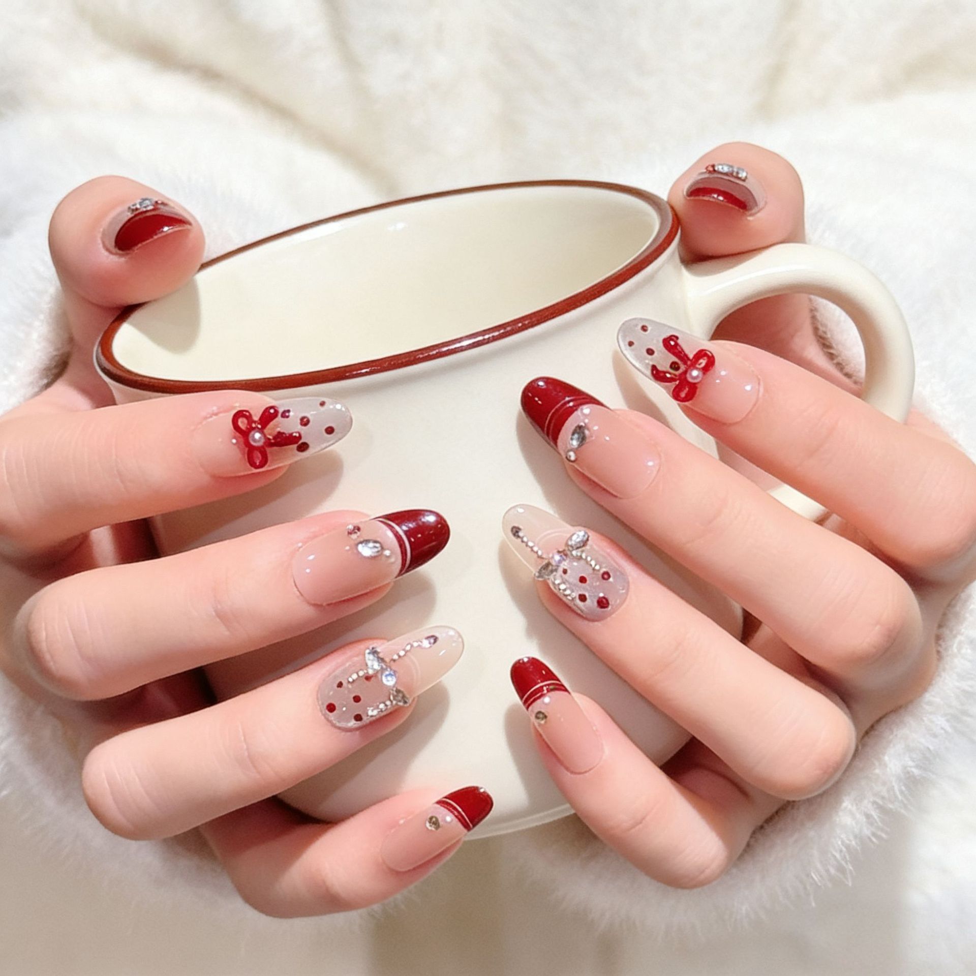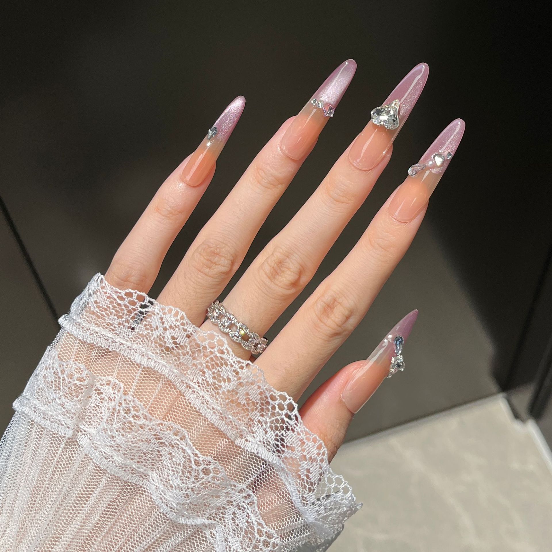 Искусственные ногти ручной работы в стиле «чистое желание», длинные французские ногти с эффектом «кошачий глаз», новогодний дизайн, готовые съемные накладные ногти оптом.