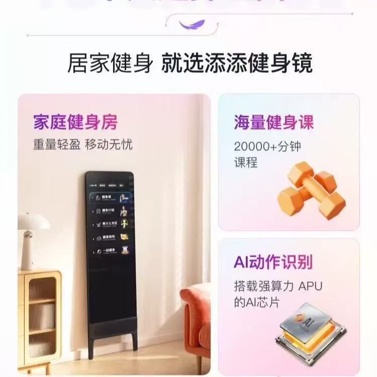 Умное фитнес-зеркало Xiaodu Tiantian S40: Волшебное зеркало для караоке, с датчиками движения, играми и ИИ для эффективного похудения и тренировок. Версия Enjoyment.