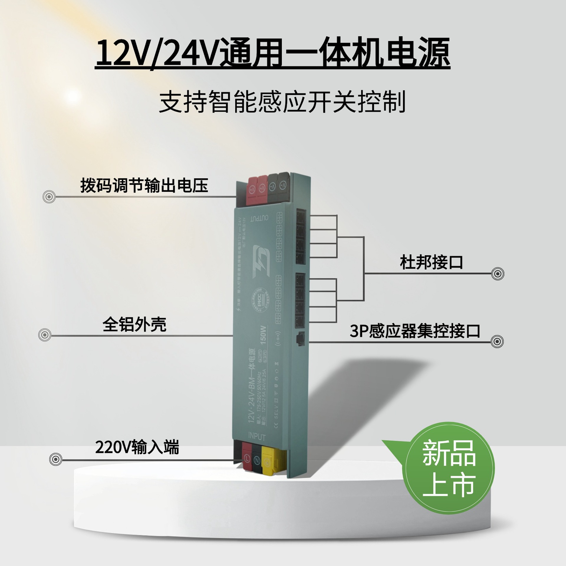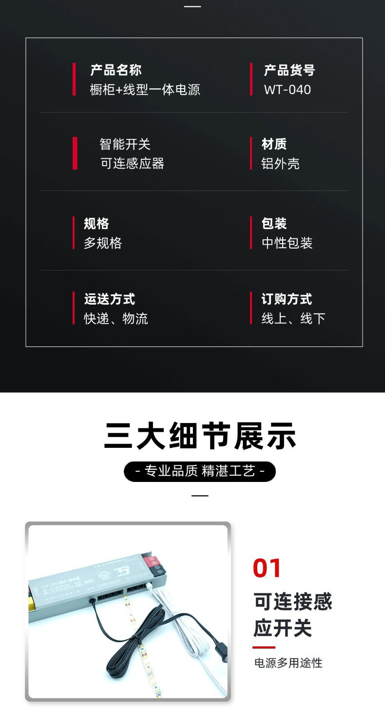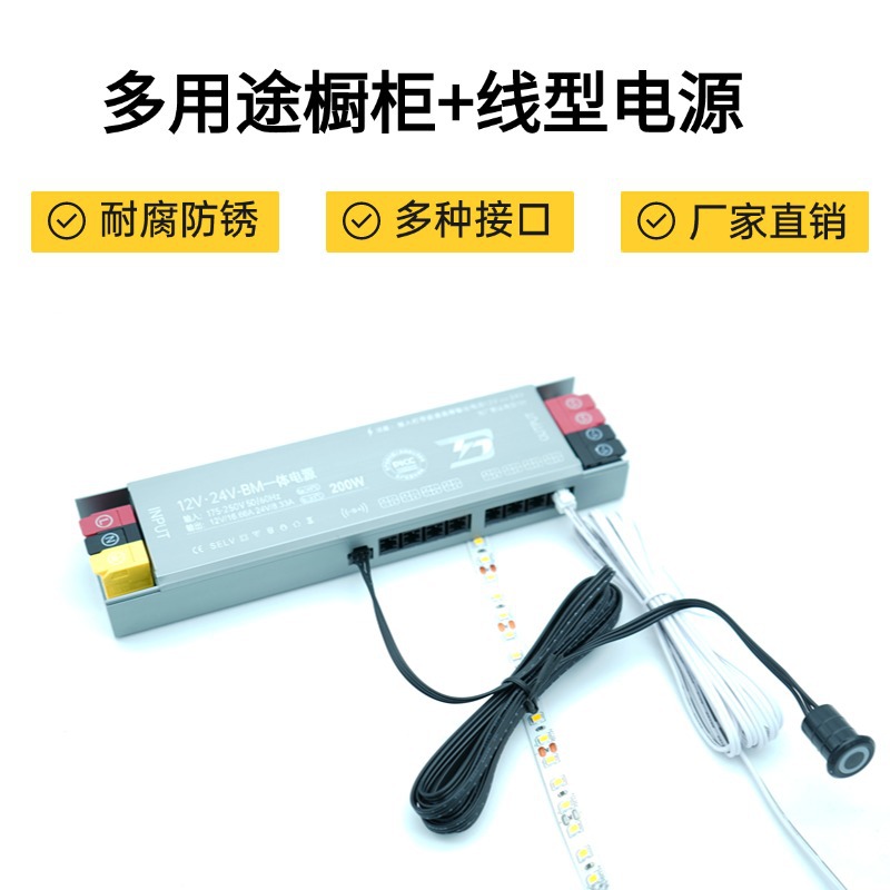 Новый светодиодный светильник для шкафа, блок питания 12 В, 24 В, встроенный универсальный линейный источник питания для привода света, переключение в один клик