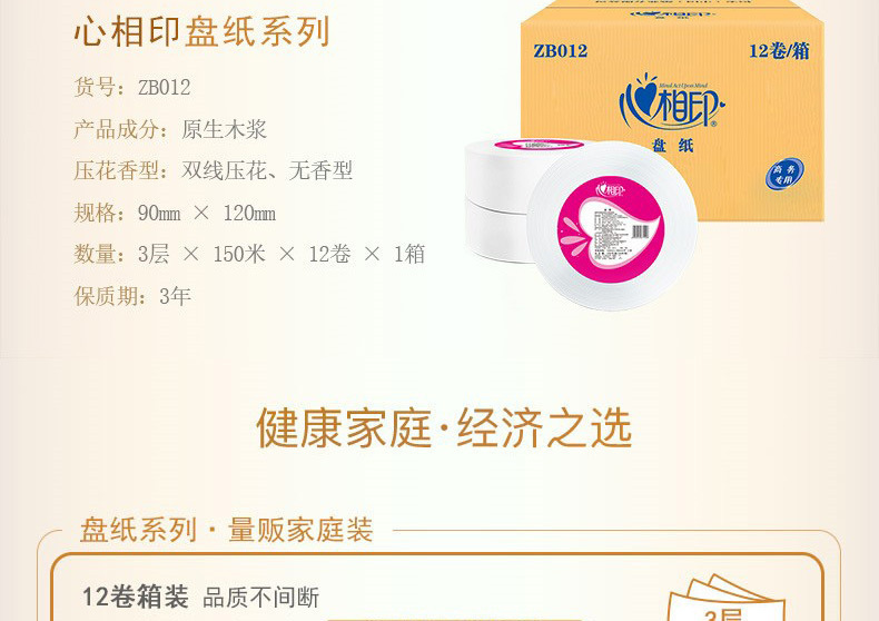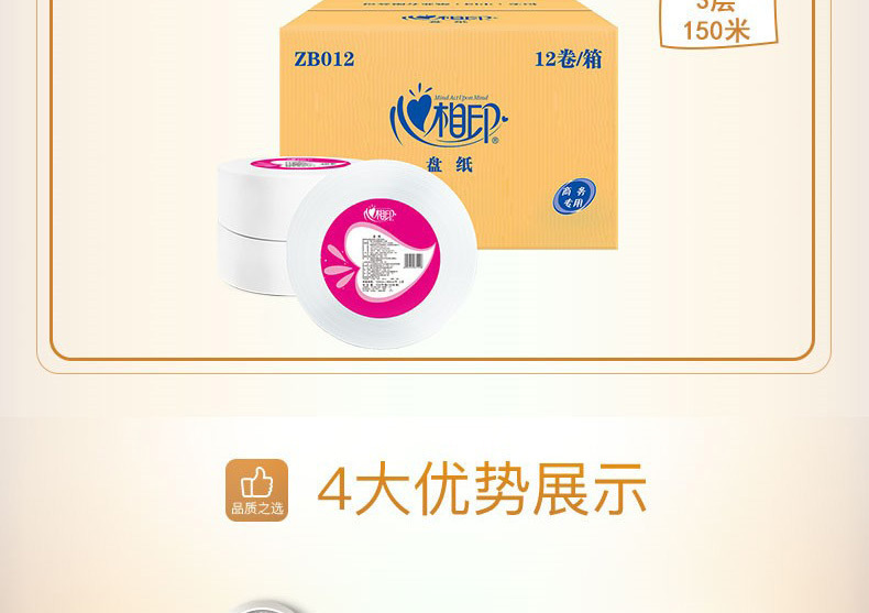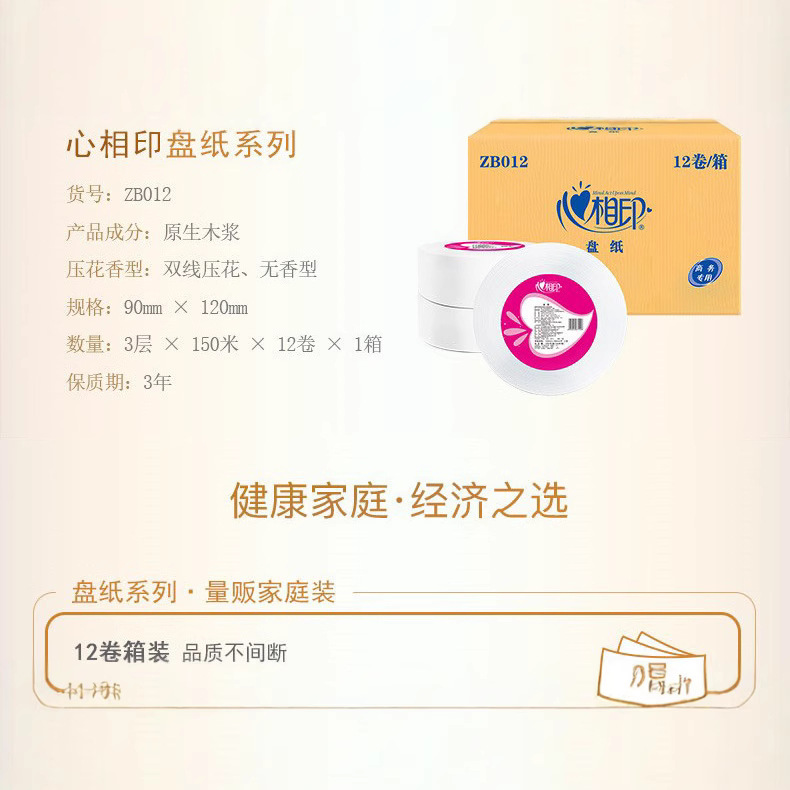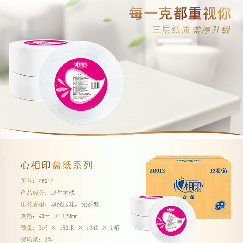 Большой рулон бумаги Xinxiangyin, 3-слойная, 150.12m рулона, туалетная бумага в полной коробке для коммерческого использования в компаниях, отелях и гостевых домах.