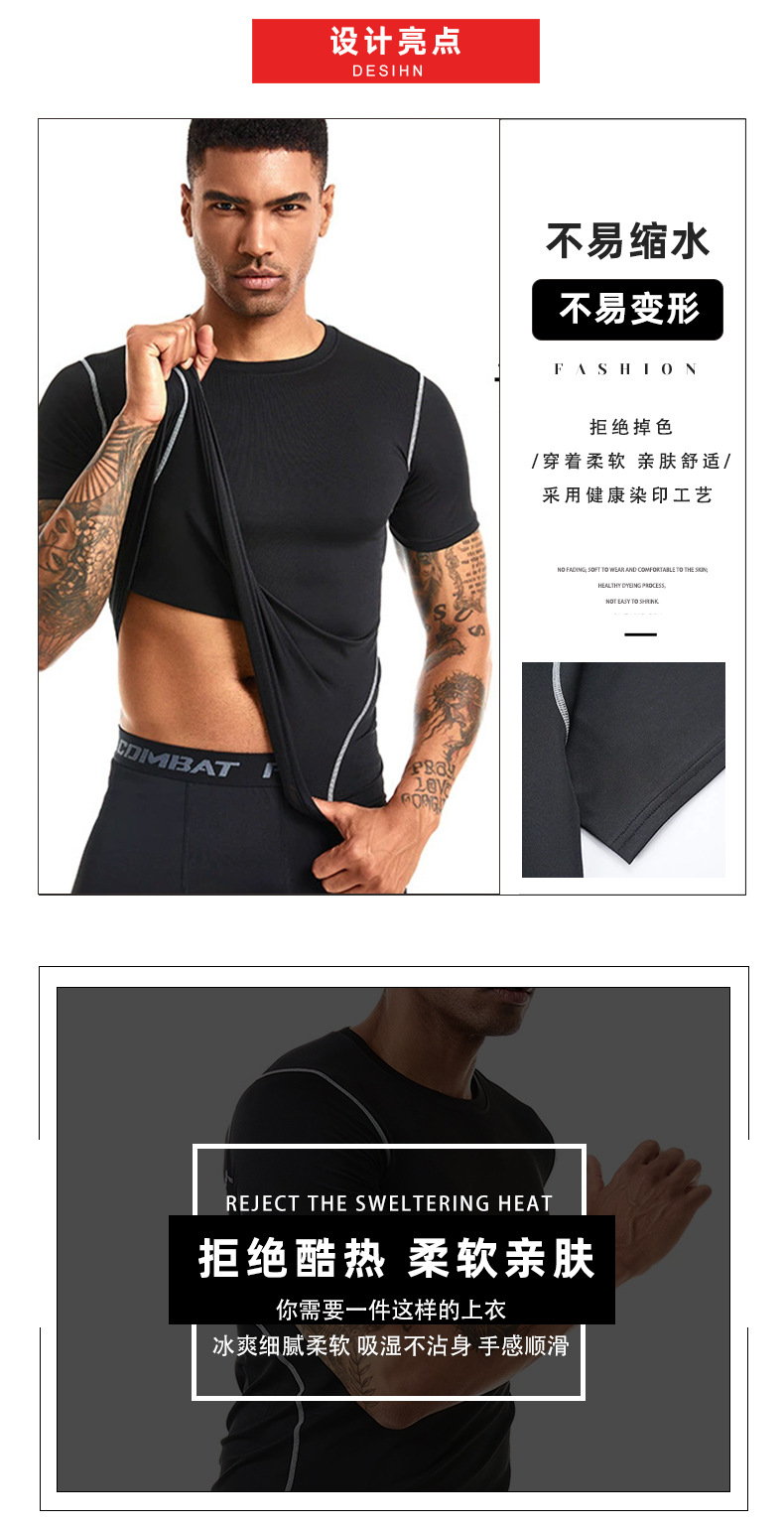 Повседневная футболка, облегающая быстросохнущая одежда с короткими рукавами, мужская одежда для фитнеса, баскетбольные виды спорта, легкая атлетика, спортивная тренировочная одежда на открытом воздухе.