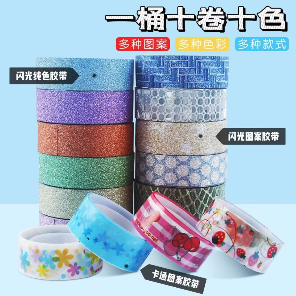 Красочная блестящая лента, креативная блестящая лента с золотым порошком, детская декоративная лента ручной работы «сделай сам», наклейки с героями мультфильмов