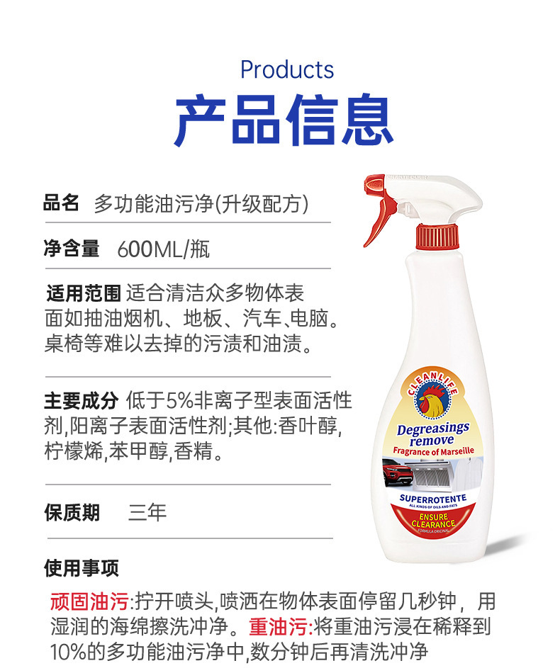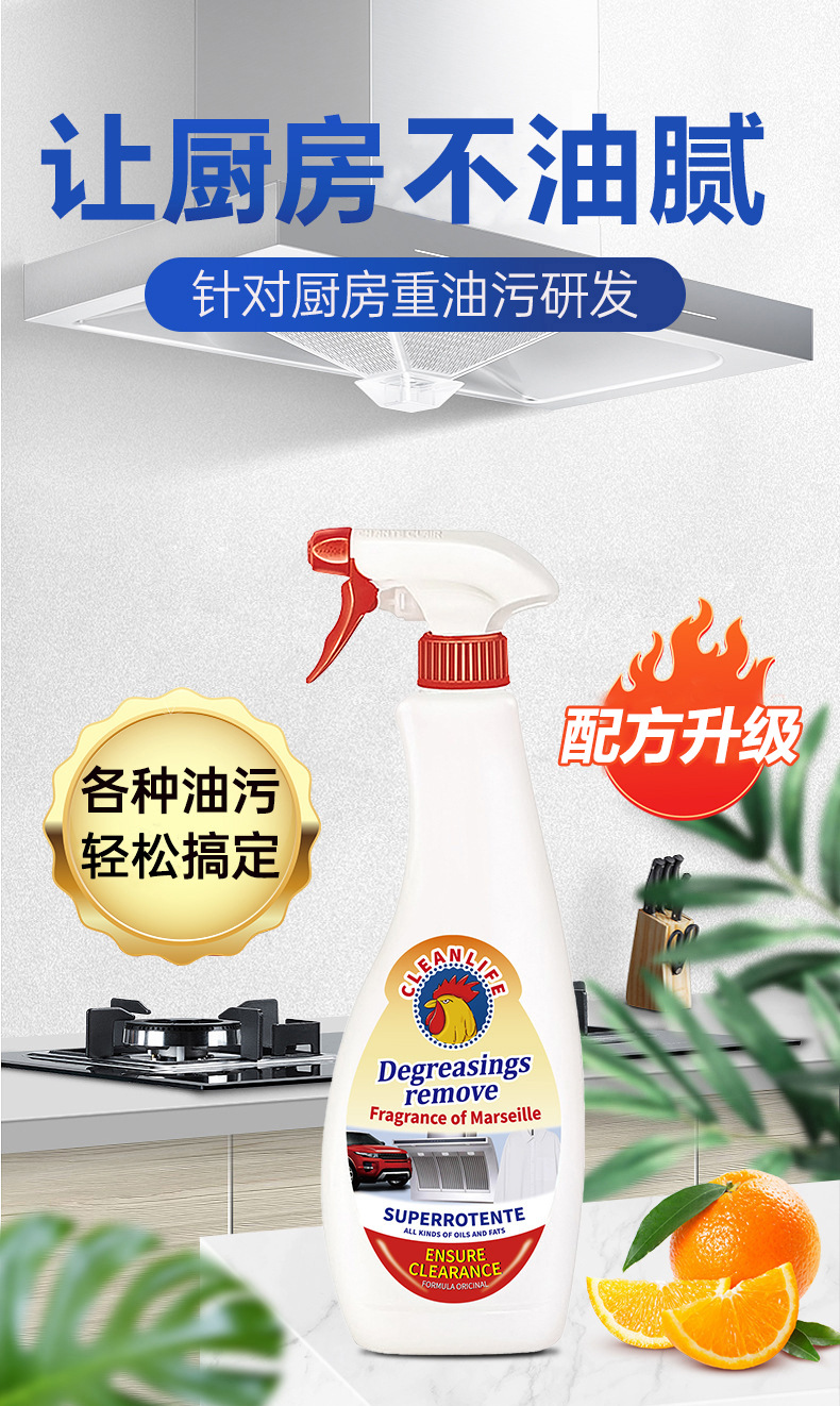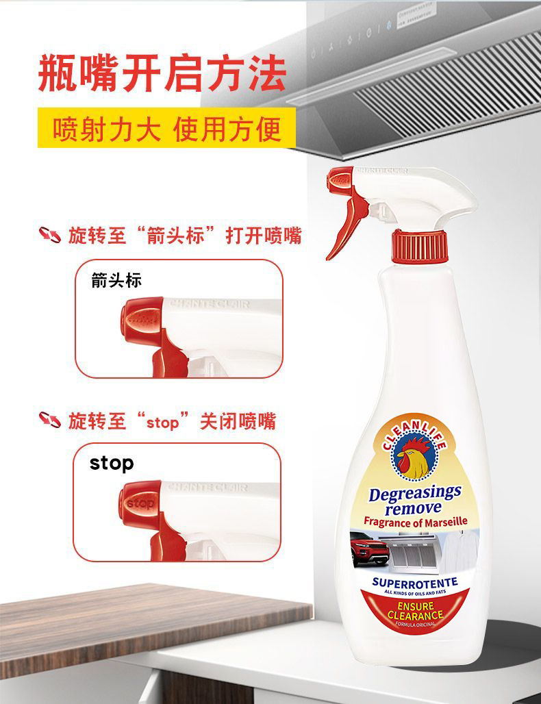 Спрей для удаления жира и налета Big Rooster для вытяжек, очиститель от накипи и сильных загрязнений, аромат лимона